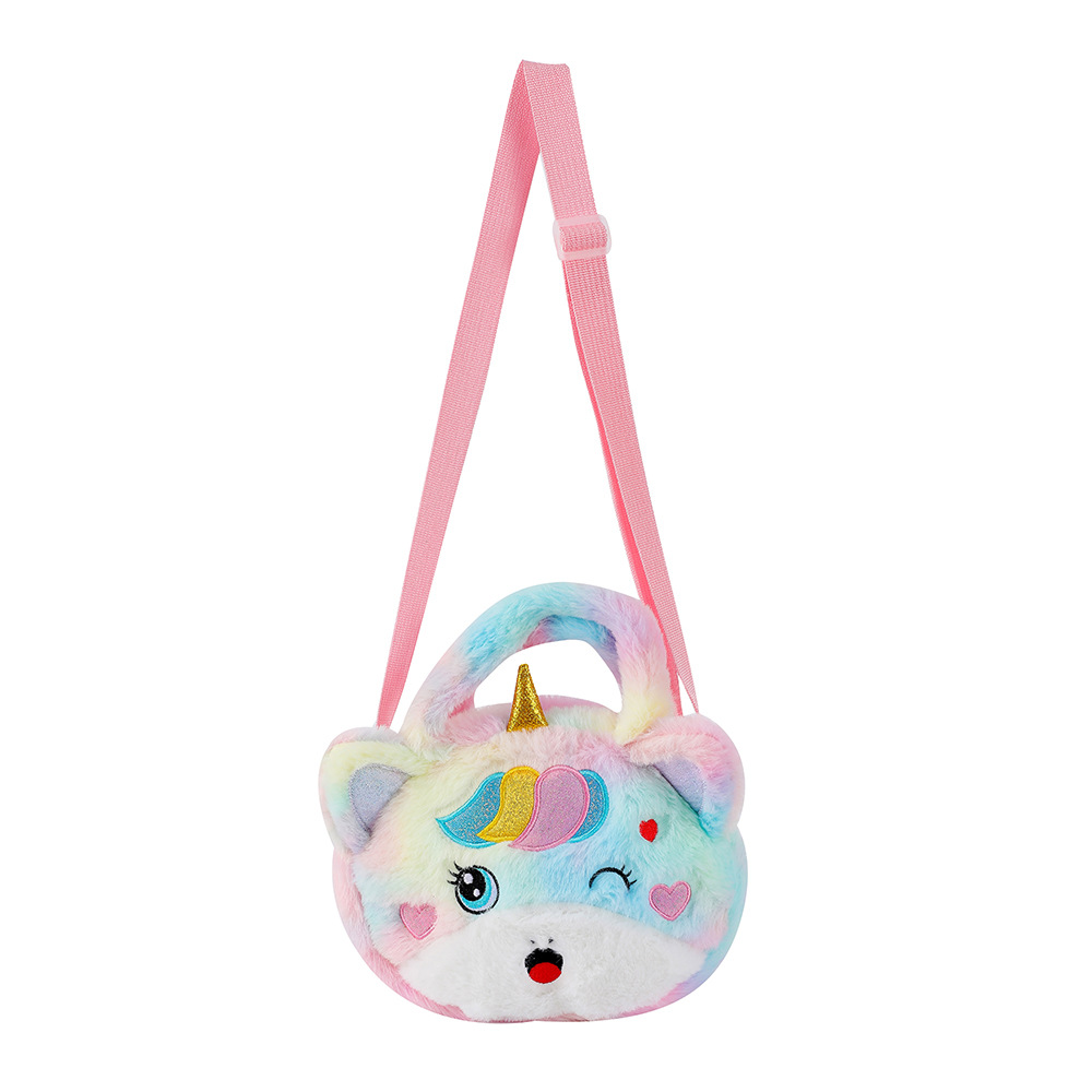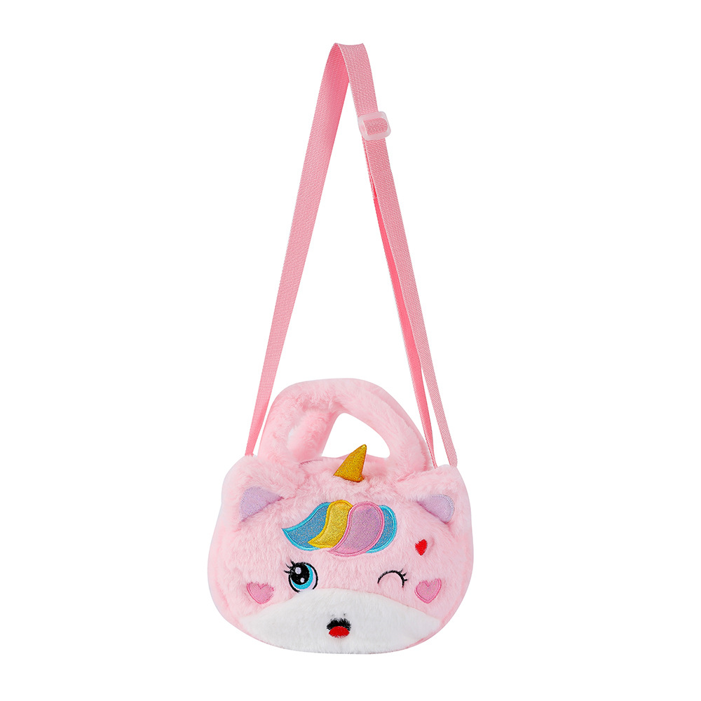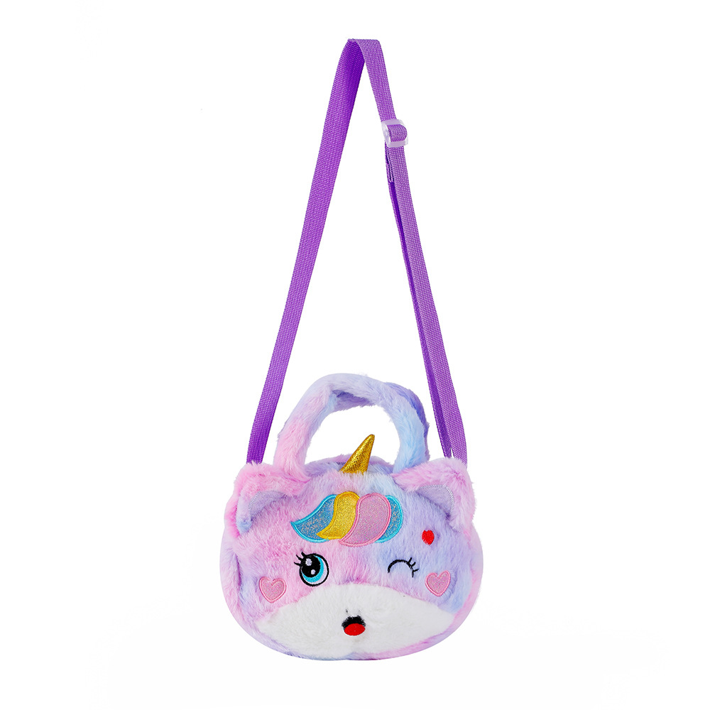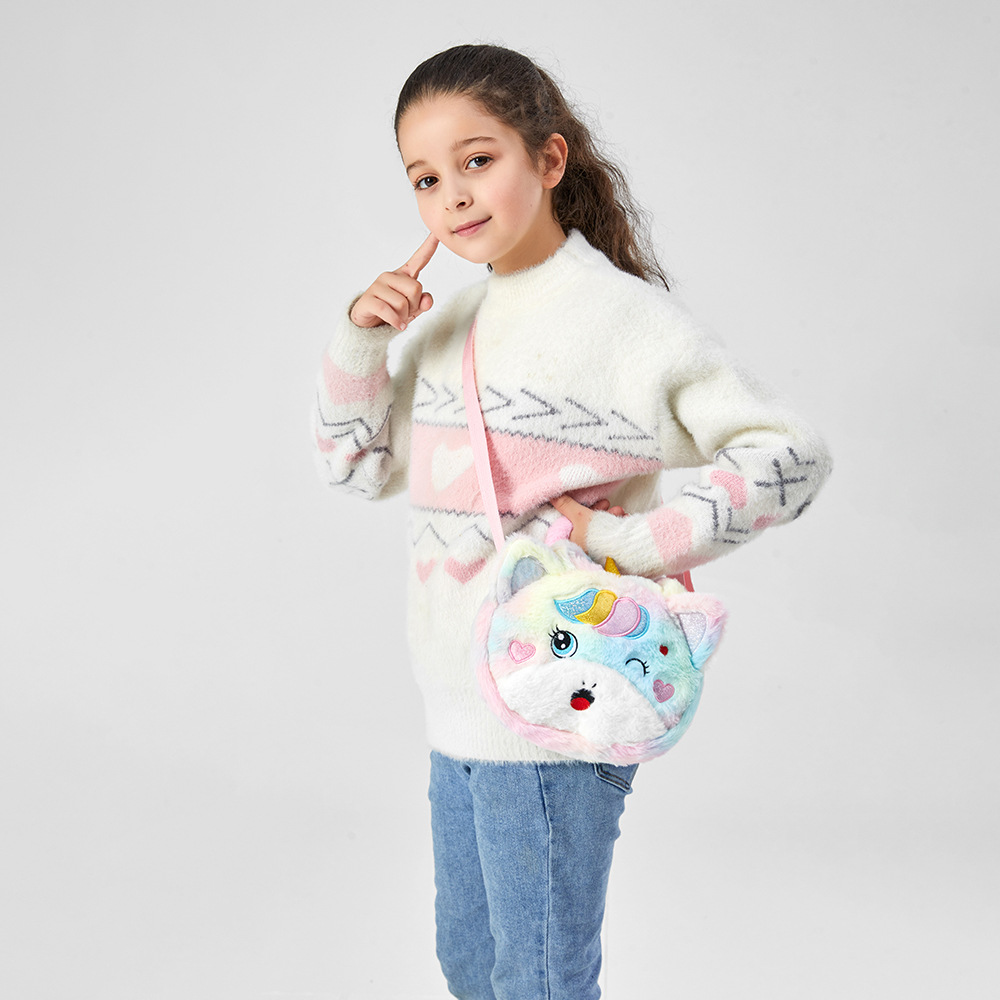 2022儿童卡通独角兽毛绒单肩斜挎包幼儿园女童可爱手提包零钱包