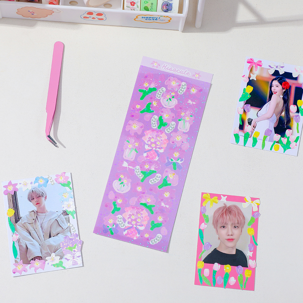 韩版卡通花朵咕卡贴纸少女追星小卡装饰贴画学生手账镭射DIY贴纸