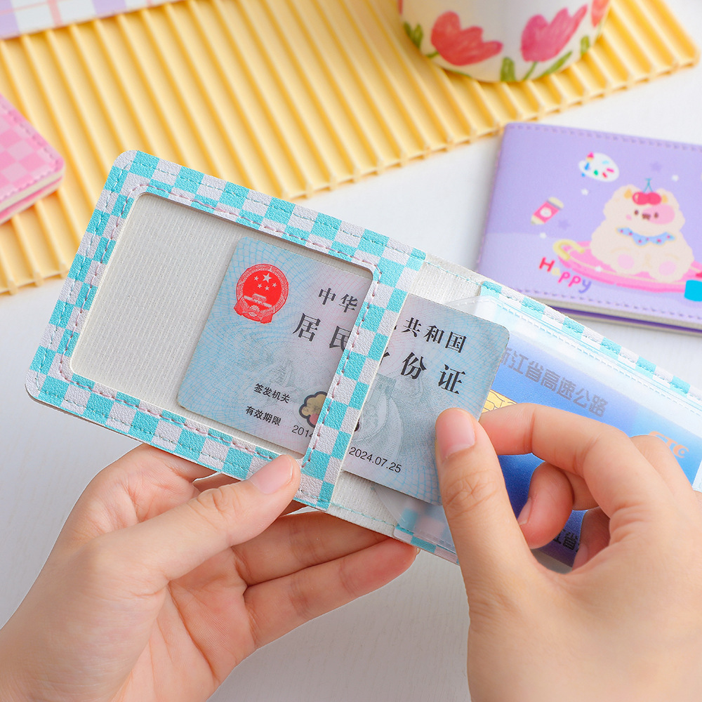 韩版棋盘格卡通小熊驾驶证保护套学生少女多卡位卡包行驶证保护套