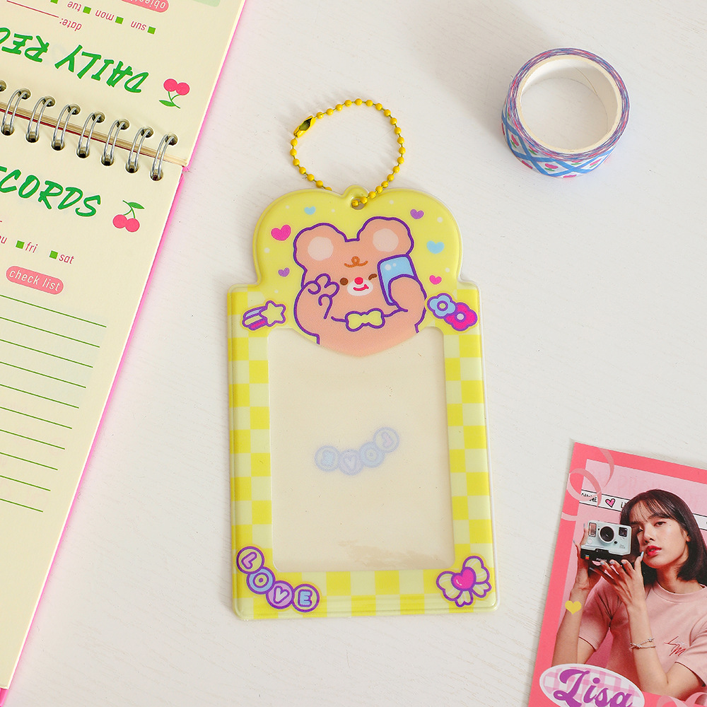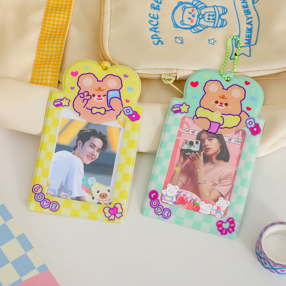 少女卡通小兔咕卡套棋盘格塑料卡包三寸小卡卡套追星照片钥匙挂件