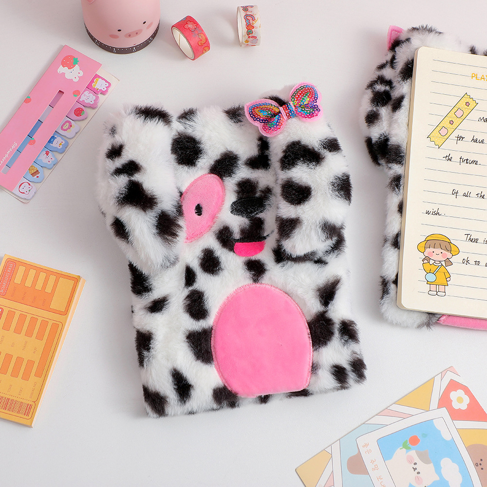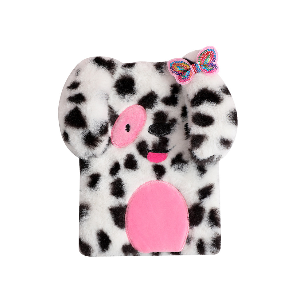 冬季儿童毛绒笔记本可爱斑点狗狗少女日记本学生书写本子手账本女