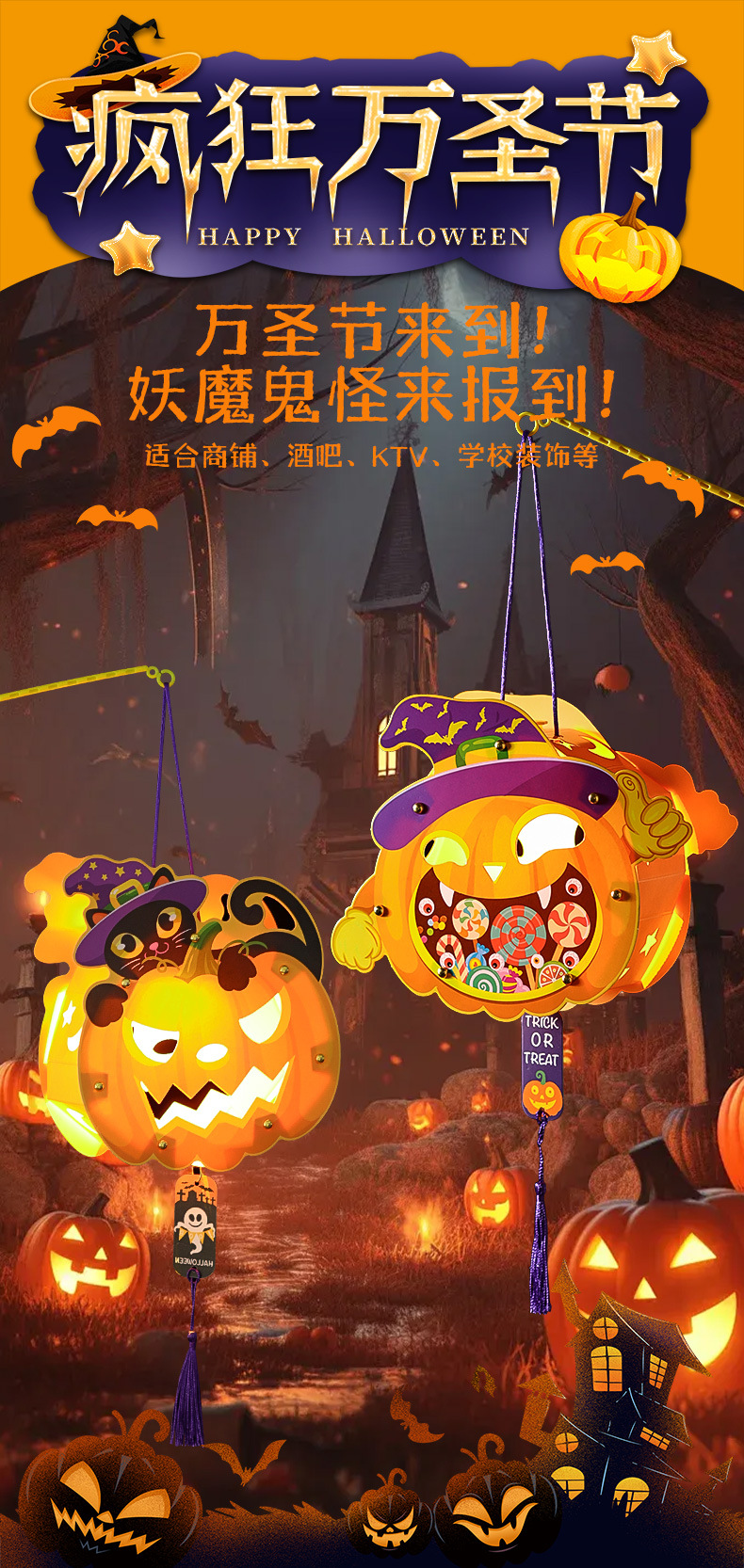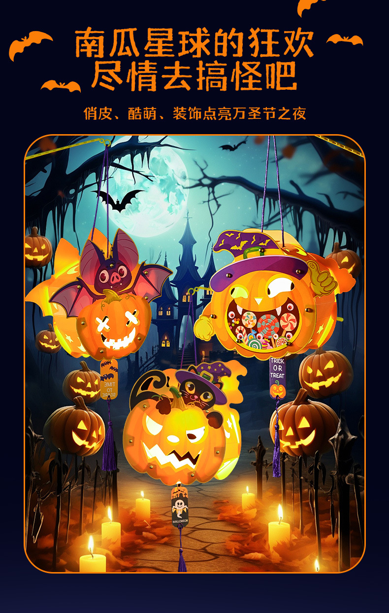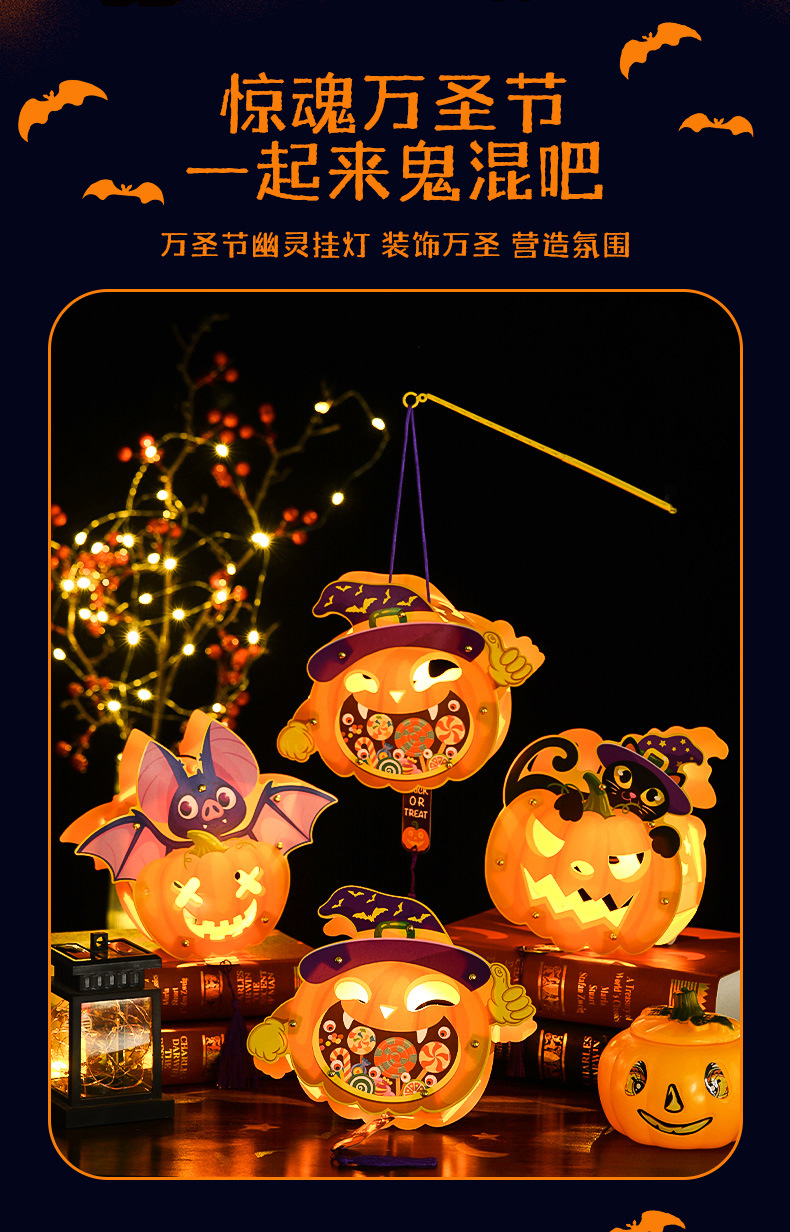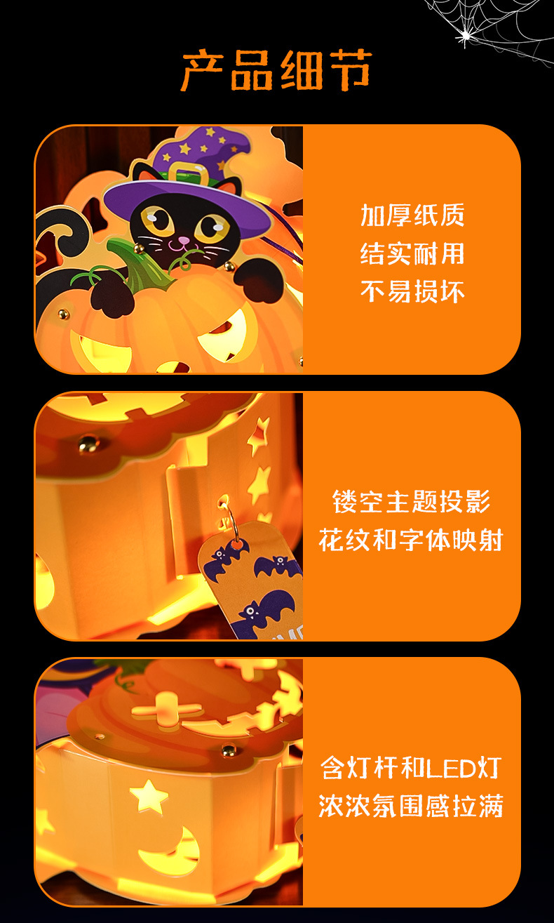 万圣节南瓜灯手工diy材料 活动主题儿童手提发光灯笼装饰派对用品