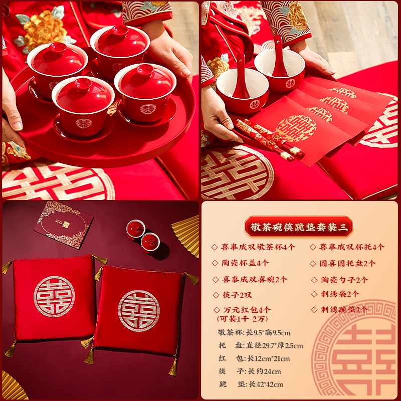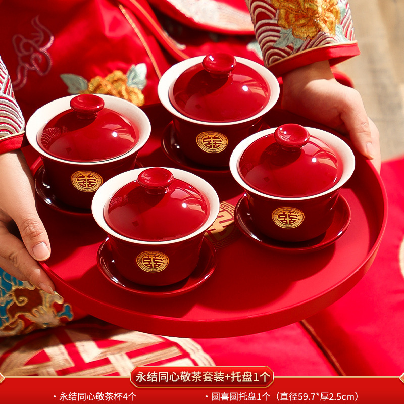 敬茶杯结婚套装婚礼改口一对喜字红色喜茶杯子囍茶具婚庆用品大全