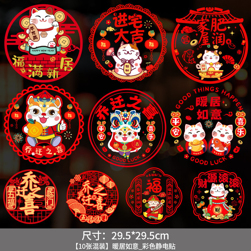 乔迁之喜静电贴窗花装饰玻璃门贴剪纸新居布置搬新家入宅仪式用品
