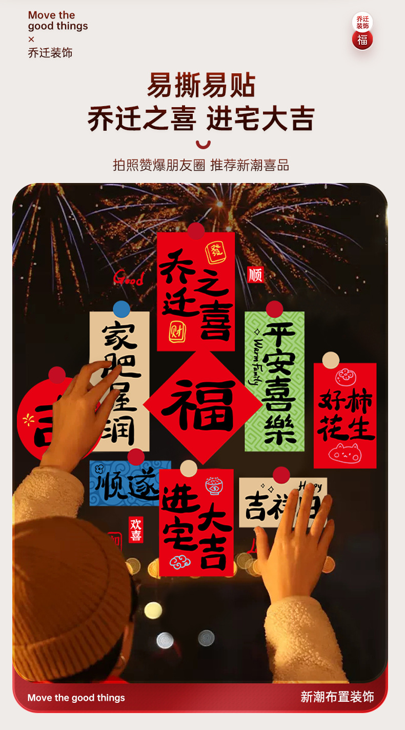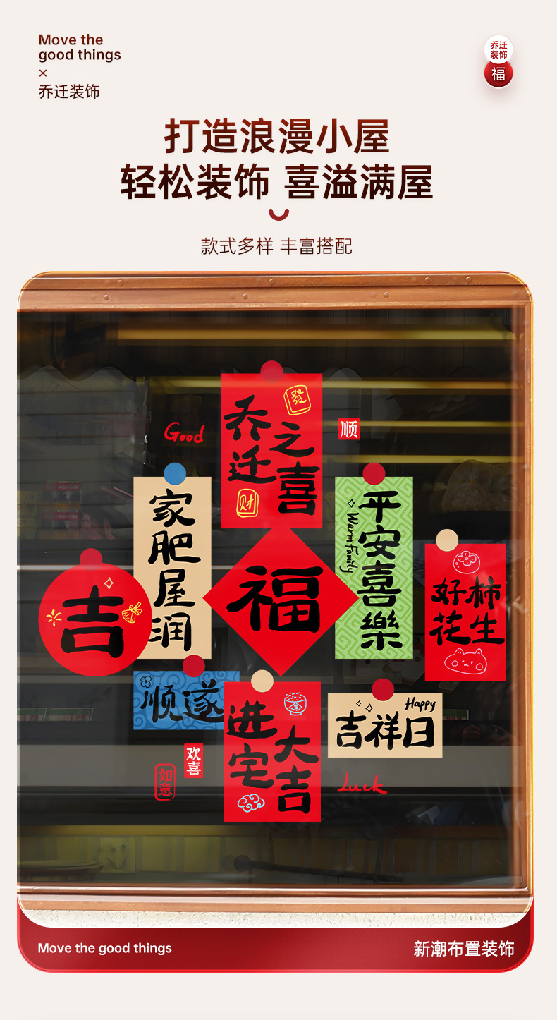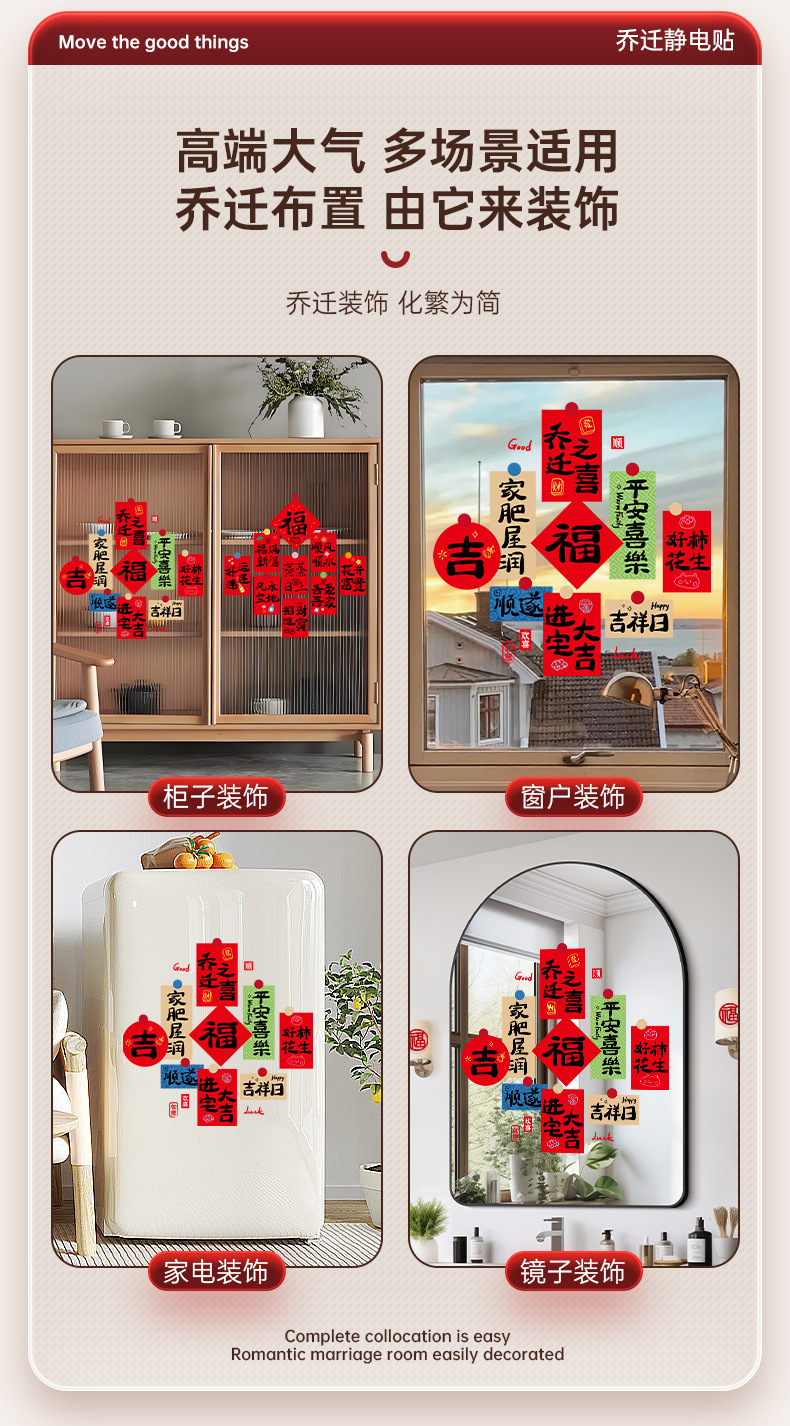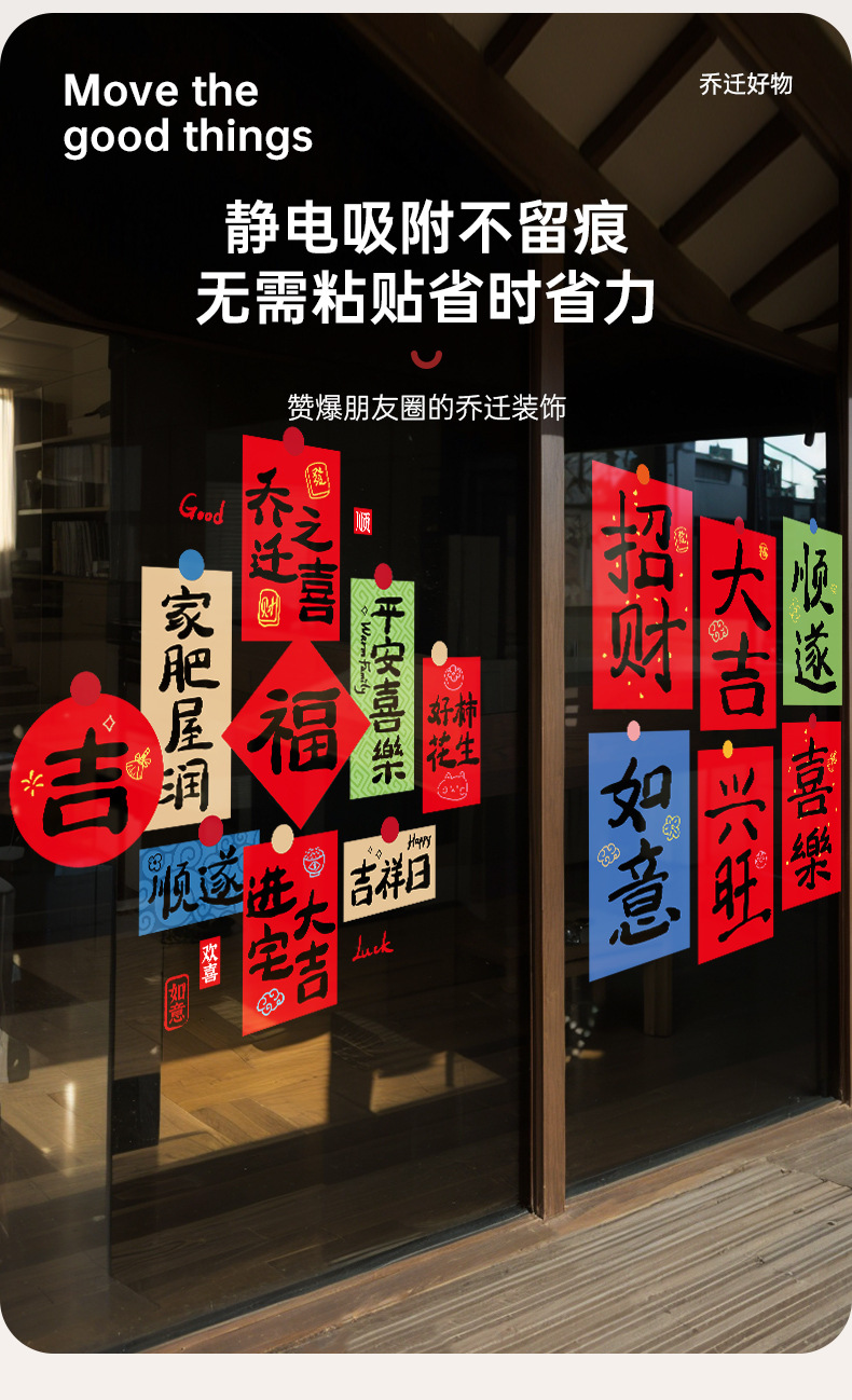 乔迁之喜装饰窗花静电贴新房入宅大门窗户玻璃贴福字剪纸新居布置