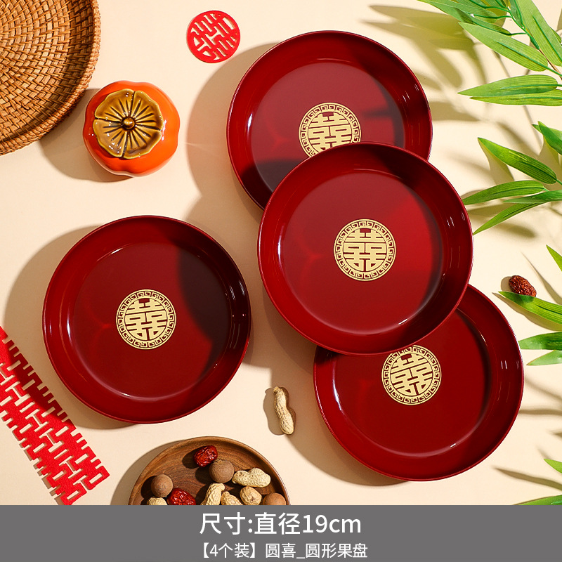结婚果盘婚礼客厅装饰摆件订婚红色喜庆喜糖盘干果盘婚庆用品大全