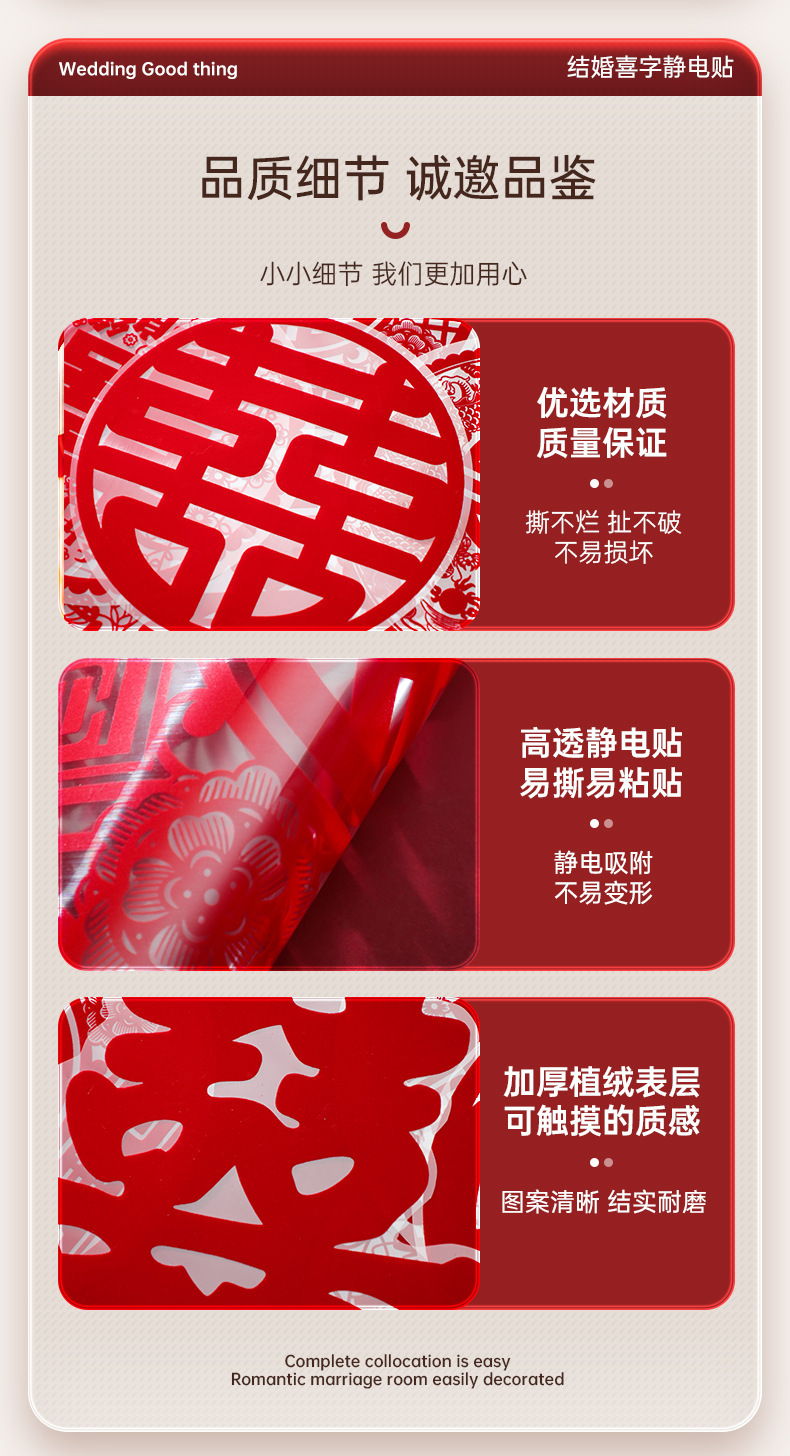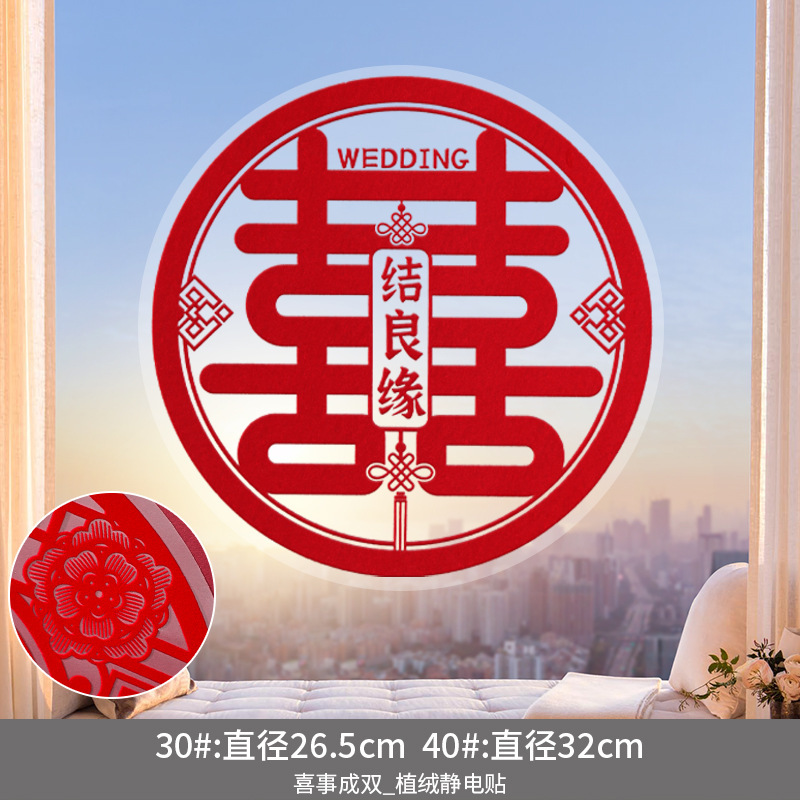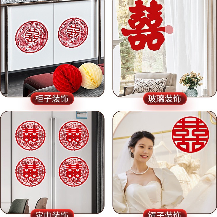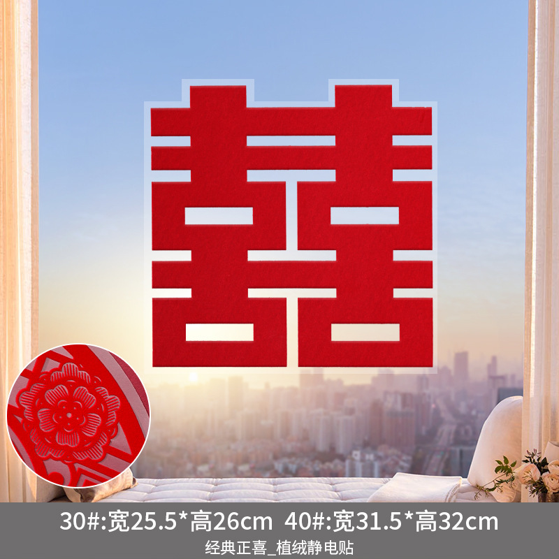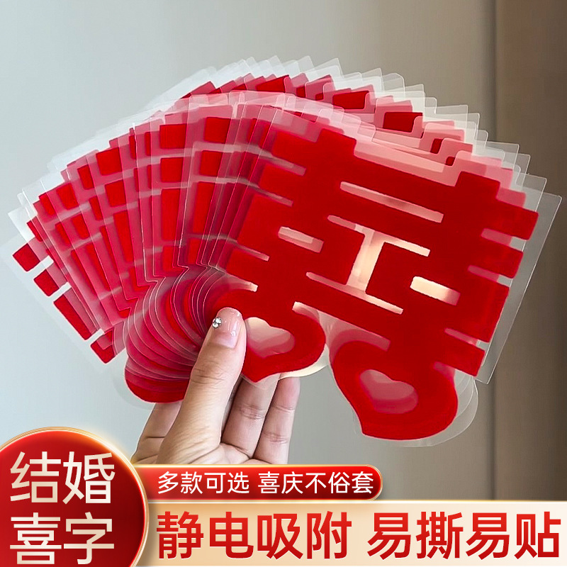 婚房装饰布置植绒静电喜字贴纸水粘玻璃门窗家具楼梯结婚用品大全