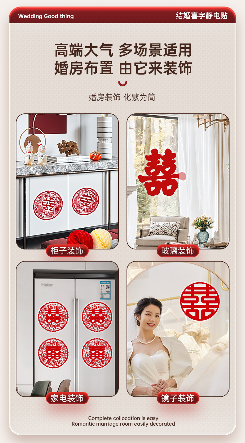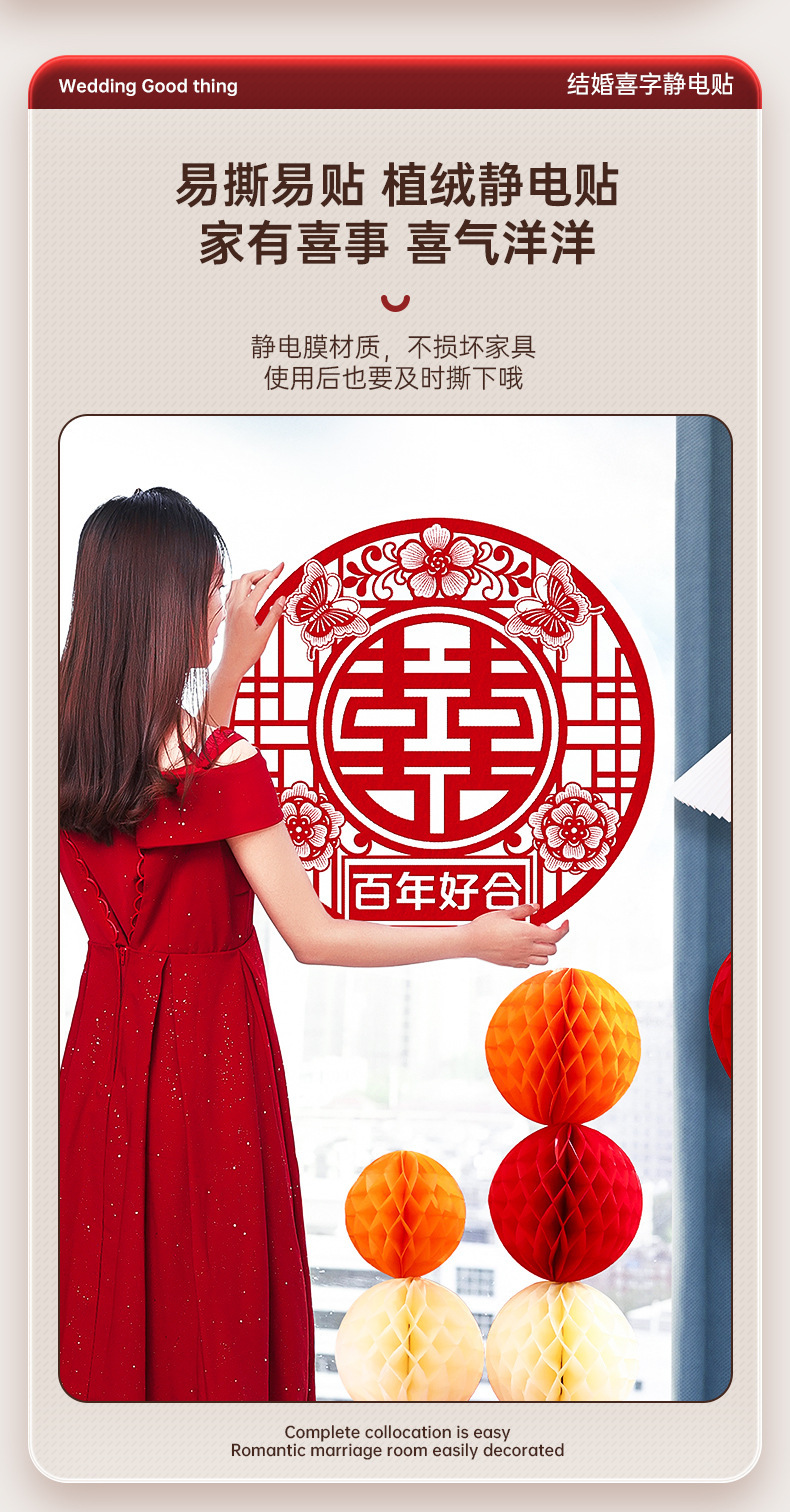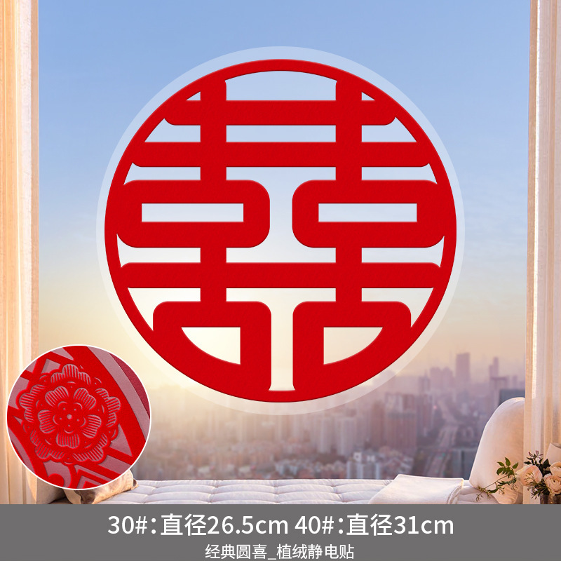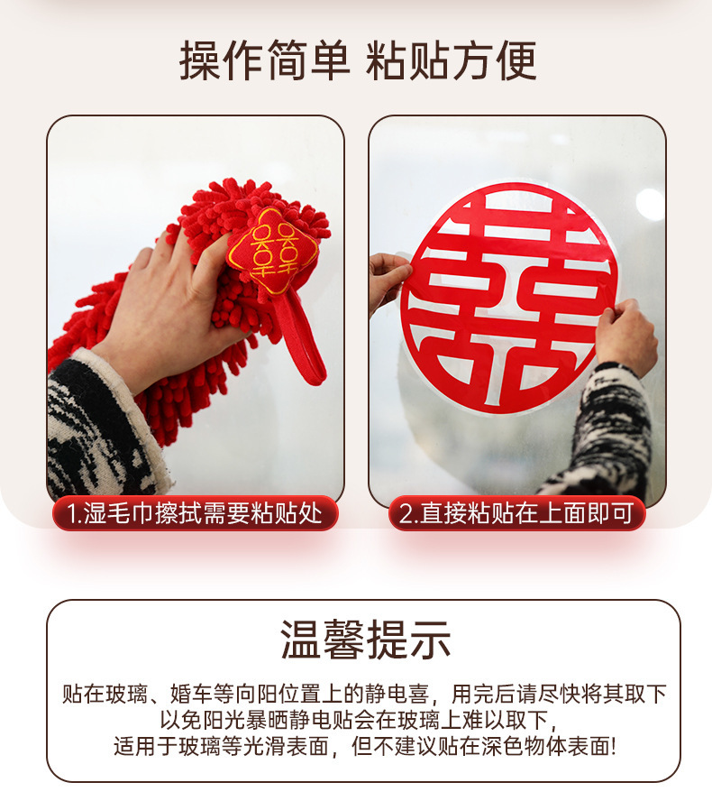婚房装饰布置植绒静电喜字贴纸水粘玻璃门窗家具楼梯结婚用品大全