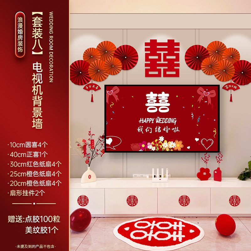 结婚电视机背景墙订婚礼男女方新房客厅卧室婚房布置套装用品大全