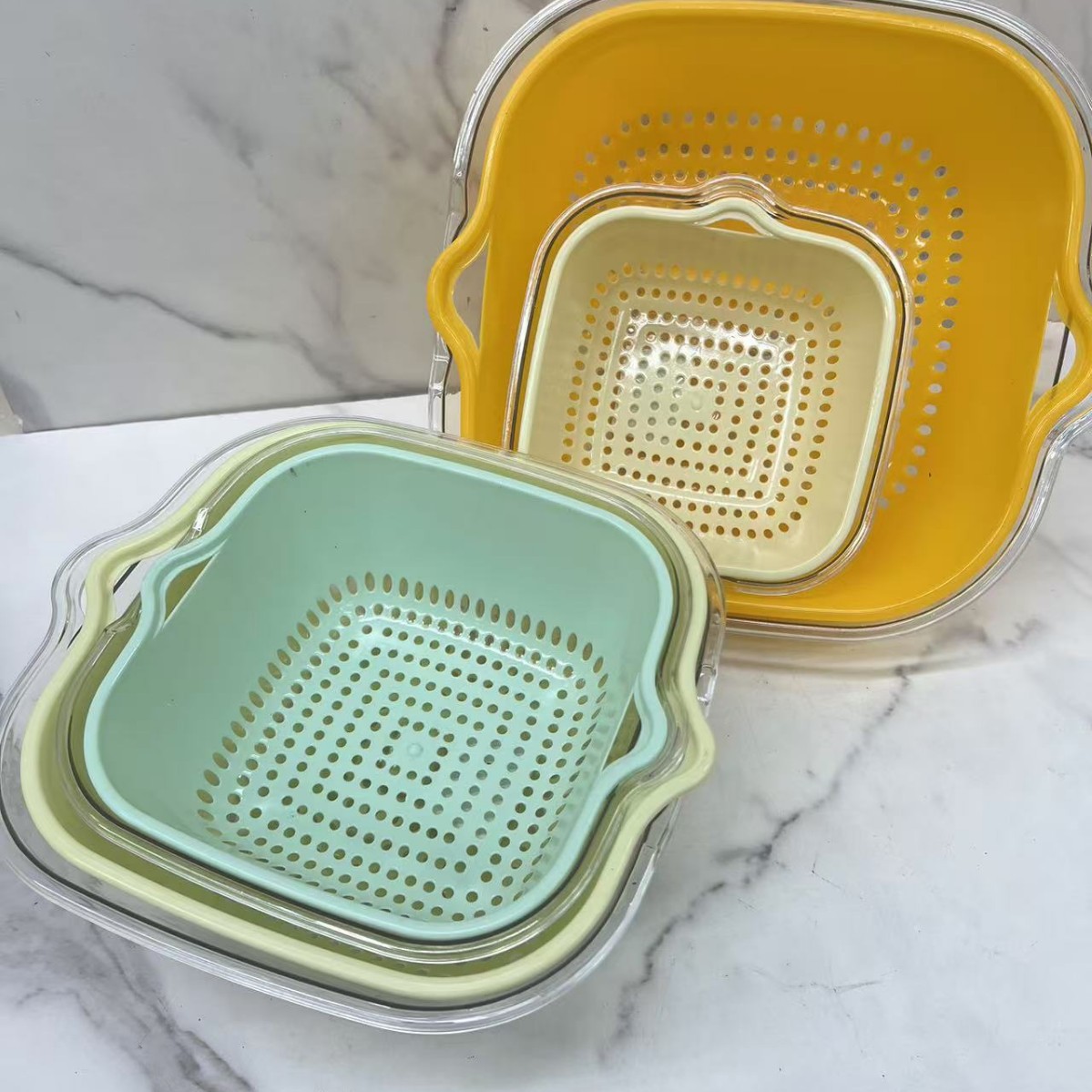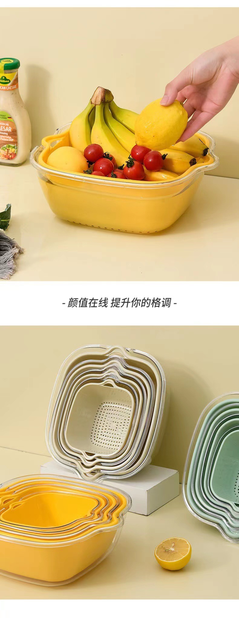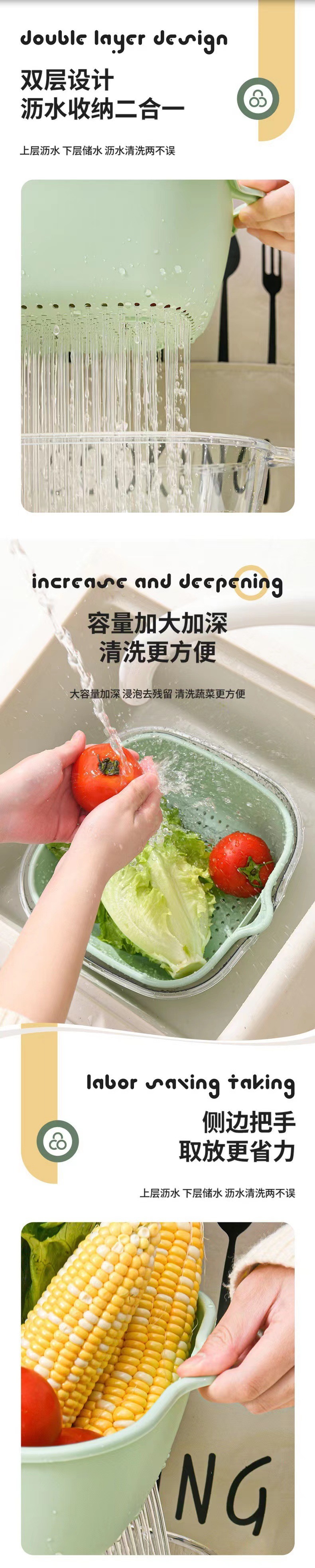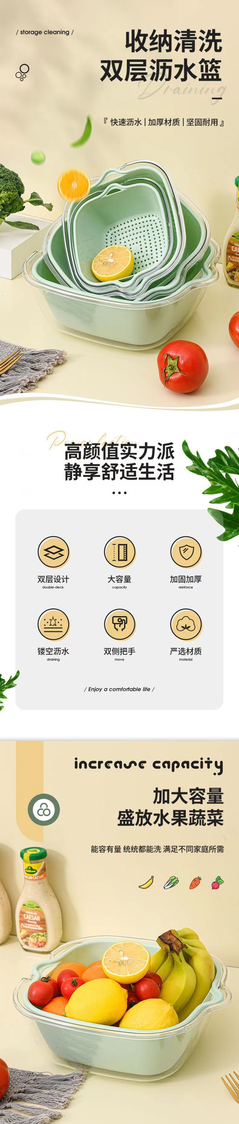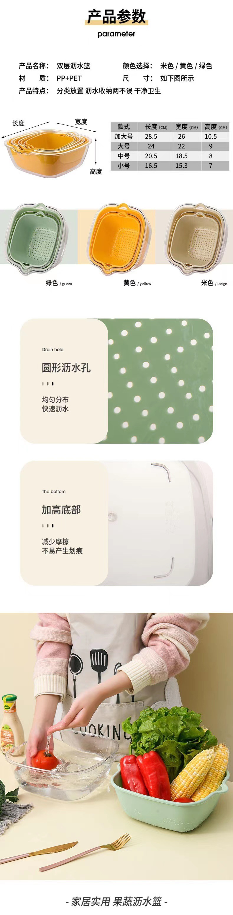 家用客厅水果盘沥水篮 双层沥水篮塑料厨房洗菜盆淘菜筐漏水滤水
