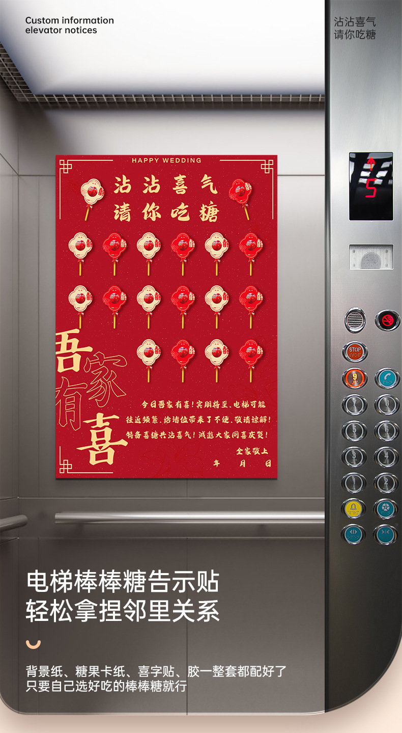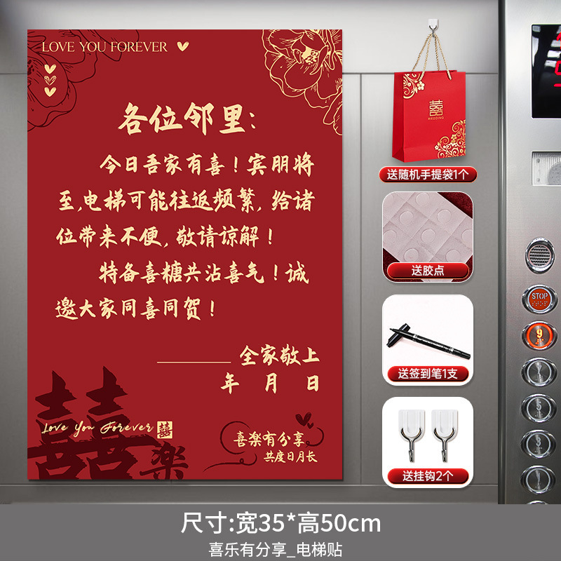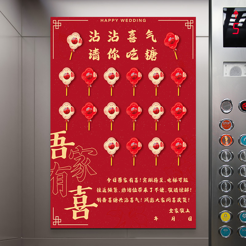 结婚电梯告示喜糖喜字贴纸创意婚礼布置装饰囍字专用婚庆用品大全