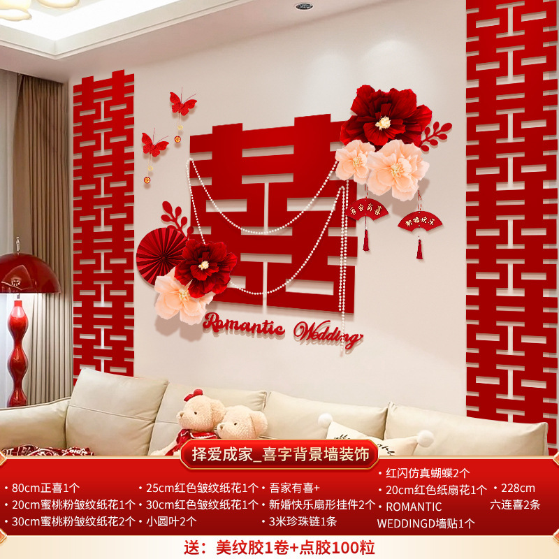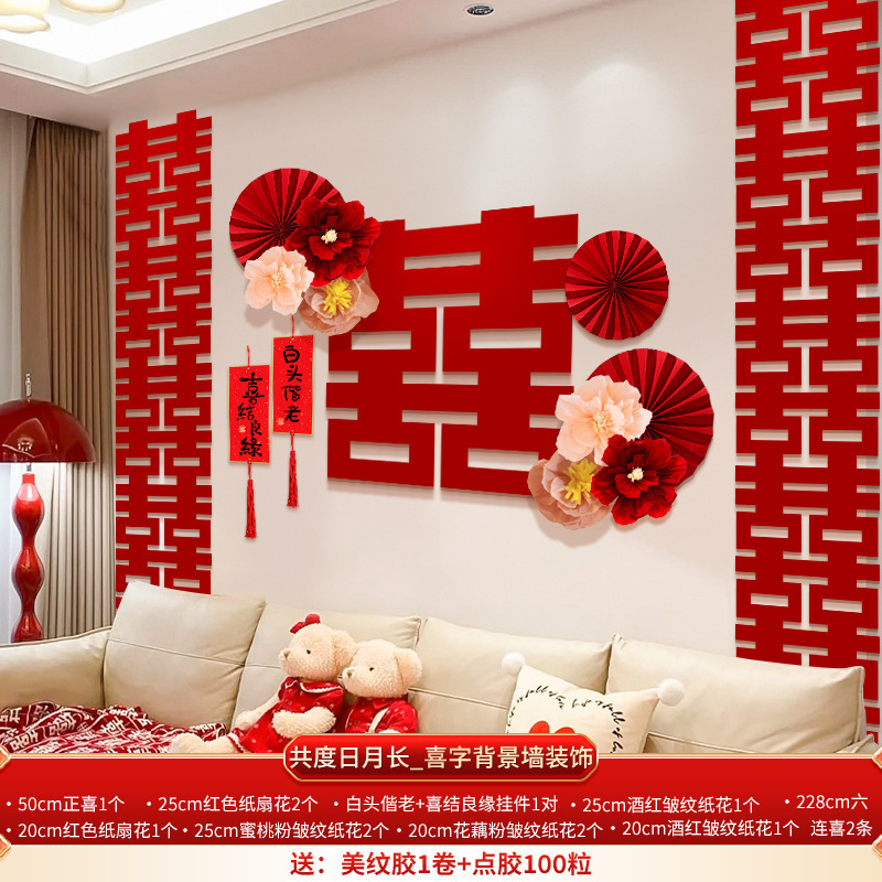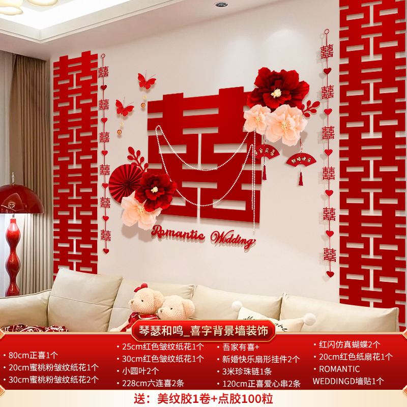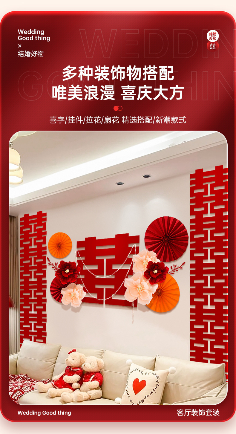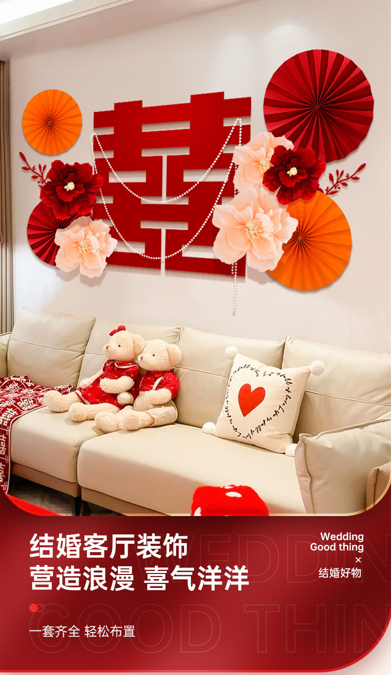 婚房布置沙发背景墙结婚装饰男女方客厅卧室新房房间婚礼拉花套装