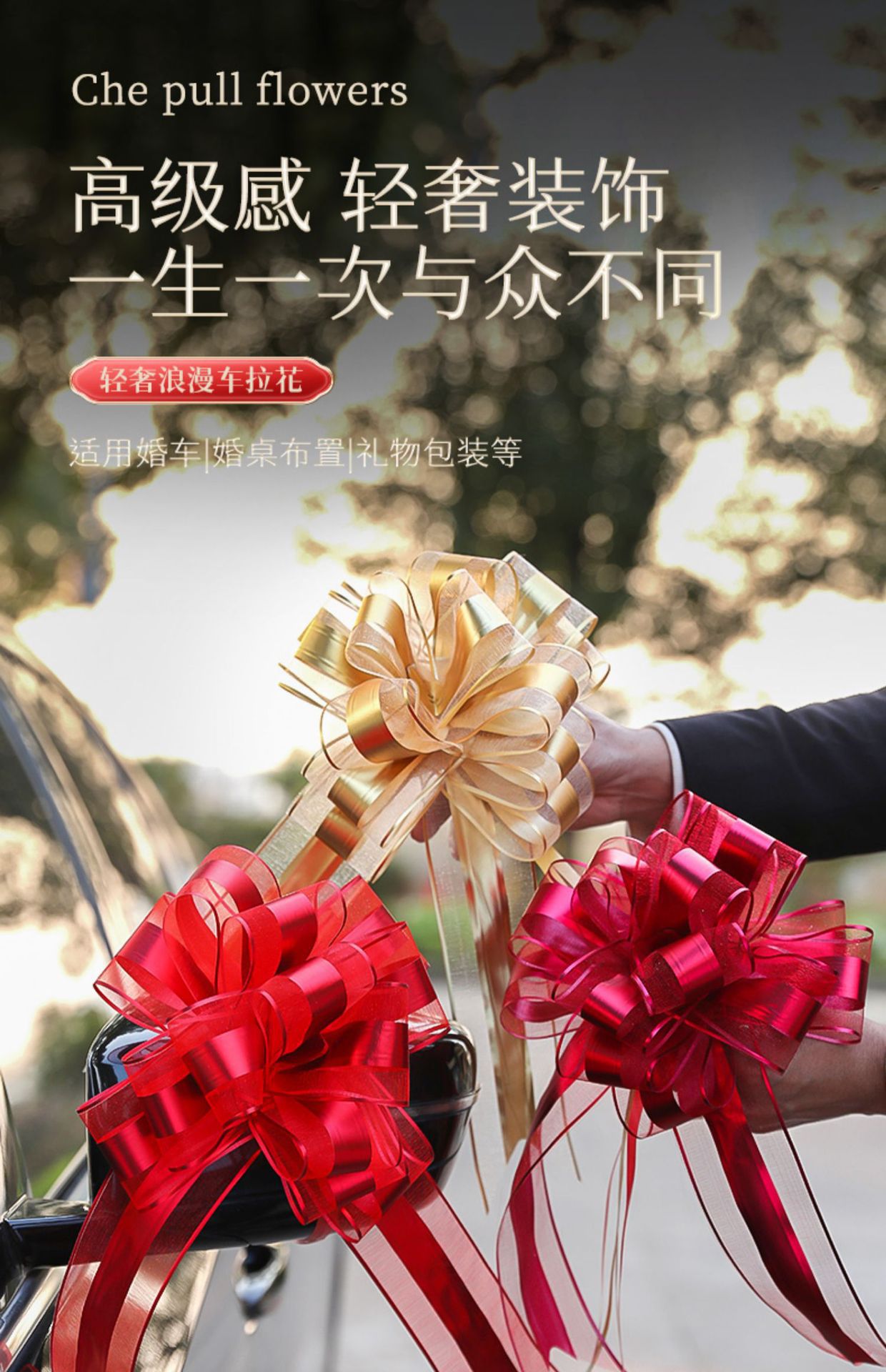 结婚婚车车队拉花装饰用品婚房布置蝴蝶结婚礼副车汽车丝带手拉花