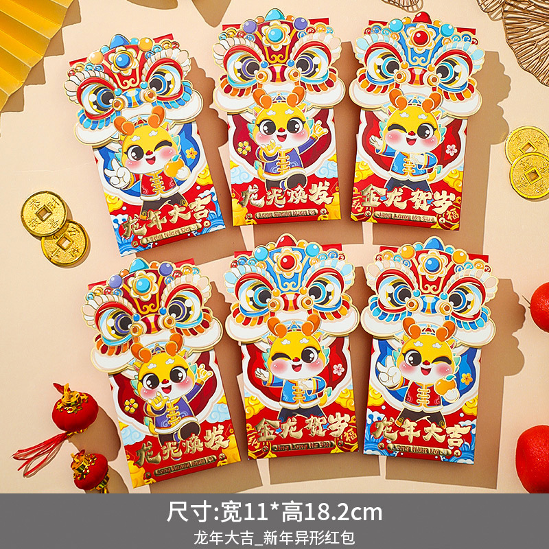 新年醒狮红包袋2025新款过年创意卡通春节儿童蛇年压岁钱包利是封