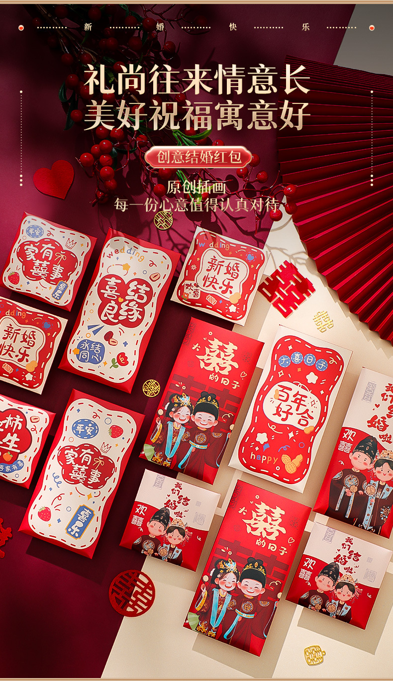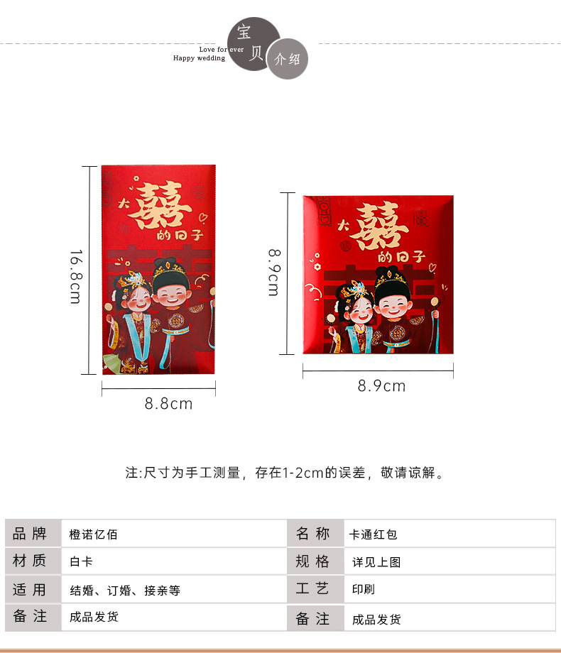 结婚接亲堵门小红包婚礼随份子红包袋婚庆用品中式创意卡通利是封