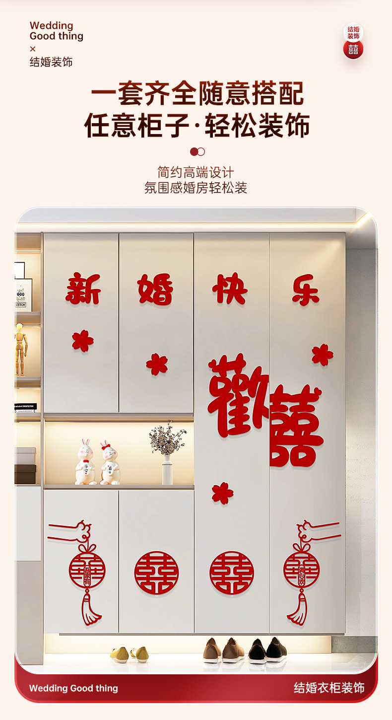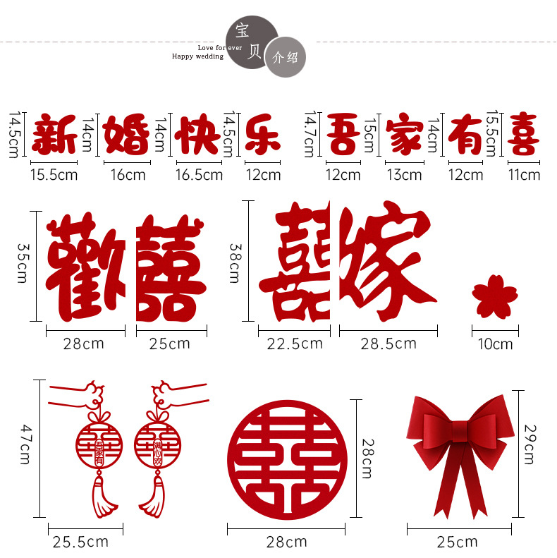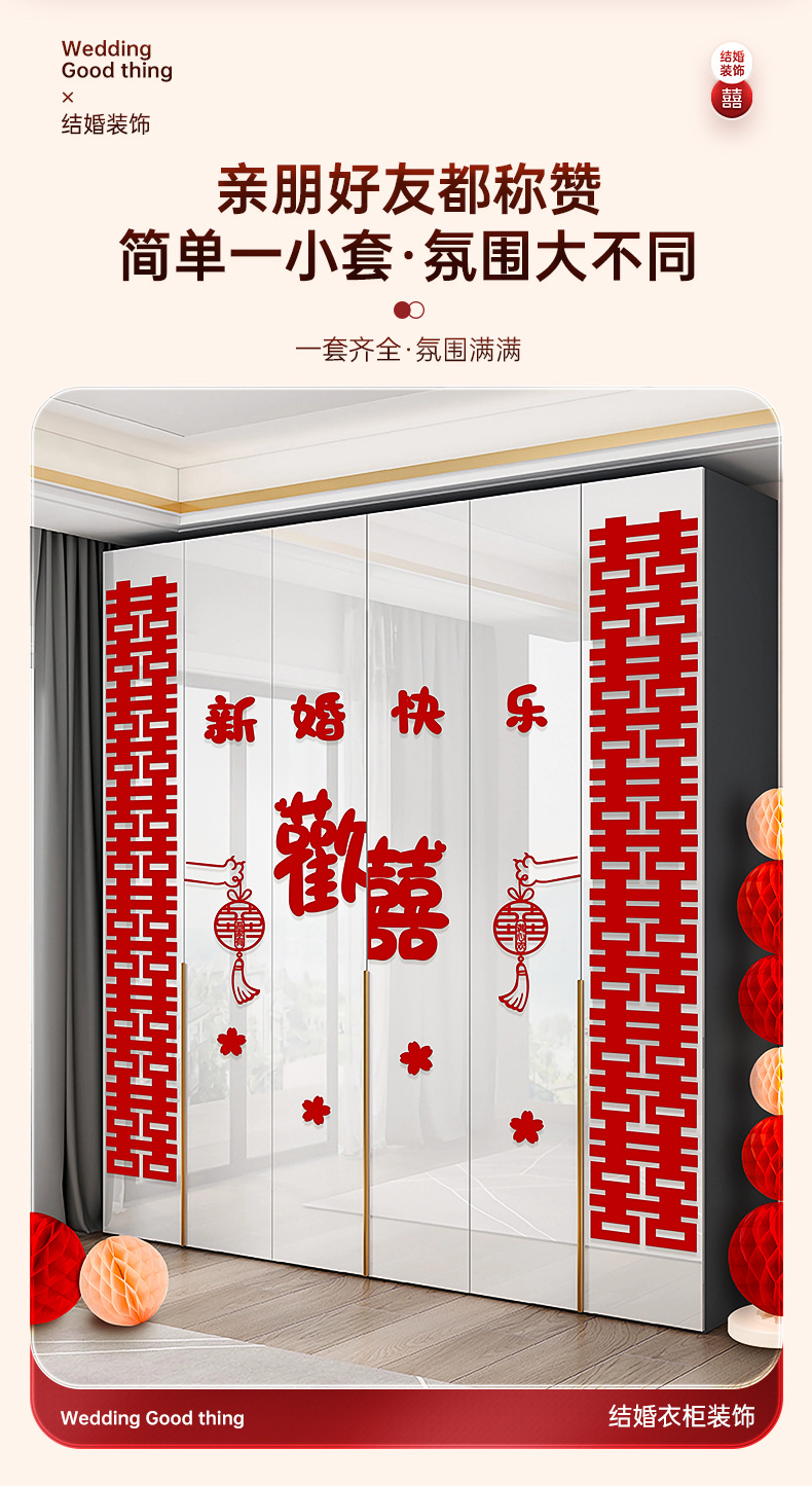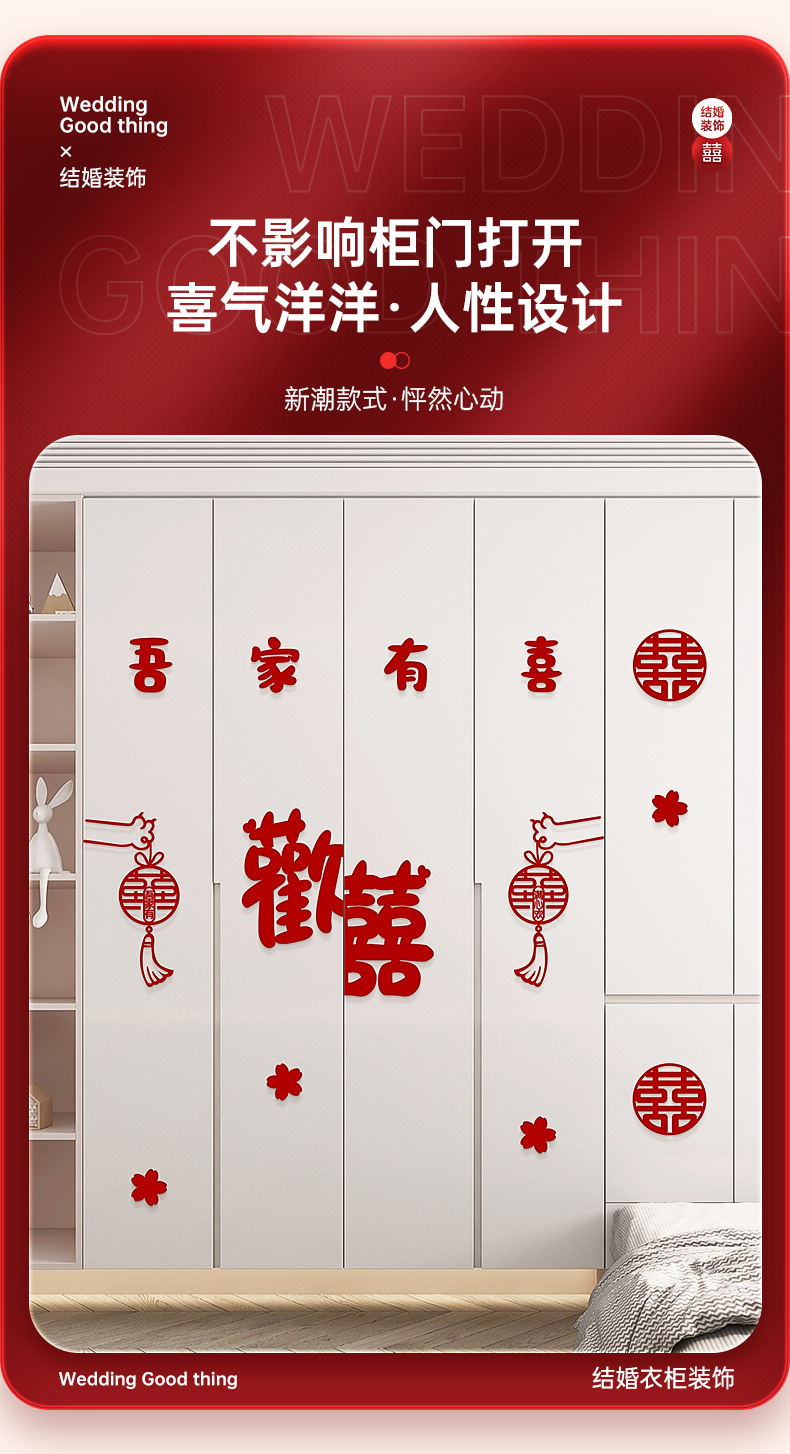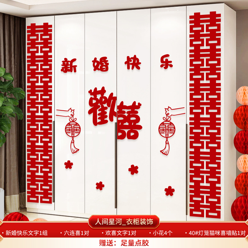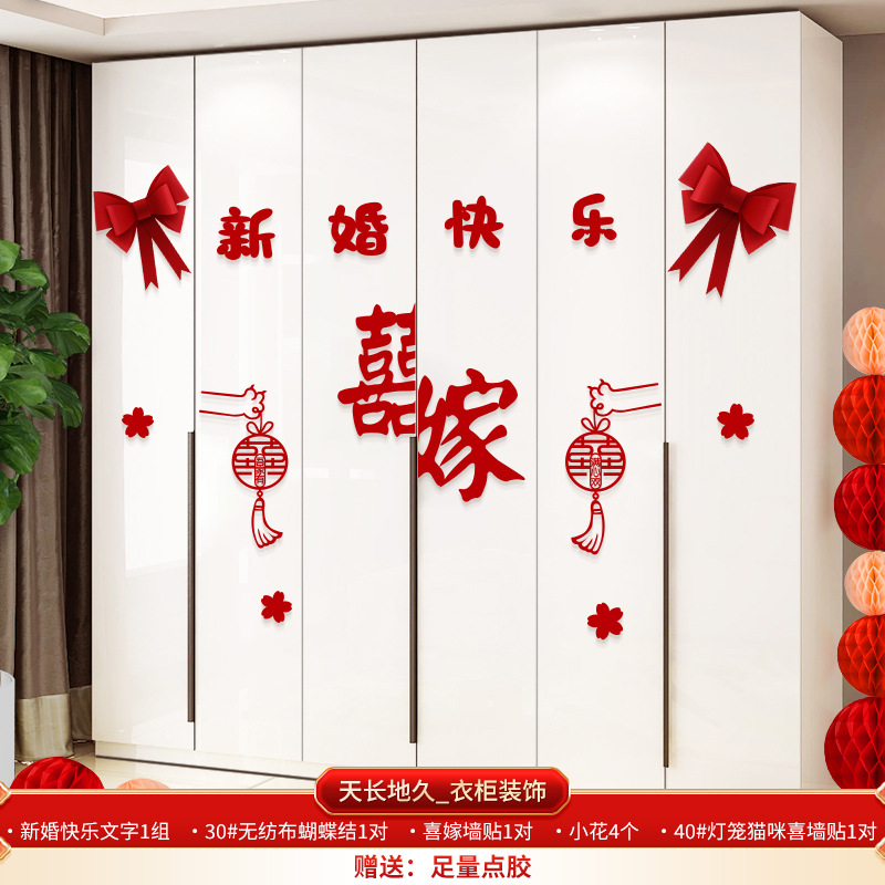 婚房布置套装男方新房客厅卧室衣柜装饰婚礼喜字贴纸结婚用品大全