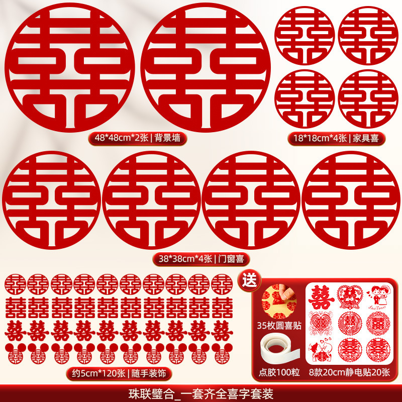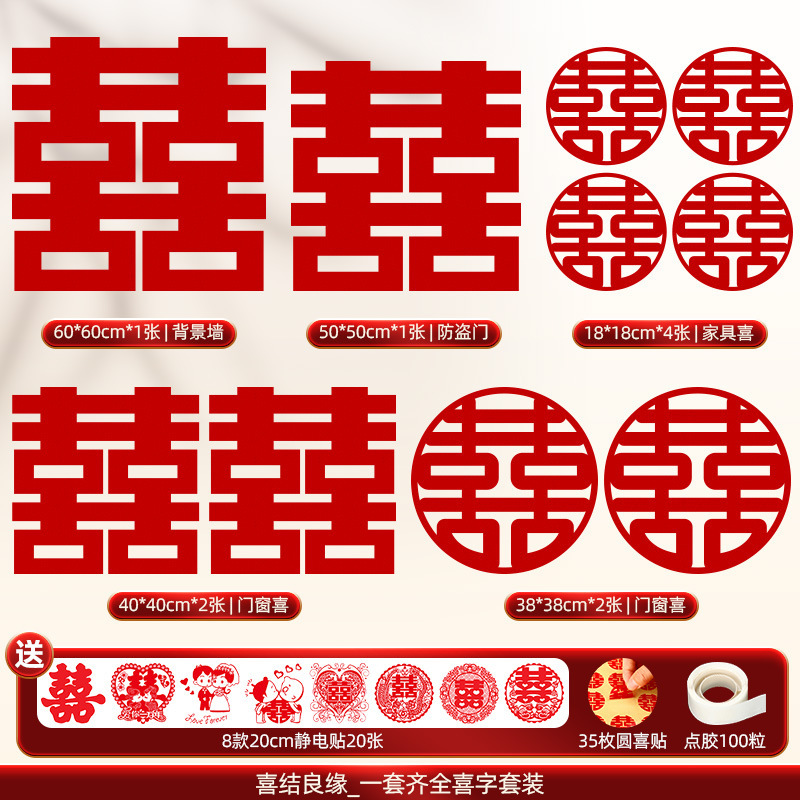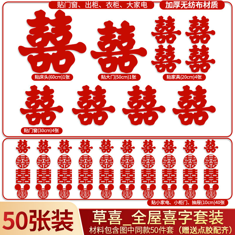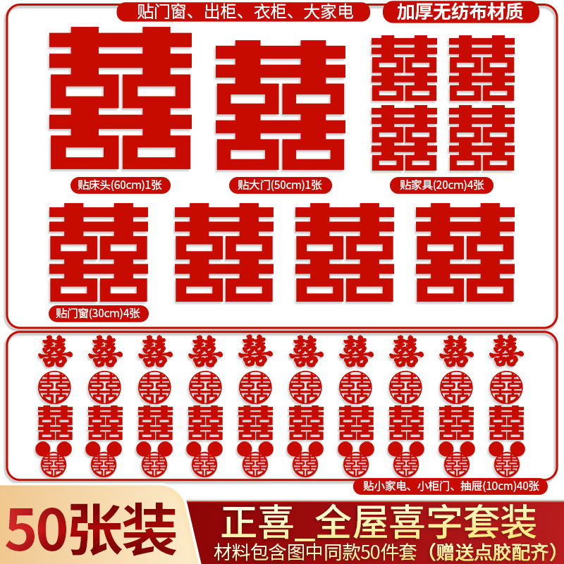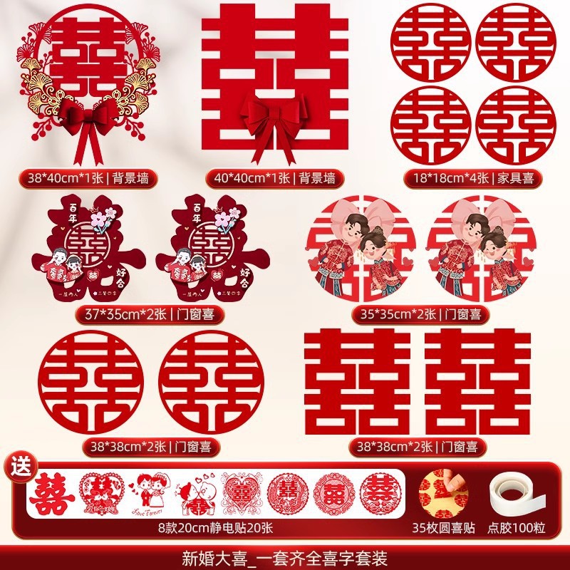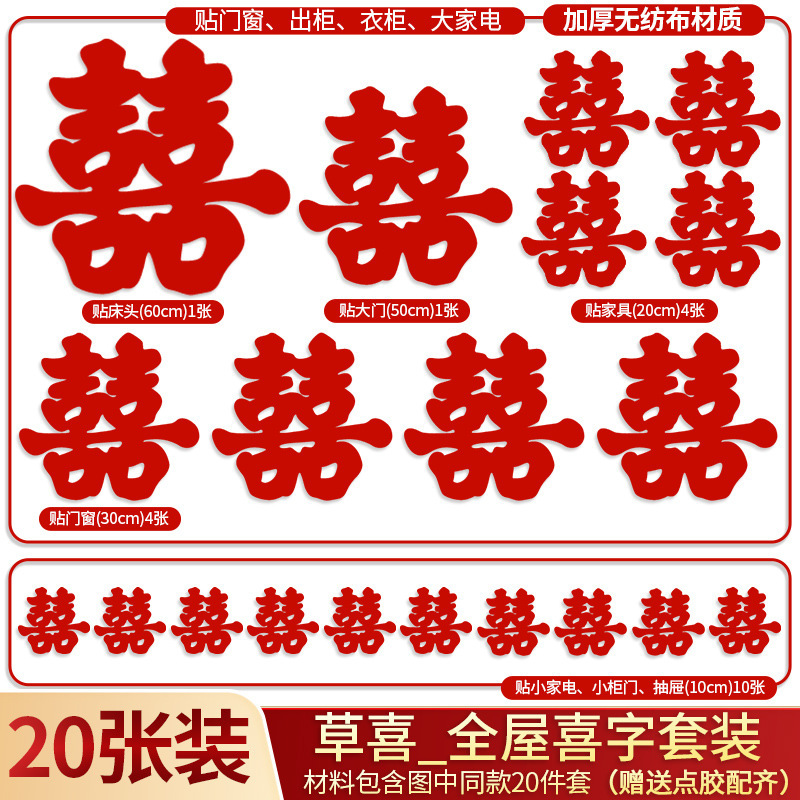 结婚布置大小喜字贴房门套装专用卧室入户门窗户楼梯贴纸婚房装饰