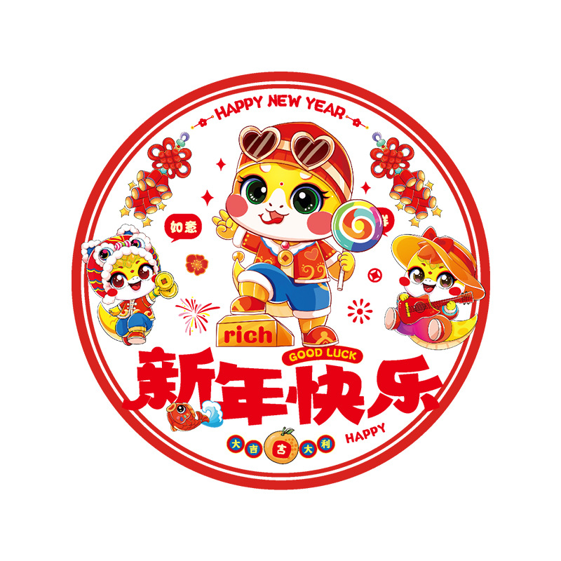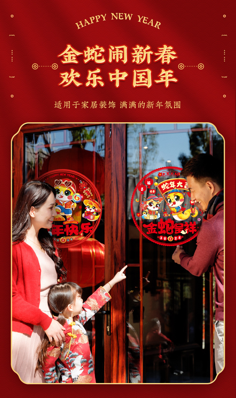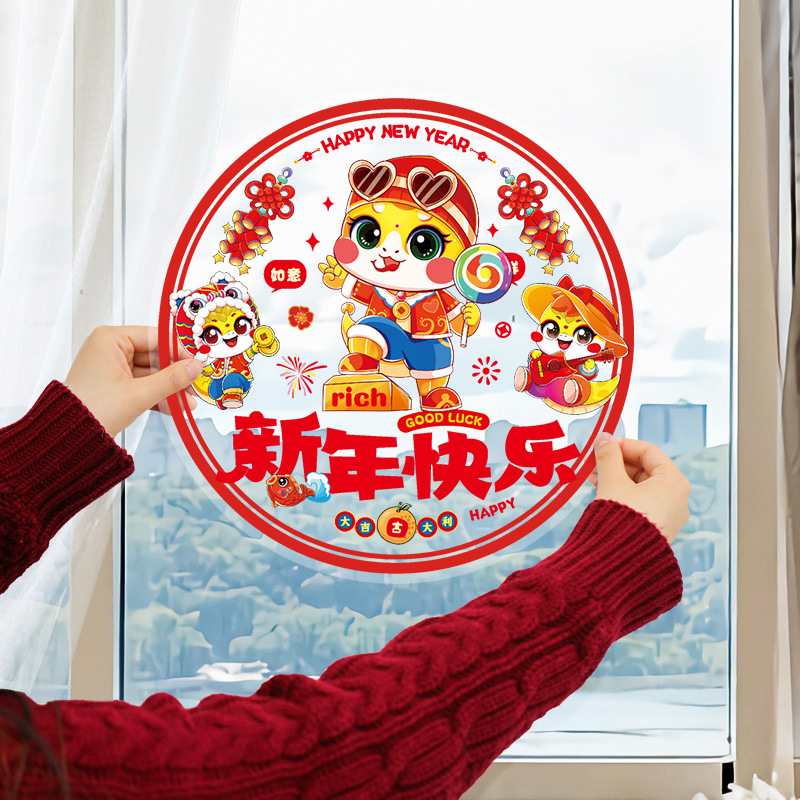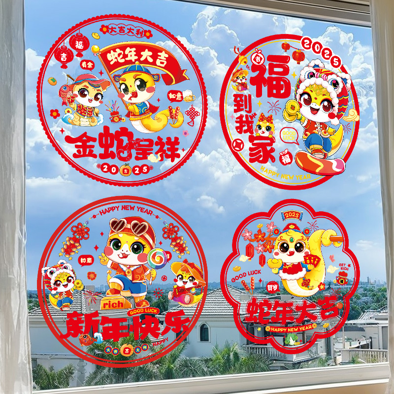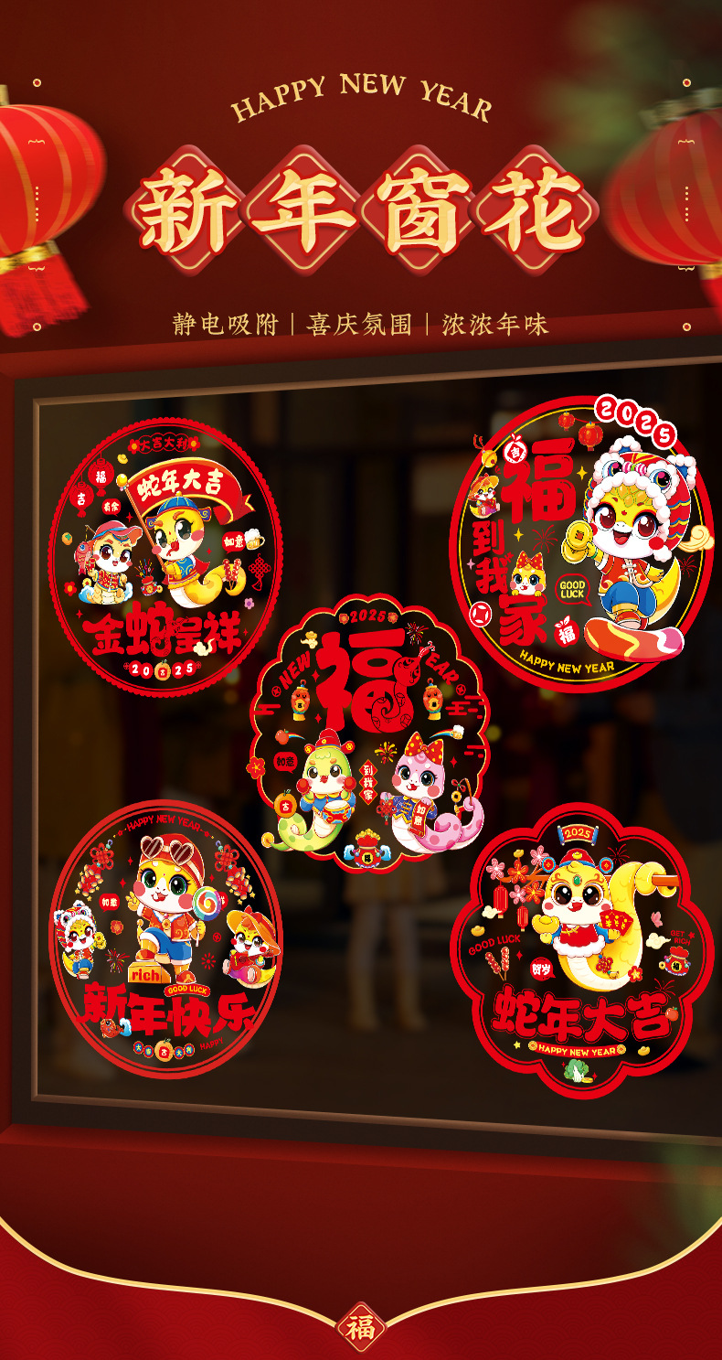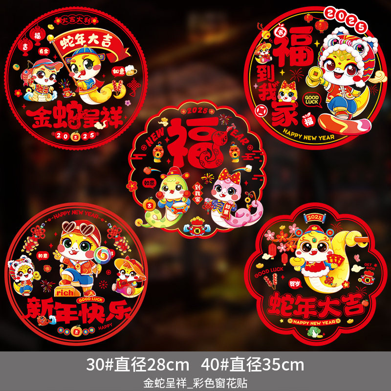 2025蛇年彩色窗花静电贴纸春节新年玻璃窗户福字门贴过年布置装饰