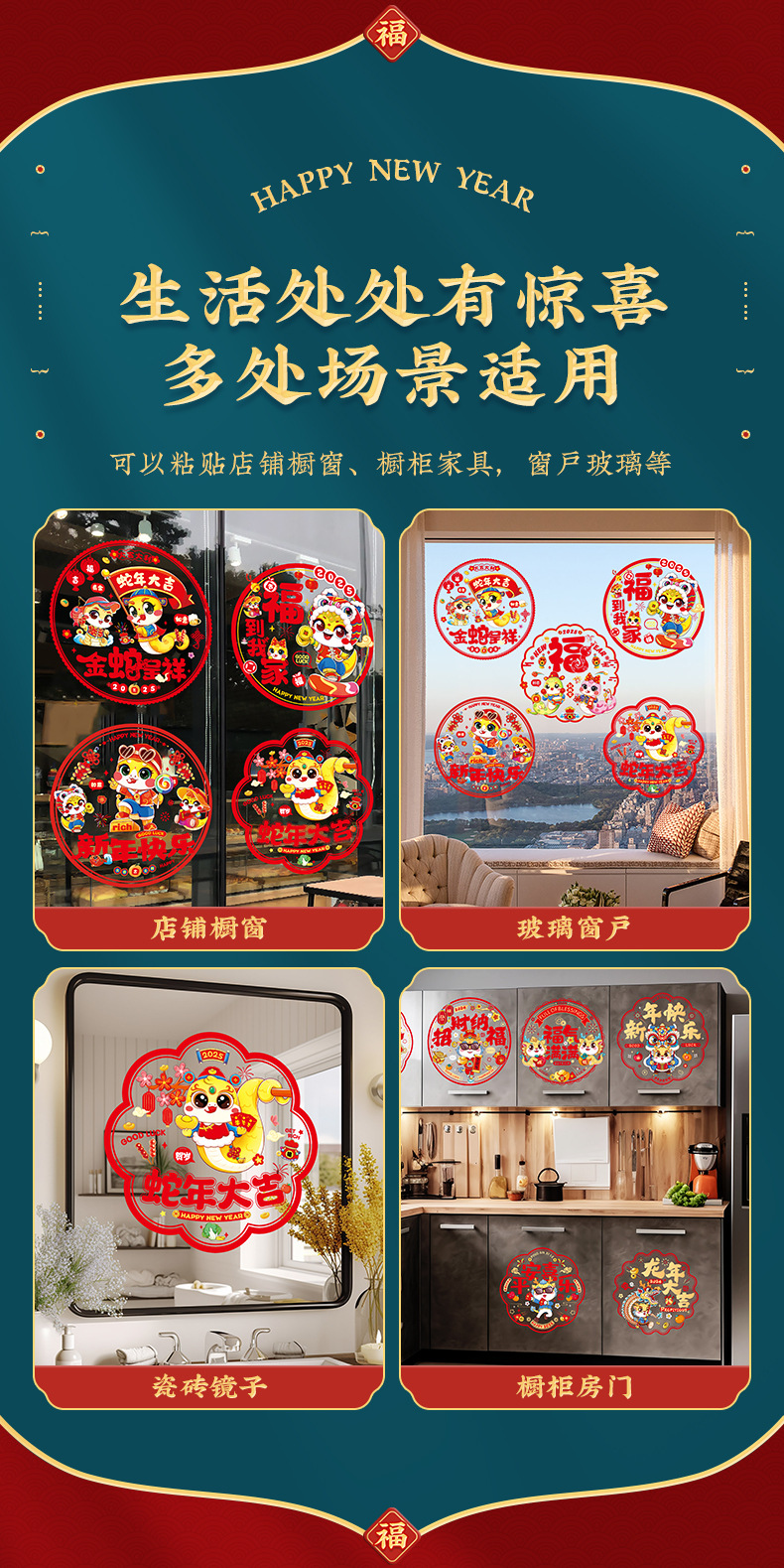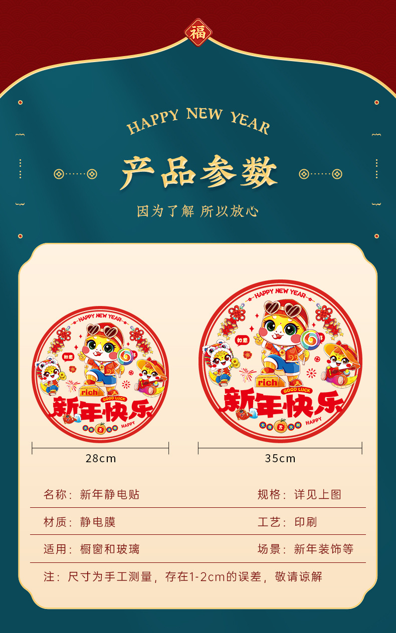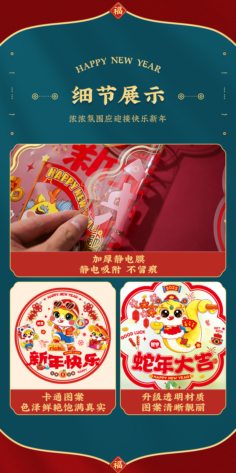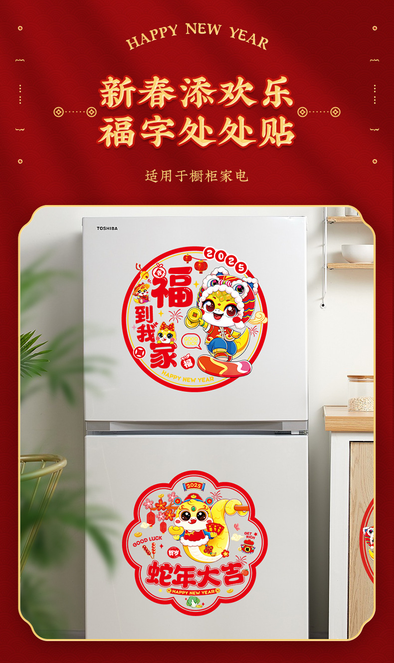 2025蛇年彩色窗花静电贴纸春节新年玻璃窗户福字门贴过年布置装饰