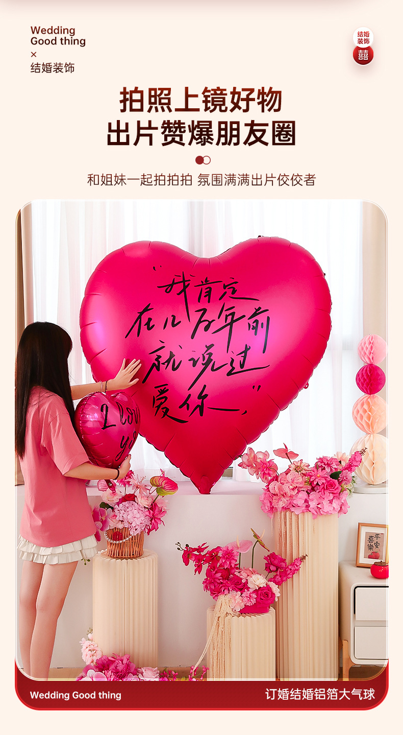 超大爱心气球结婚用品婚礼拍照道具场景装饰心形订婚婚房布置套装