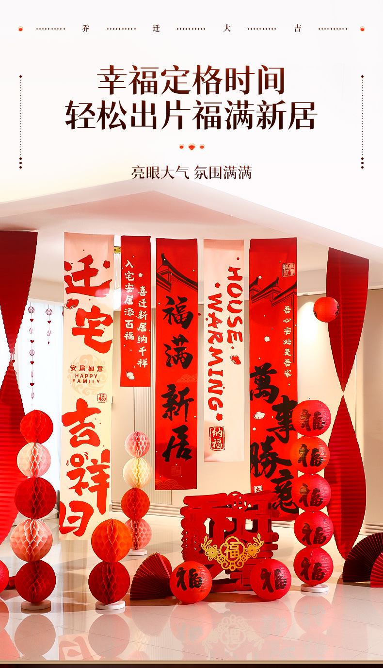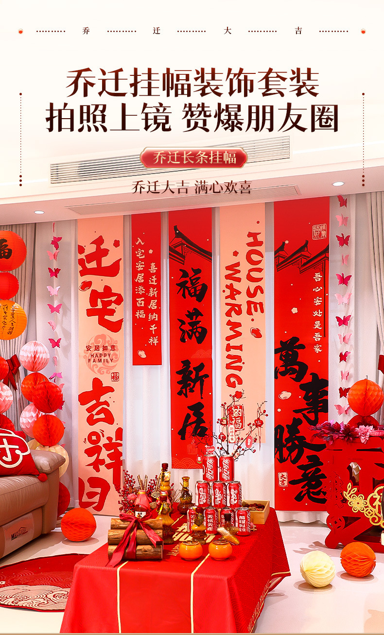 乔迁之喜装饰新居入宅挂布挂饰搬家新房客厅布置仪式感条幅背景墙