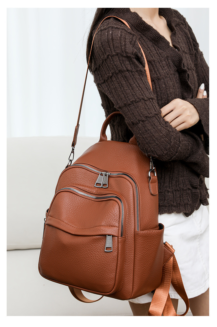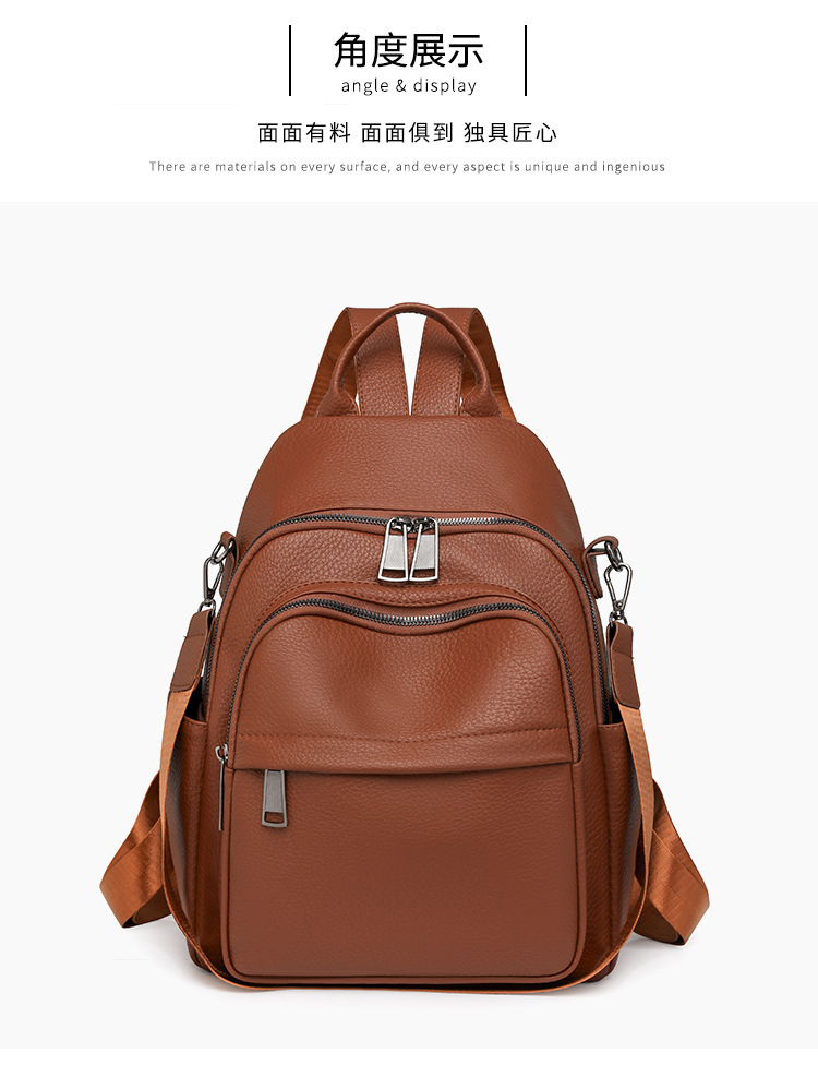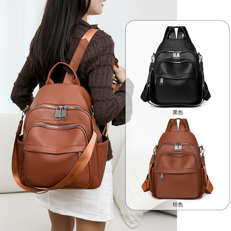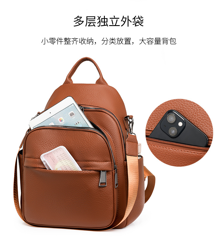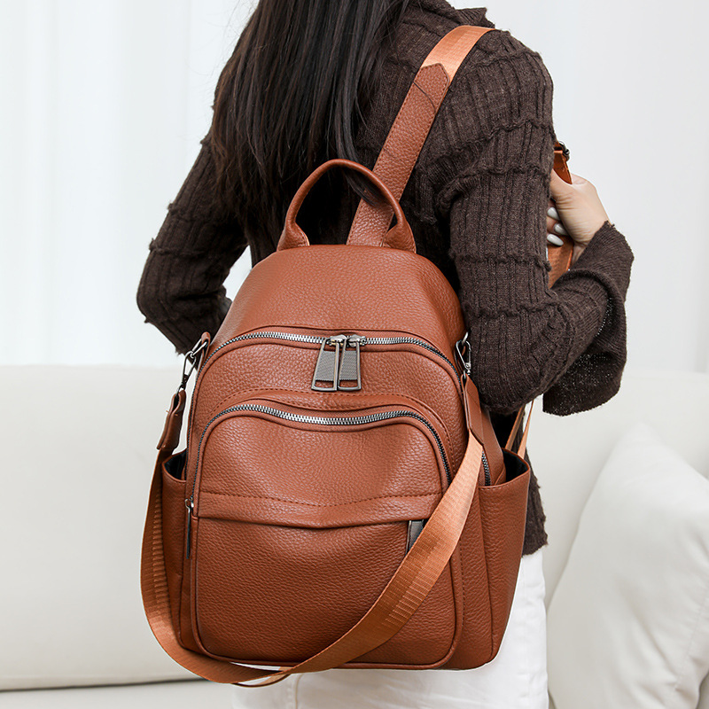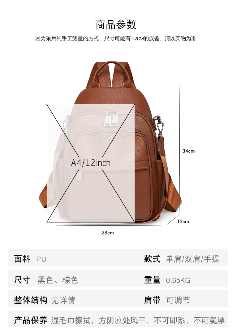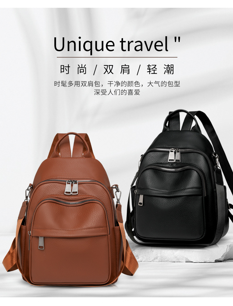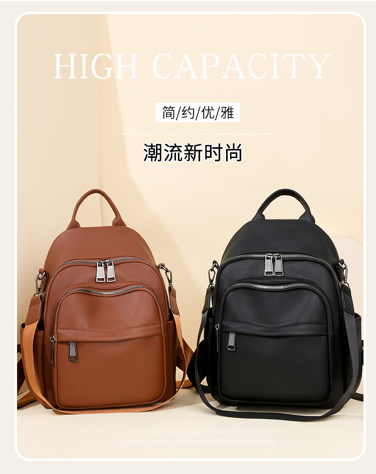 时尚双肩包女2024新款软pu皮女士旅行背包