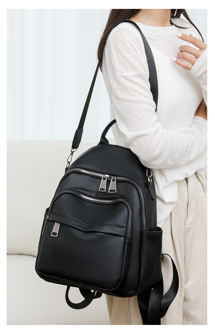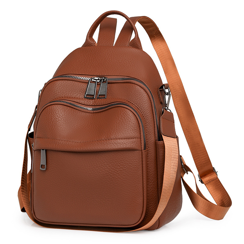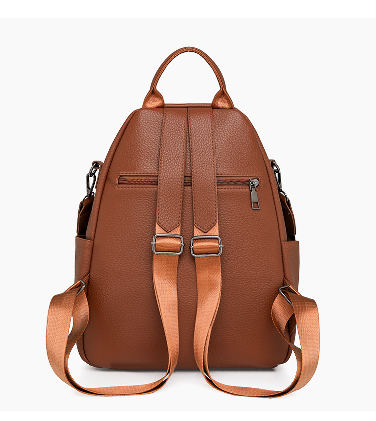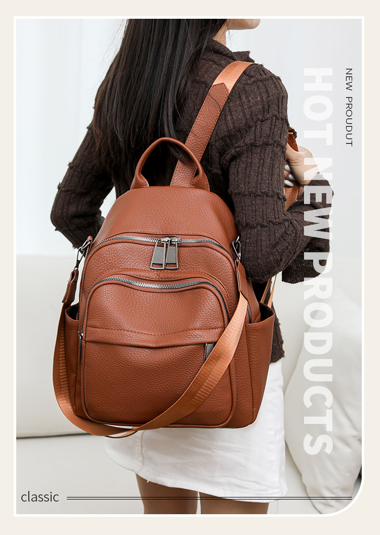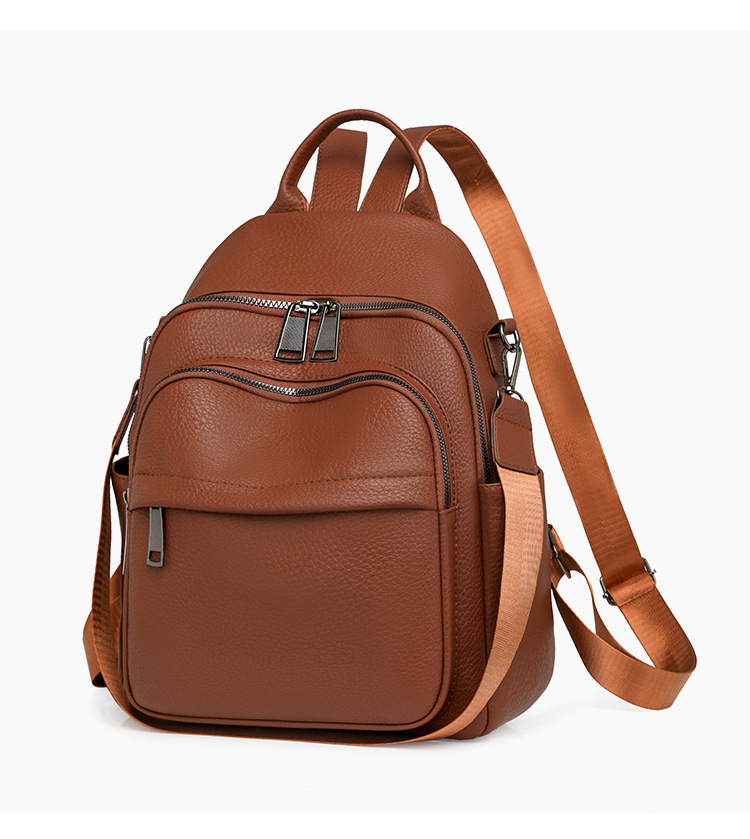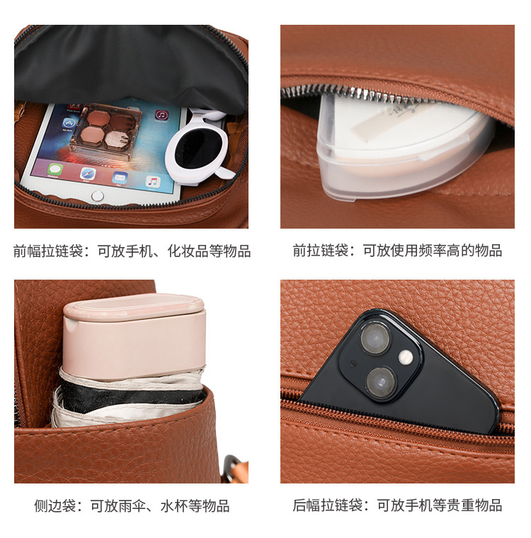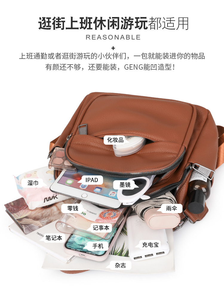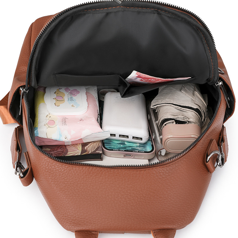 时尚双肩包女2024新款软pu皮女士旅行背包