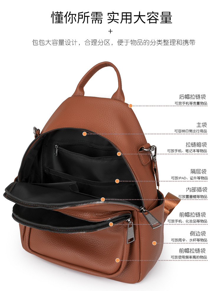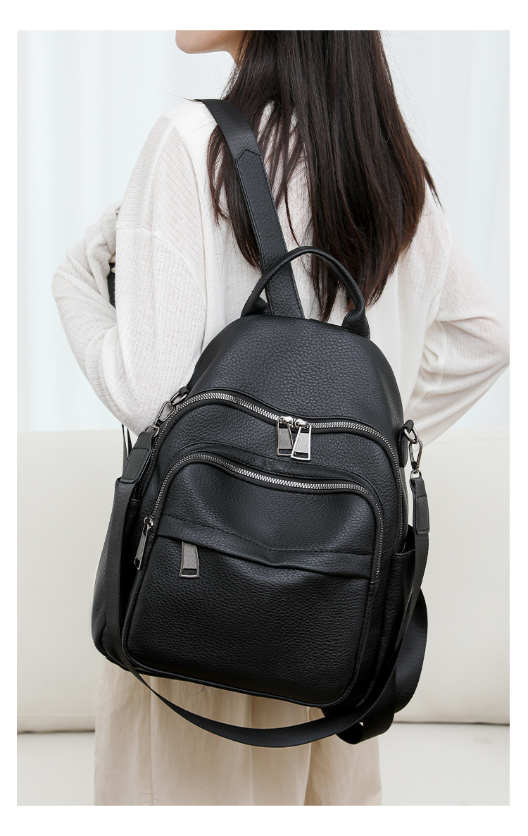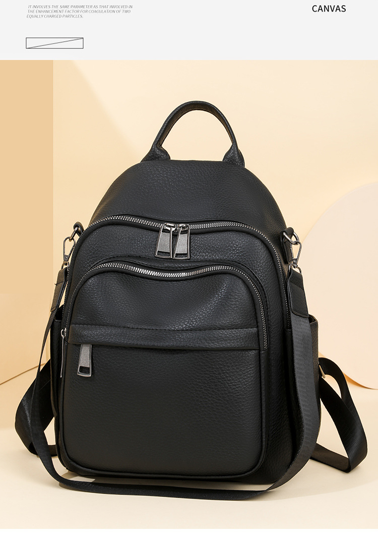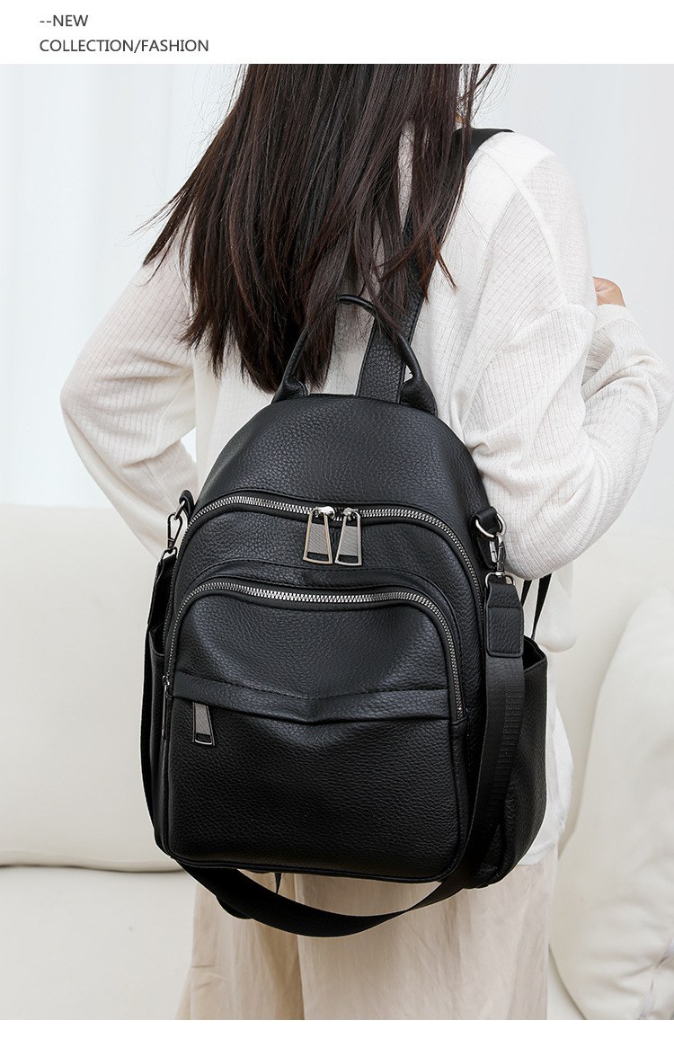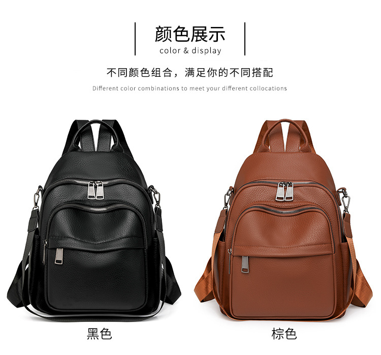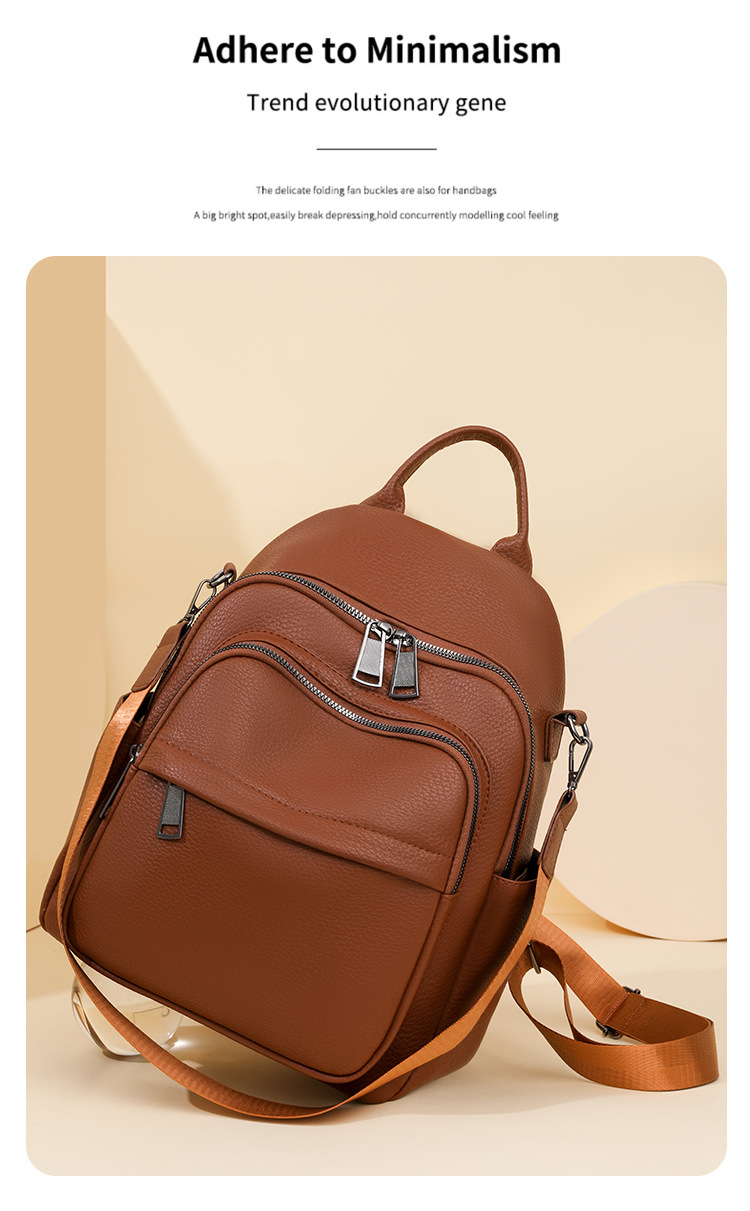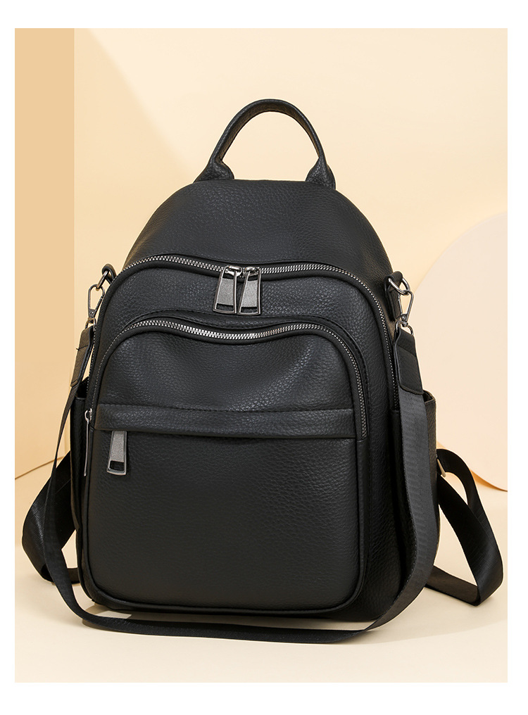 时尚双肩包女2024新款软pu皮女士旅行背包