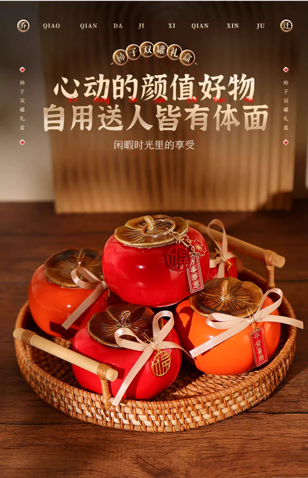 柿柿如意柿子罐摆件礼盒搬家新居礼物客厅布置春节乔迁之喜装饰