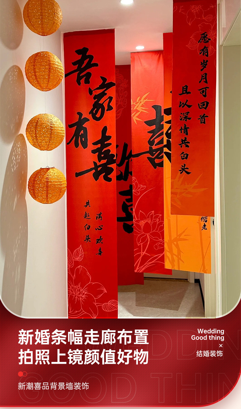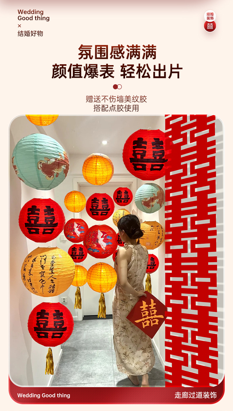 结婚长条喜字纸灯笼新房卧室楼梯订婚礼条幅挂布婚房布置装饰套装