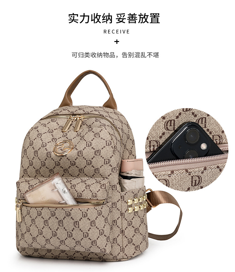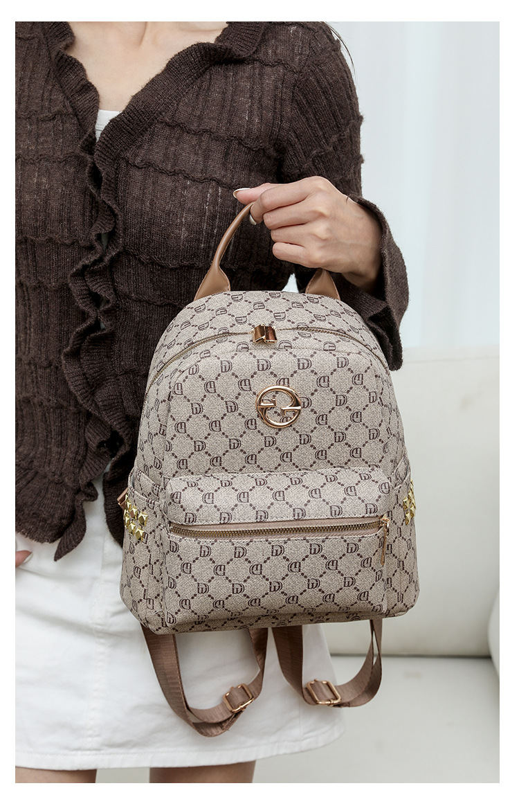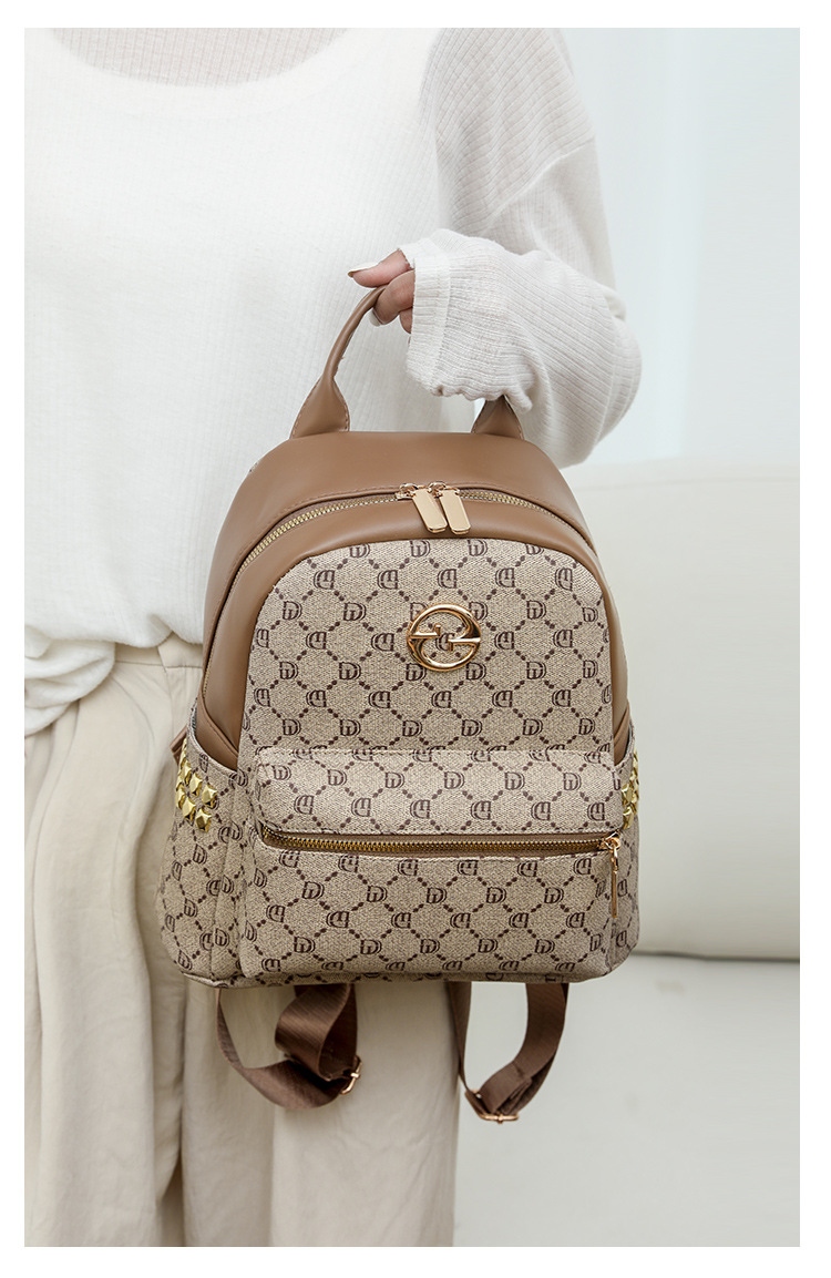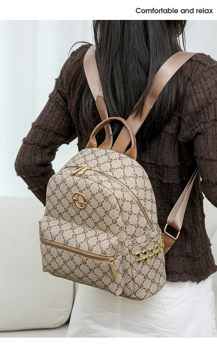 时尚包包女2024新款复古印花通勤双肩包女士流行休闲旅行背包