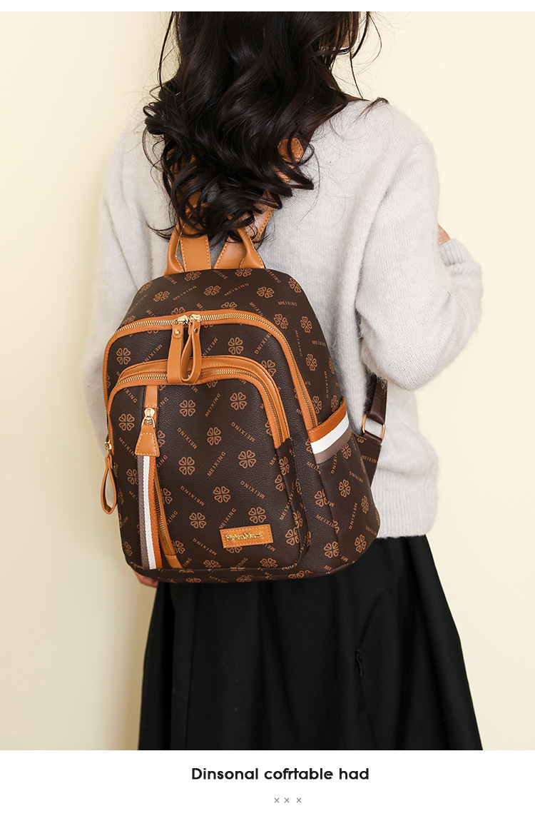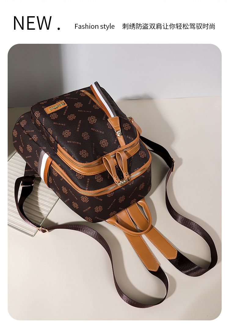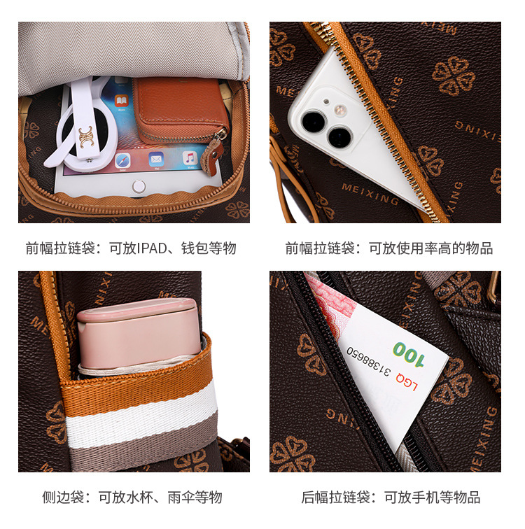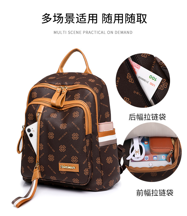 皮革双肩包女包2024新款时尚旅行双肩背包