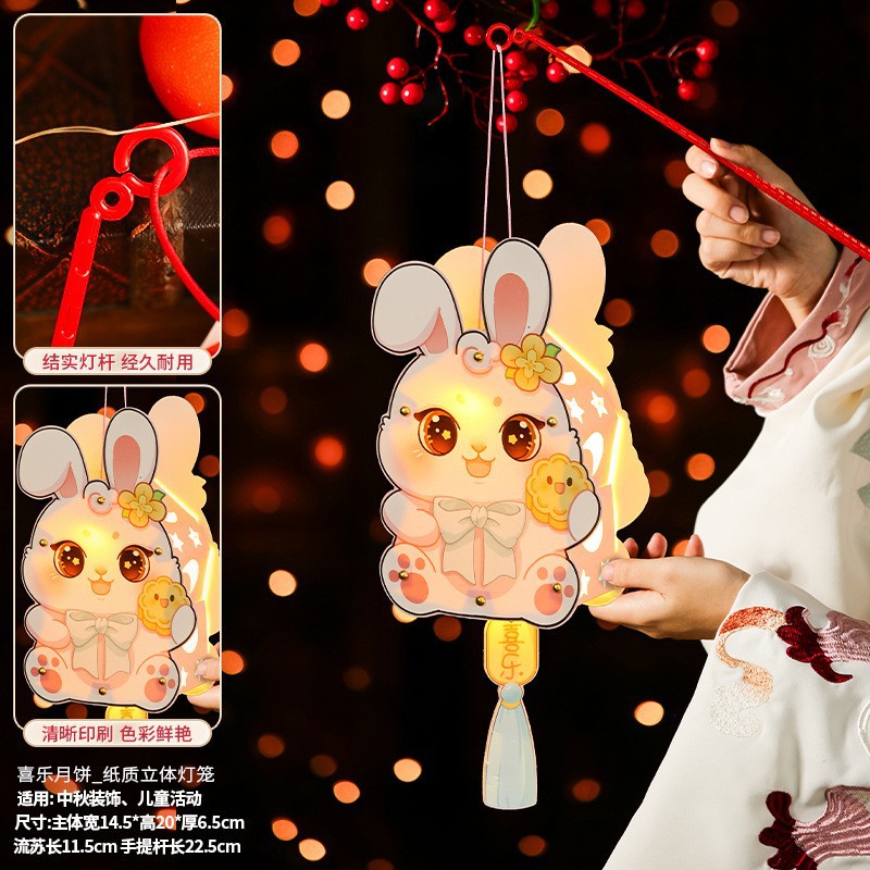 蛇年元宵节灯笼兔子花灯手工diy材料包 2025新款手提发光卡通宫灯