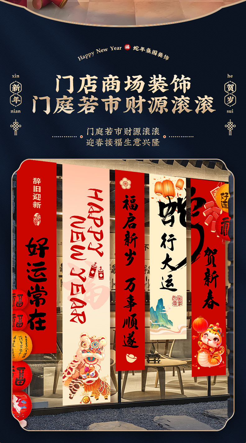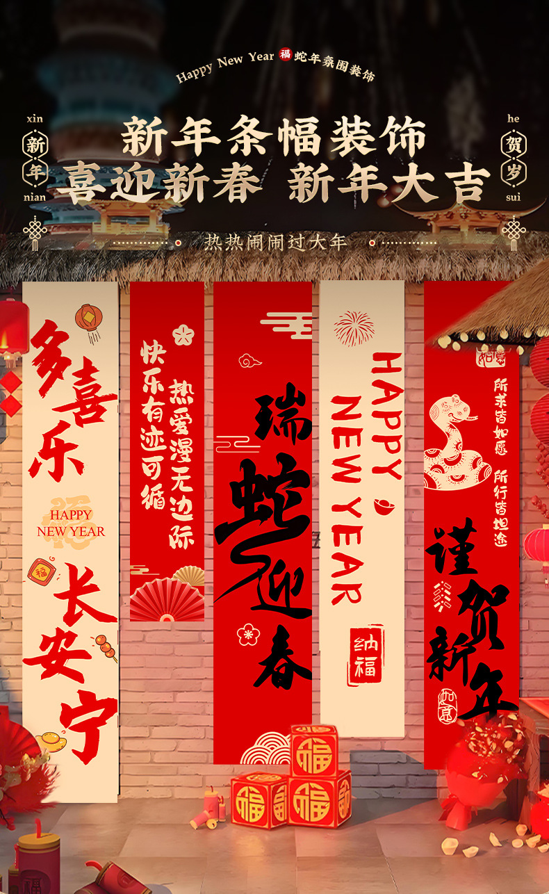 新年装饰品条幅挂件2025春节商场活动场景布置蛇年背景墙喜庆挂饰
