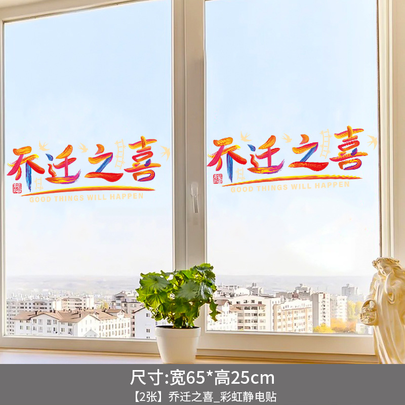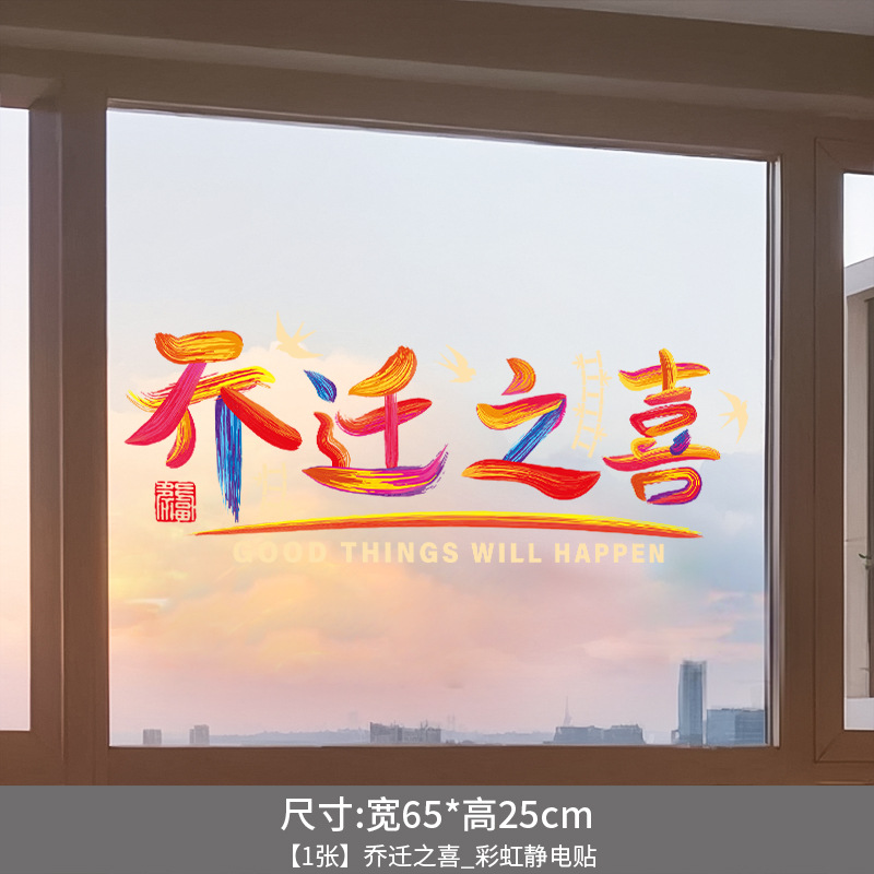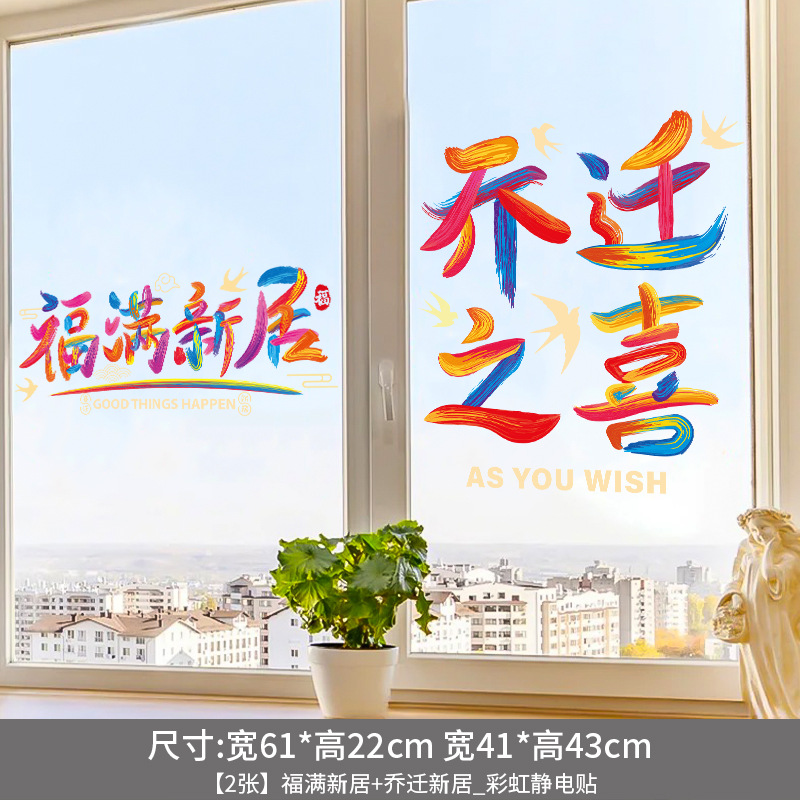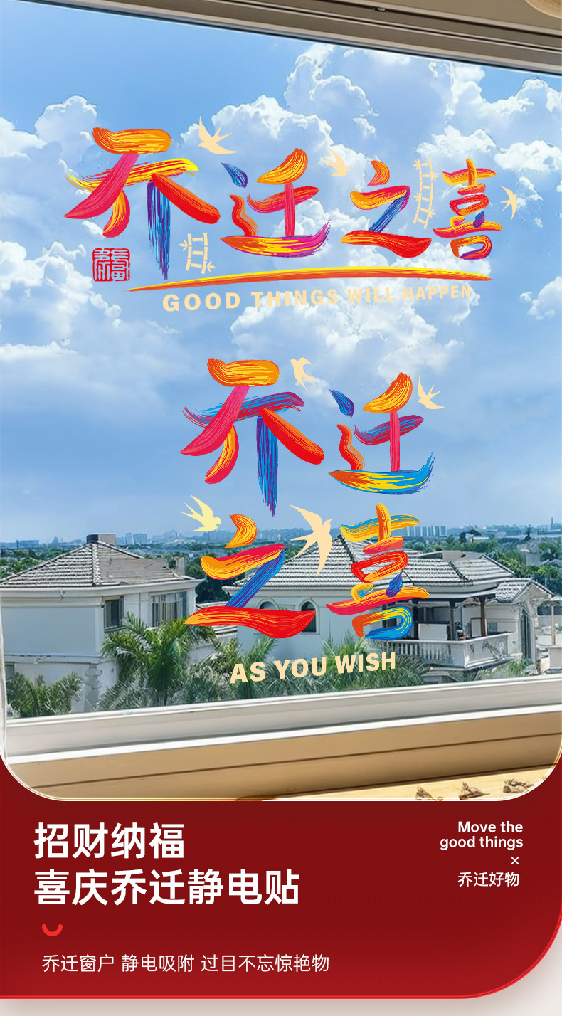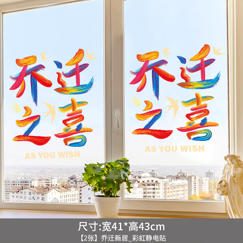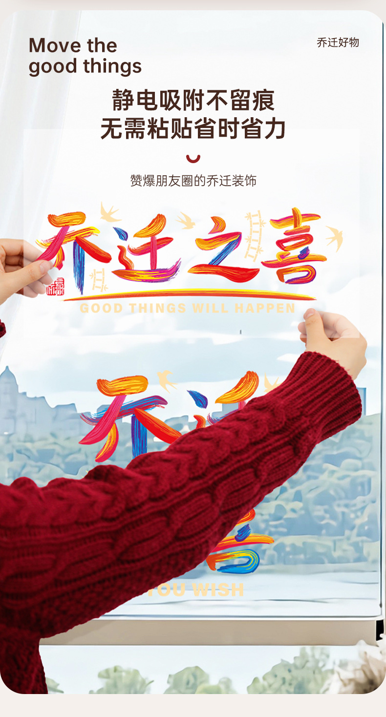 乔迁之喜装饰静电贴窗花新居入宅仪式布置用品入户门玻璃福字贴纸