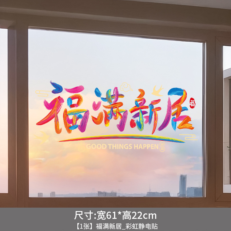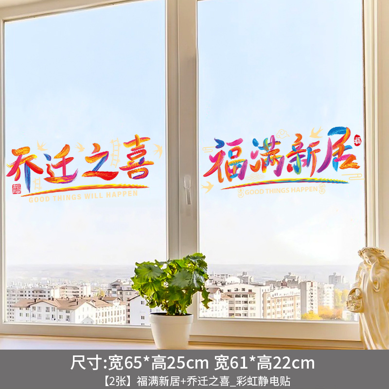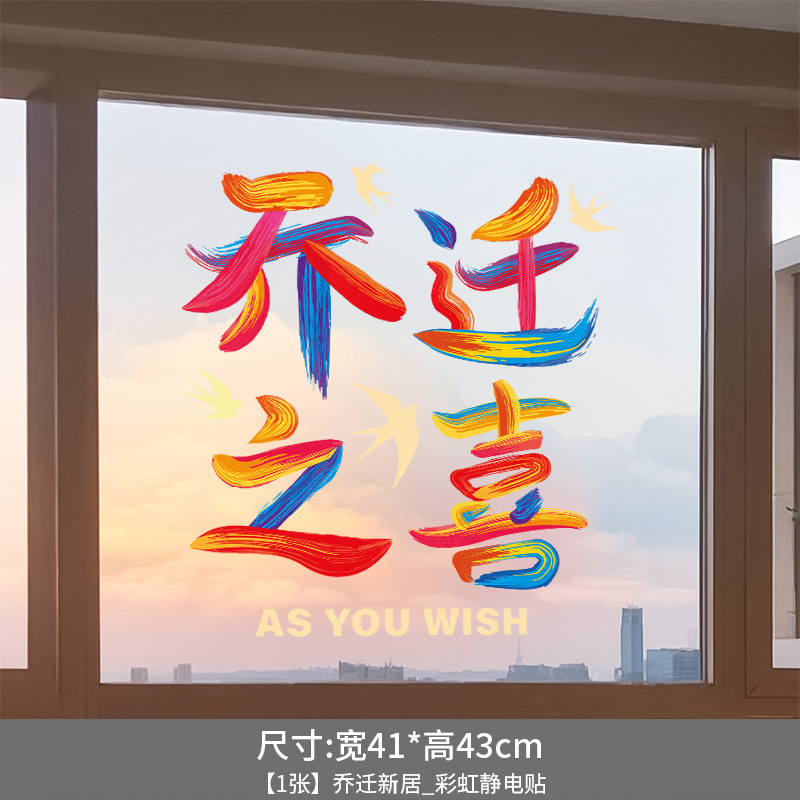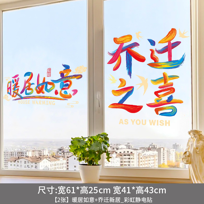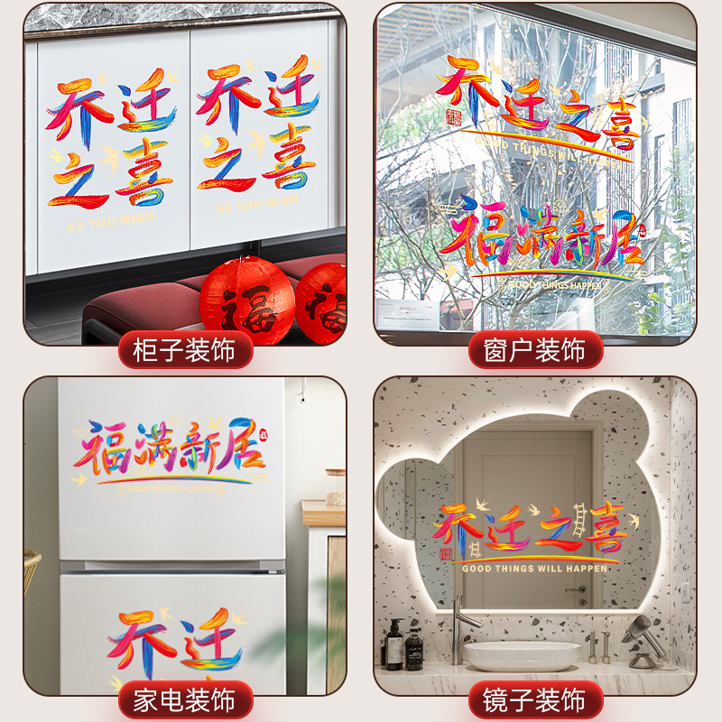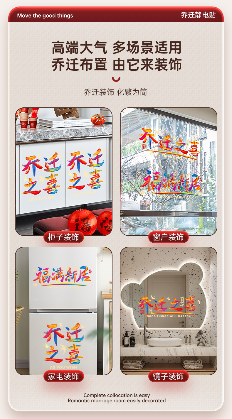 乔迁之喜装饰静电贴窗花新居入宅仪式布置用品入户门玻璃福字贴纸