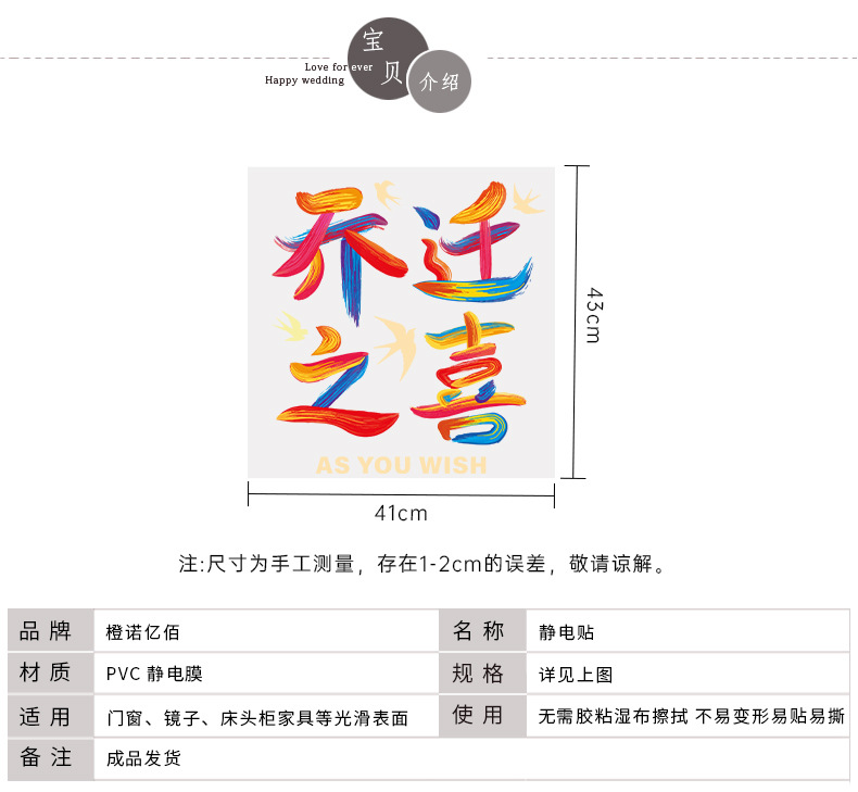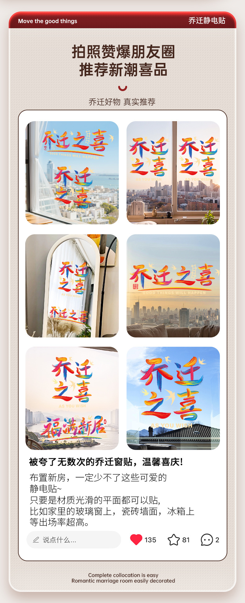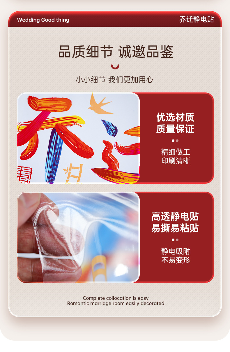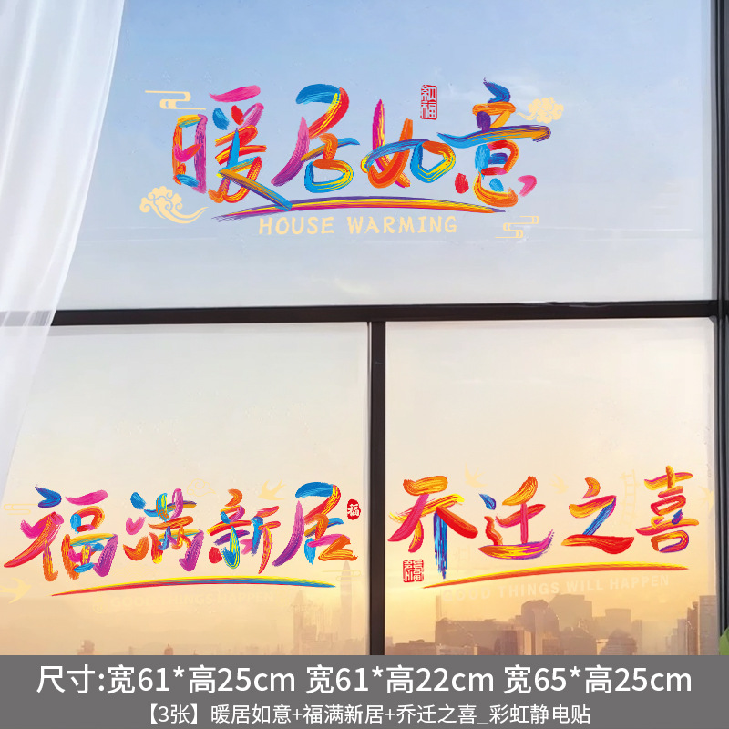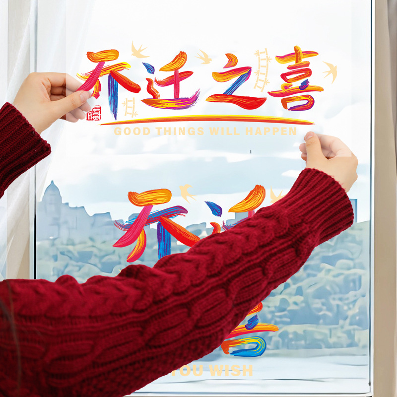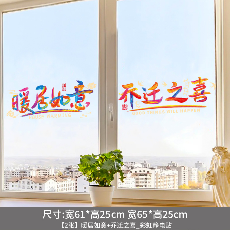 乔迁之喜装饰静电贴窗花新居入宅仪式布置用品入户门玻璃福字贴纸