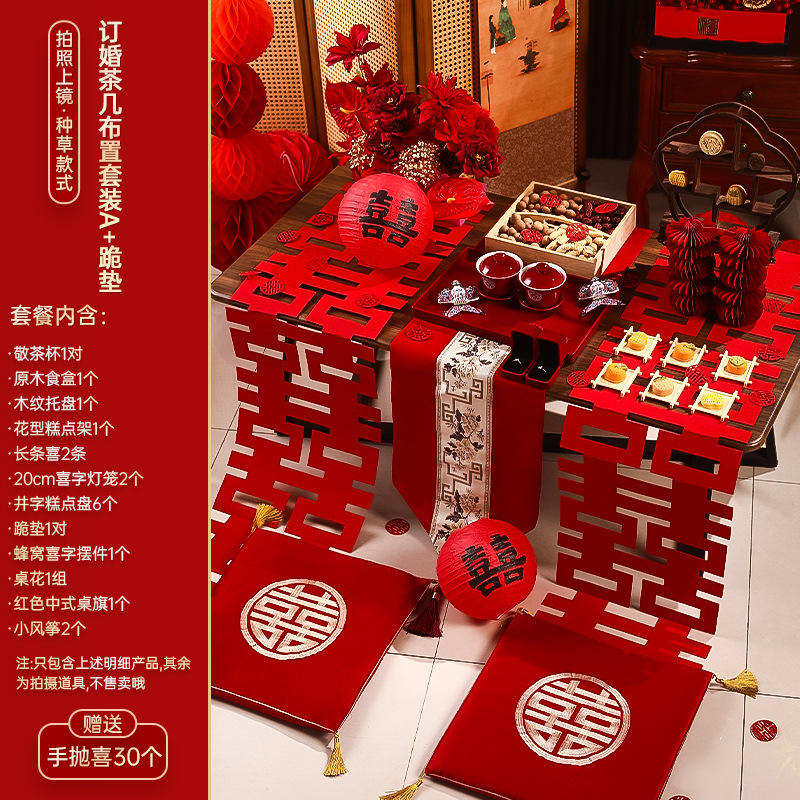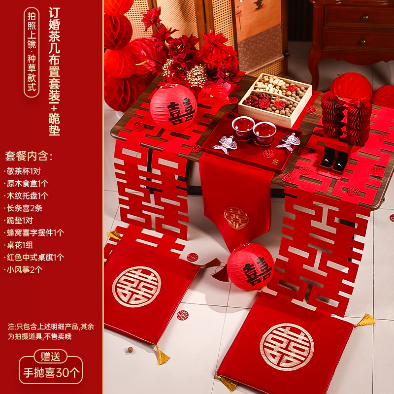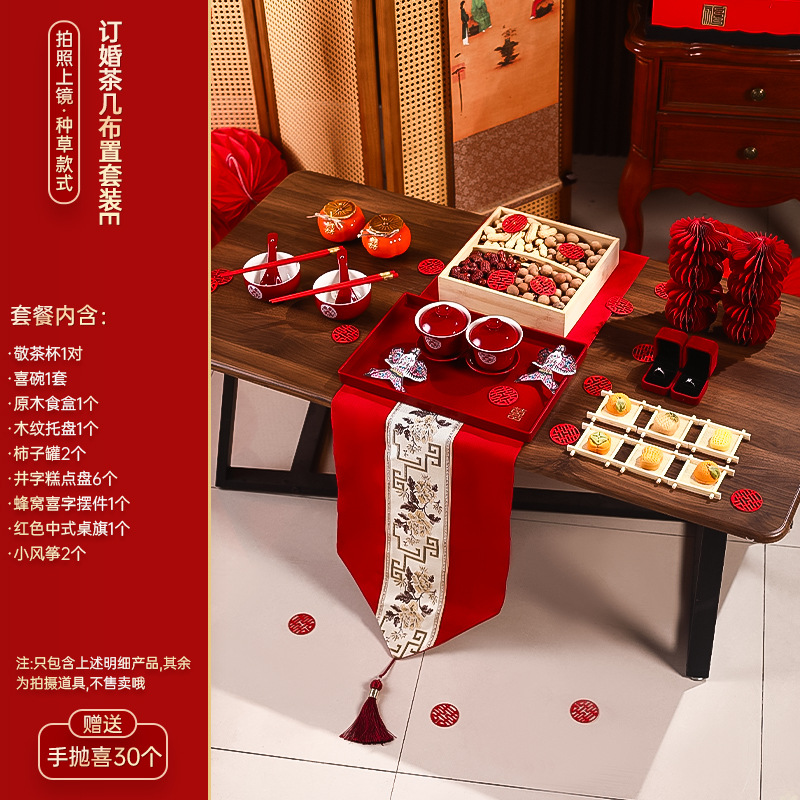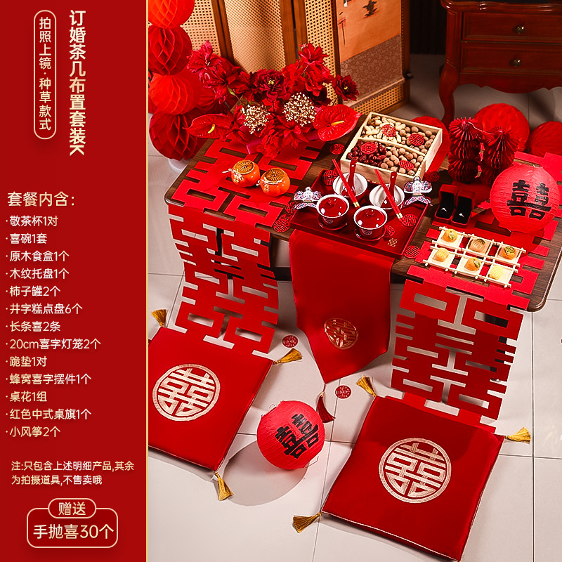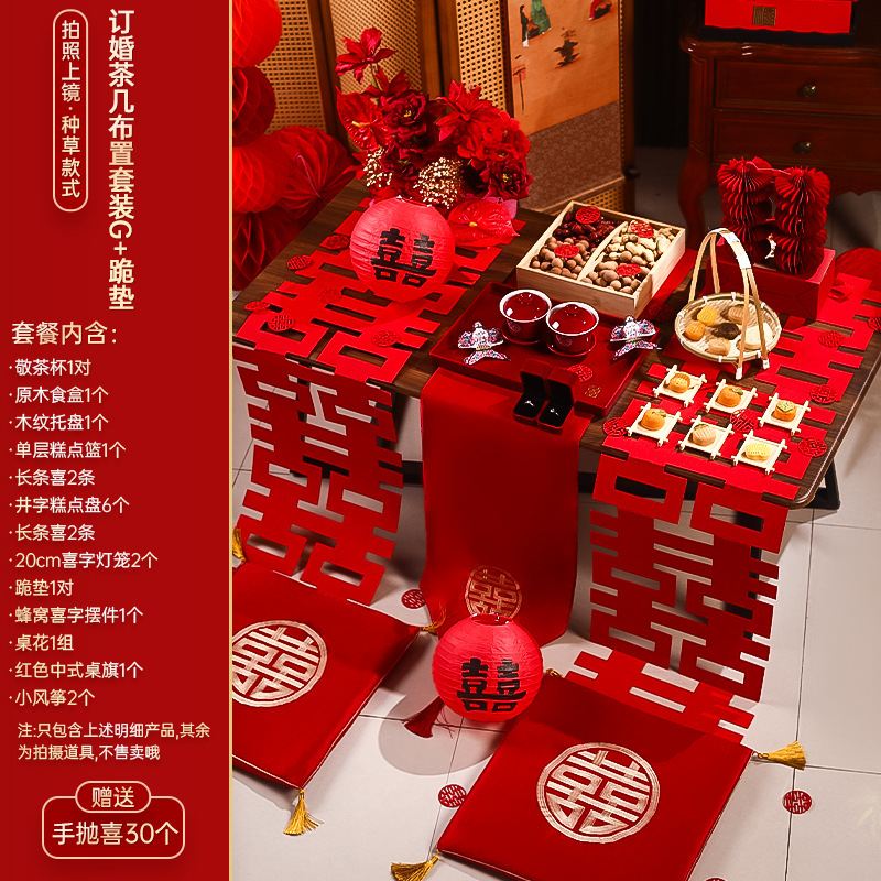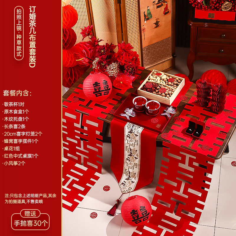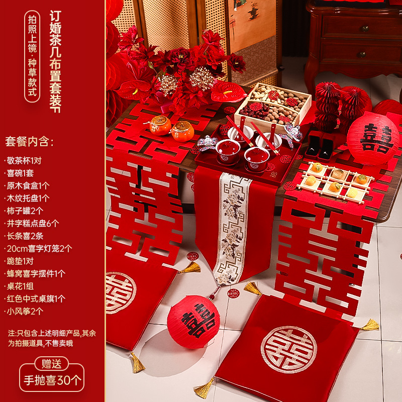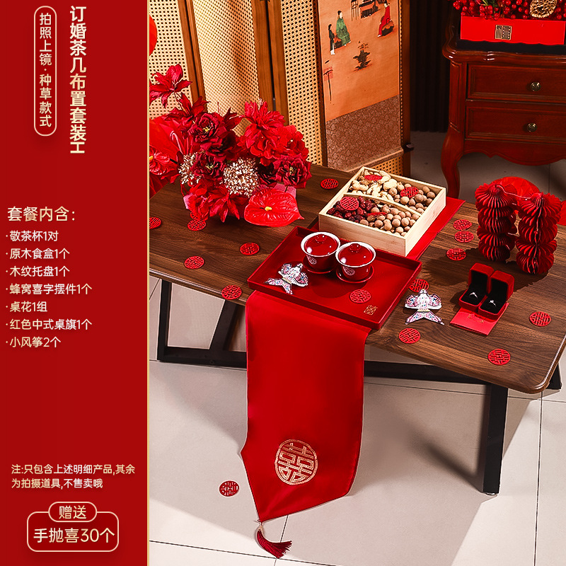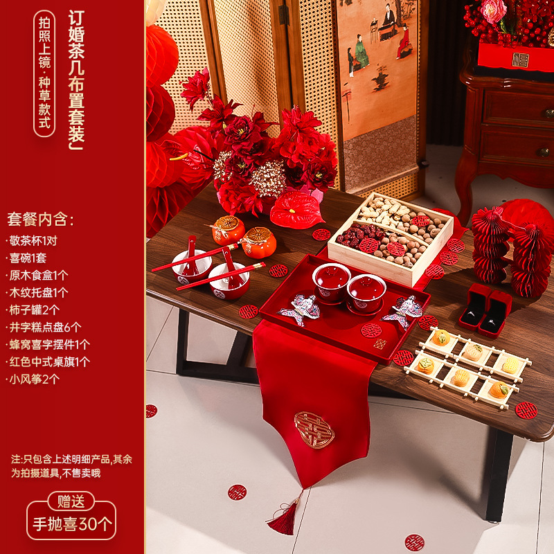 订婚宴摆台全套装饰婚礼敬茶场景装扮客厅茶几摆件结婚房布置套装