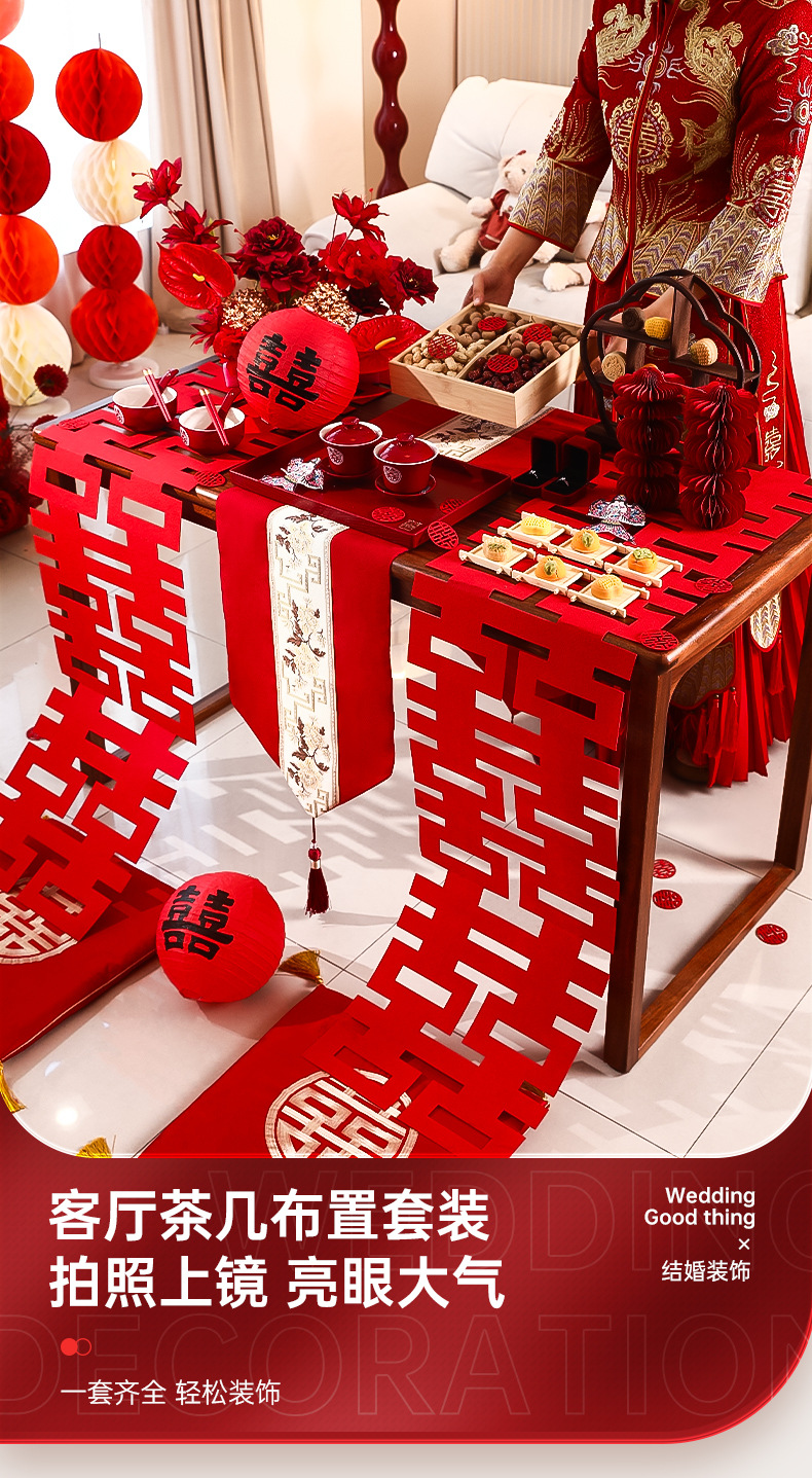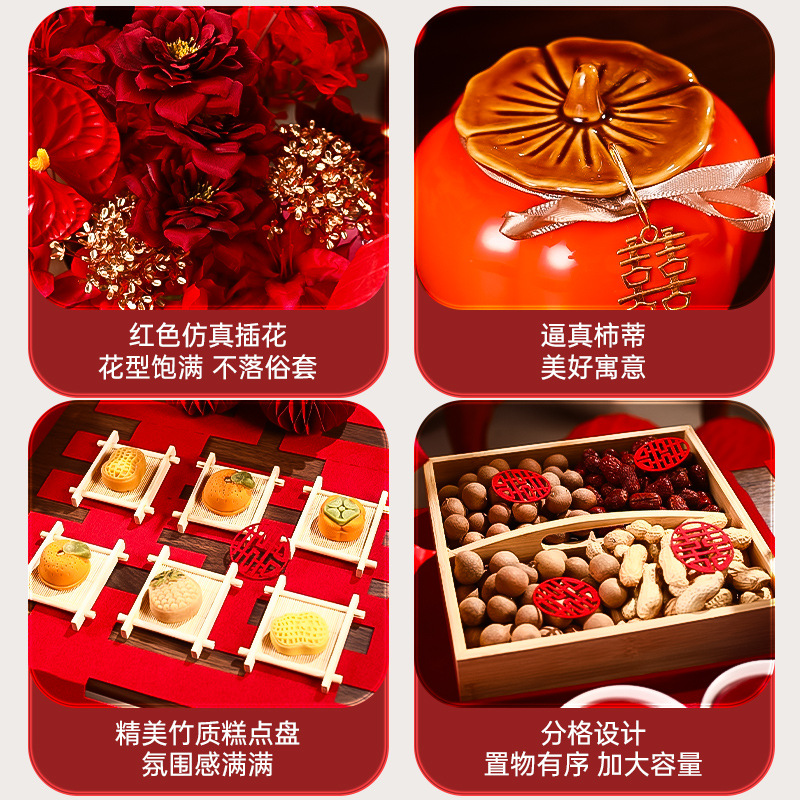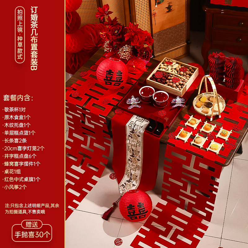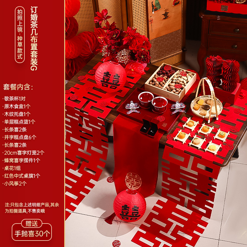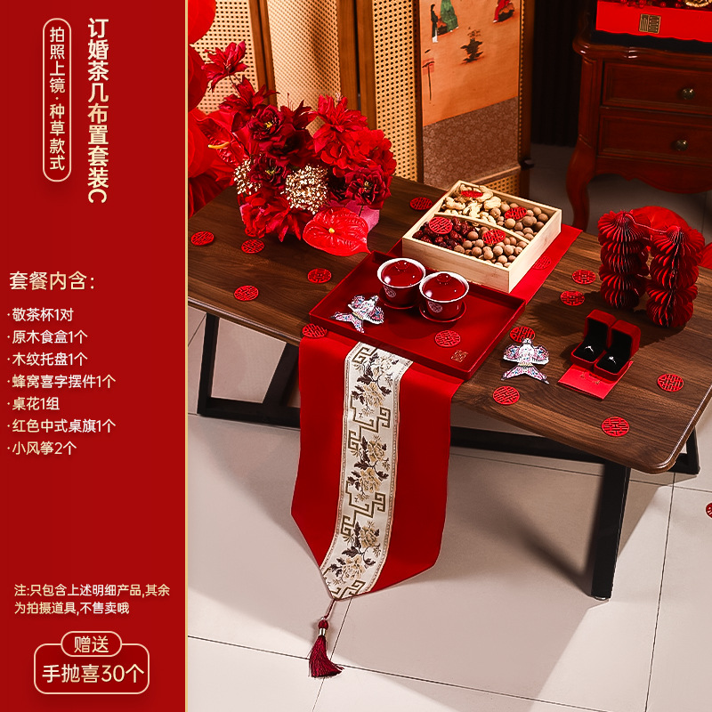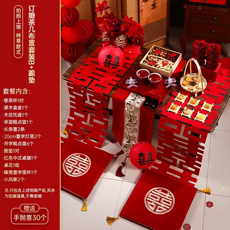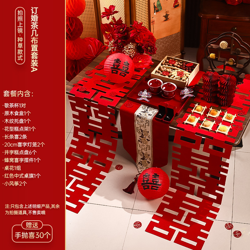 订婚宴摆台全套装饰婚礼敬茶场景装扮客厅茶几摆件结婚房布置套装