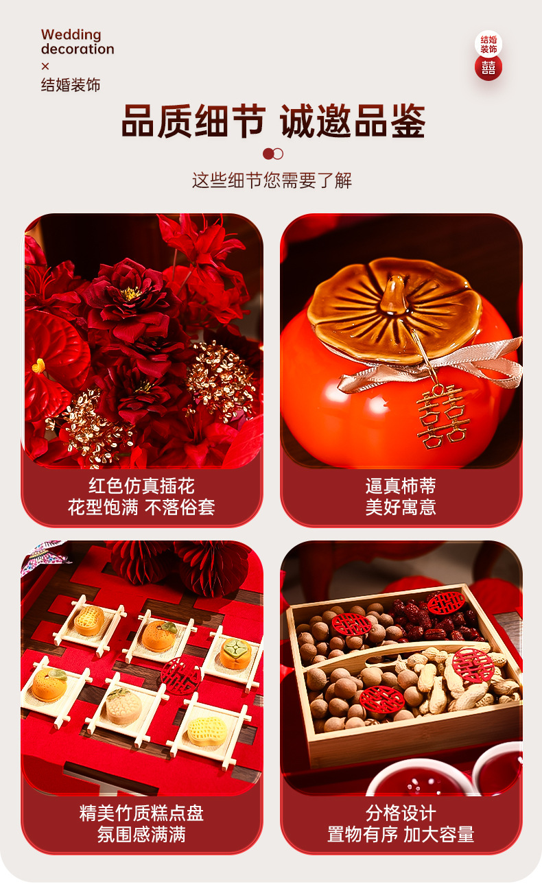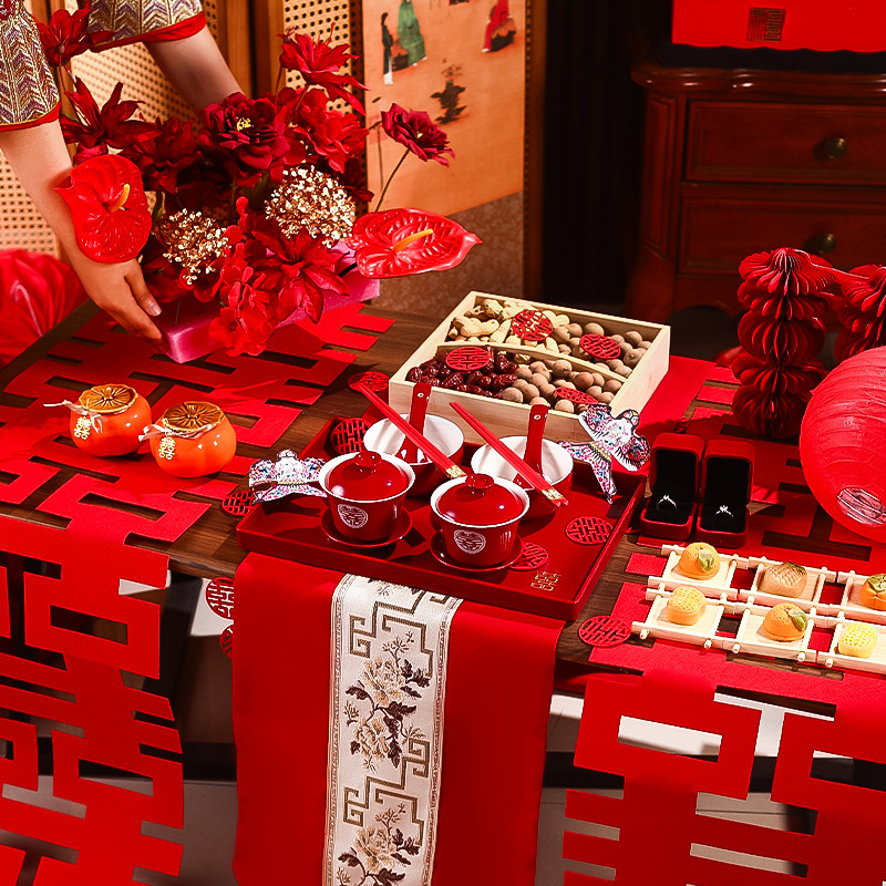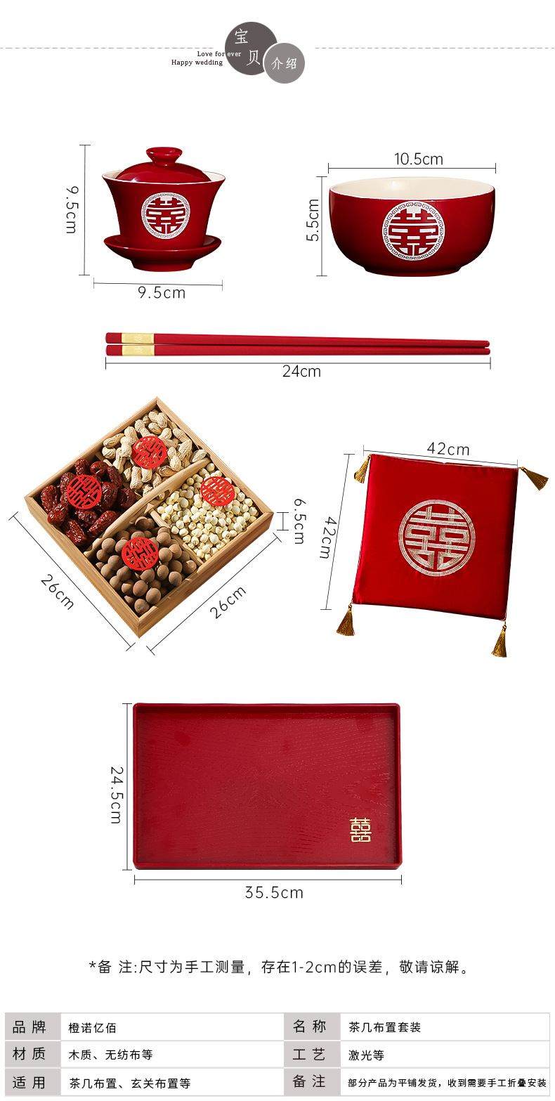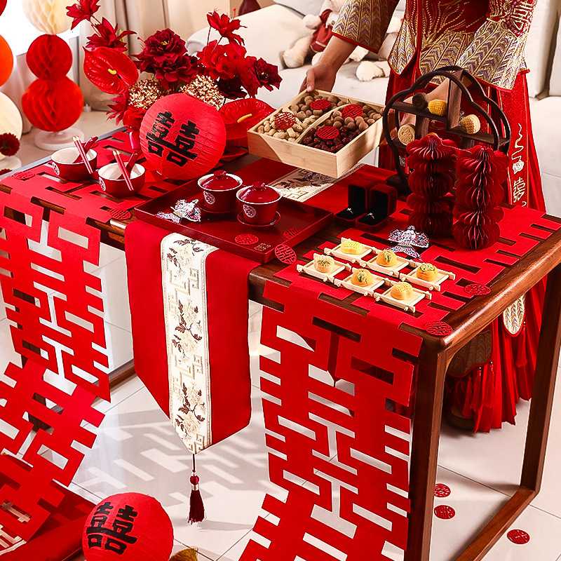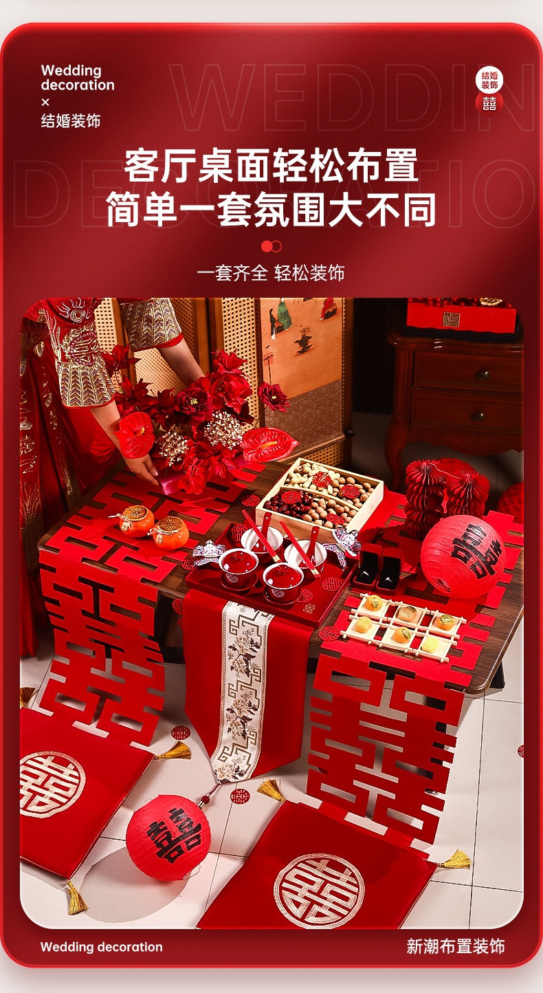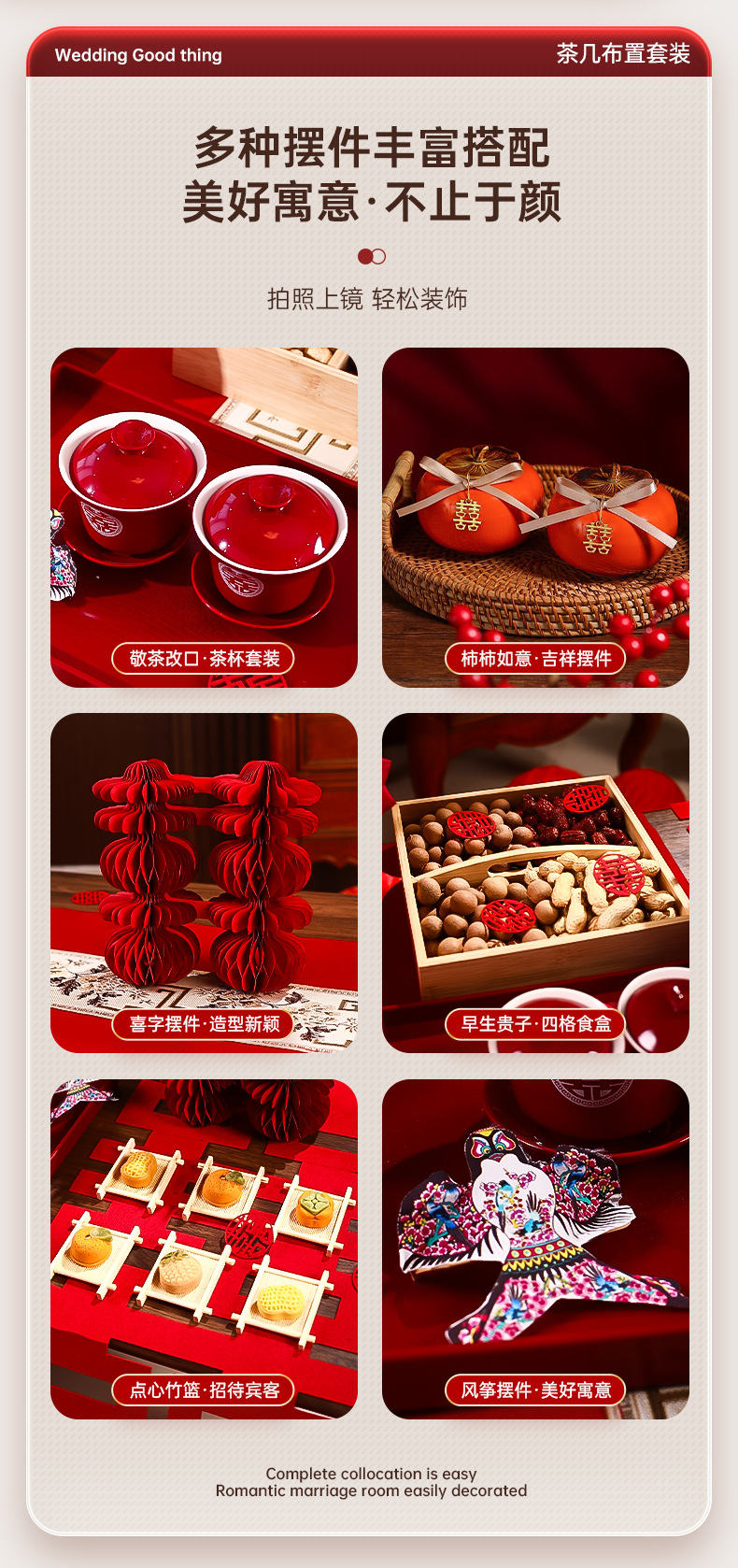 订婚宴摆台全套装饰婚礼敬茶场景装扮客厅茶几摆件结婚房布置套装