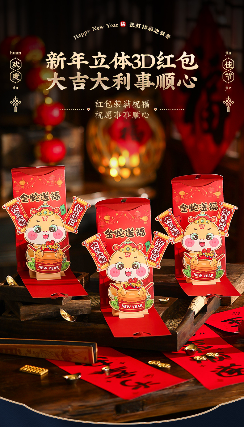 | three-dimensional 1000 yuan red envelope/3 pack(立体千元红包/3个装) | USD $1.7 | 2998 piece available |