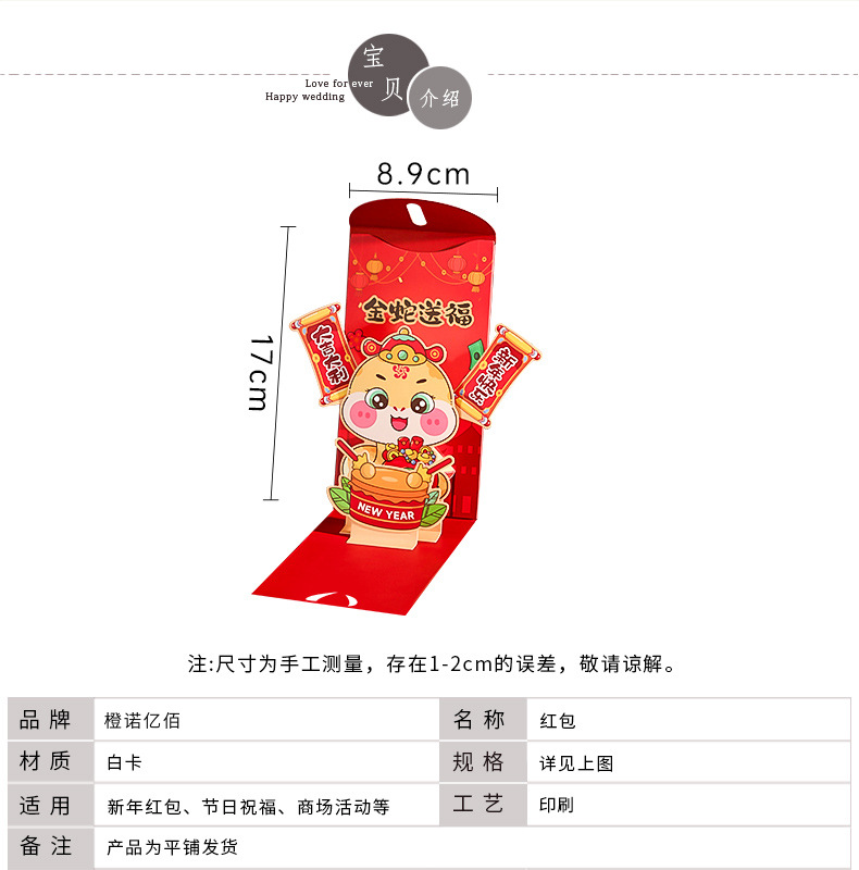 | three-dimensional 1000 yuan red envelope/1 pack(立体千元红包/1个装) | USD $0.61 | 3000 piece available |