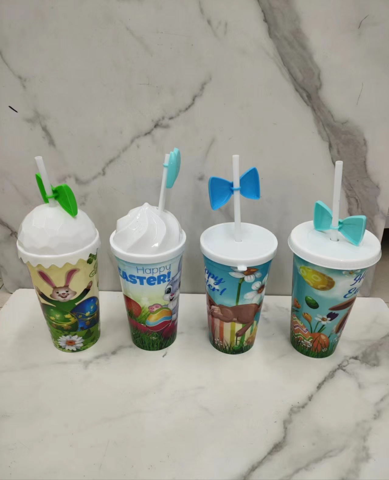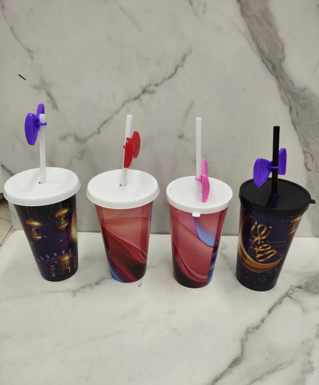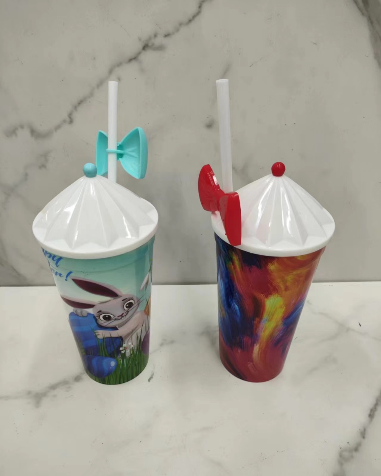 新款圣诞款水杯 创意吸管杯 派对塑料杯PP水杯吸管杯