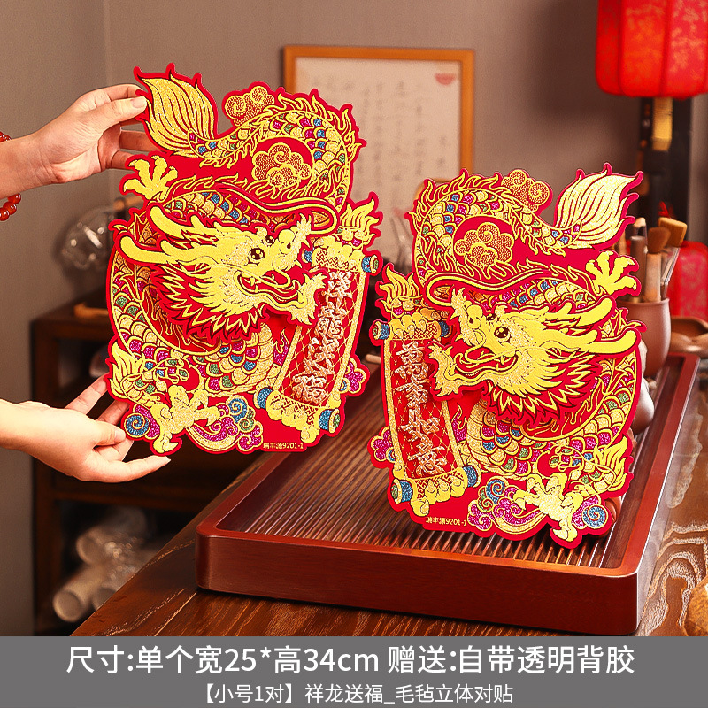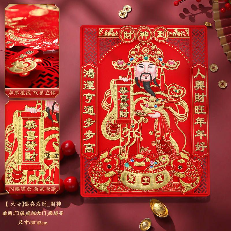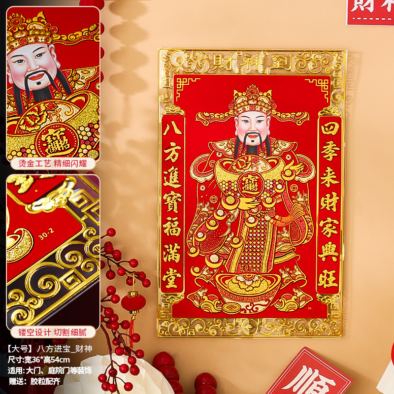 新年2025蛇年财神爷自粘门神贴春节过年立体福字装饰大门贴纸年画