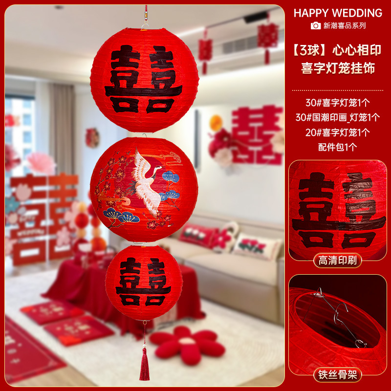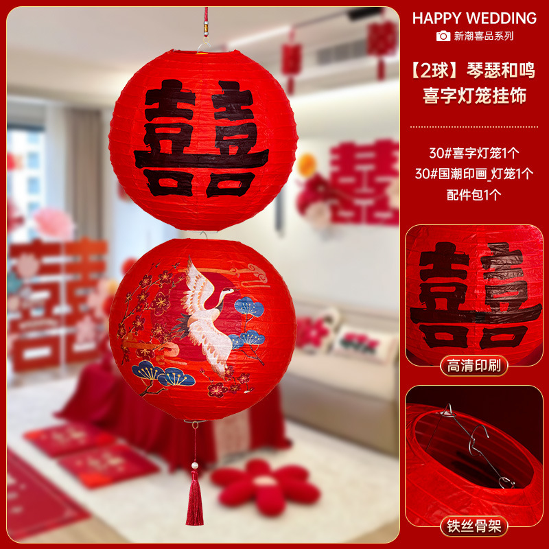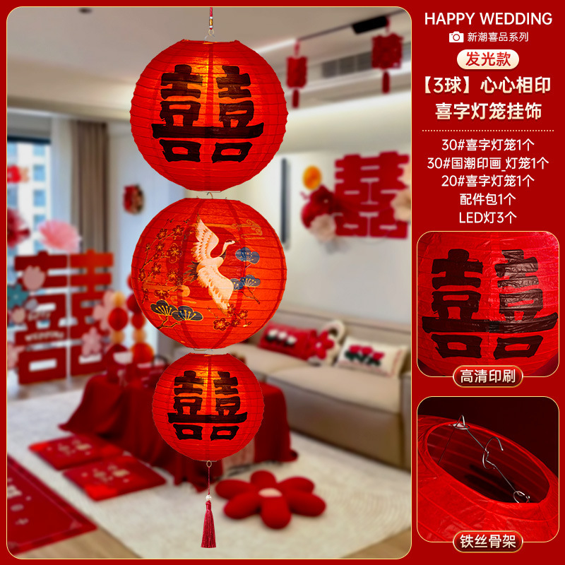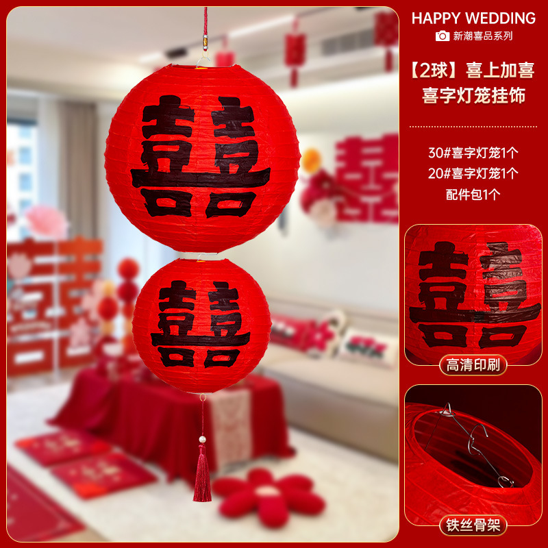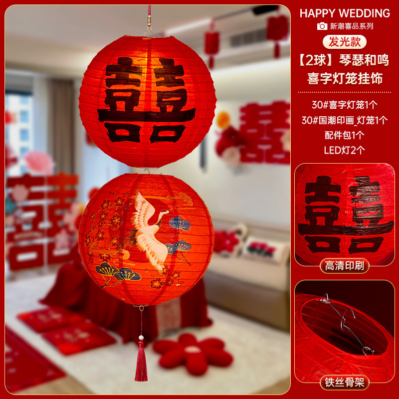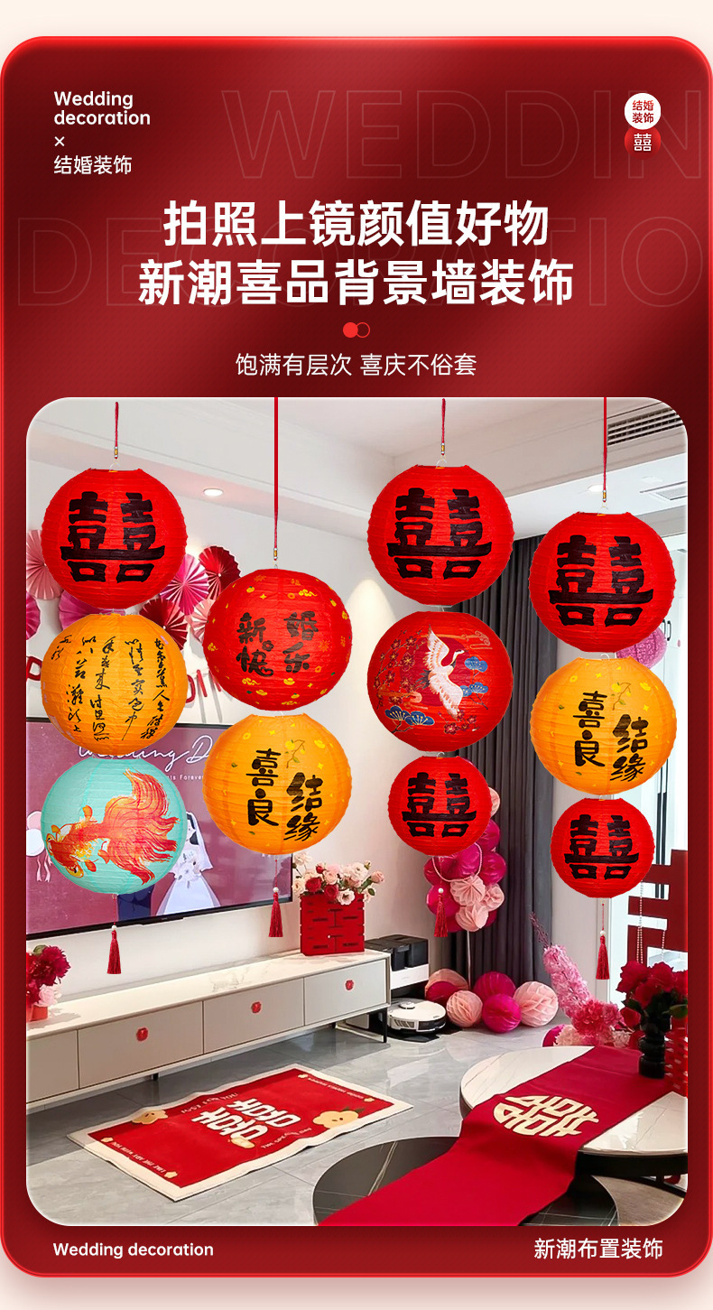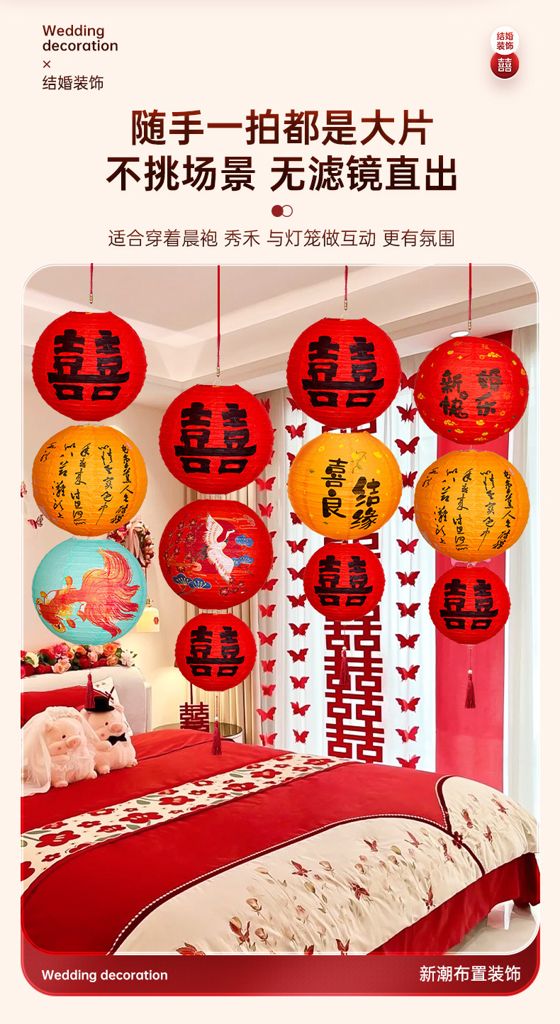 结婚喜字灯笼串新娘新中式装饰拍照卧室客厅背景布置婚房装饰套装