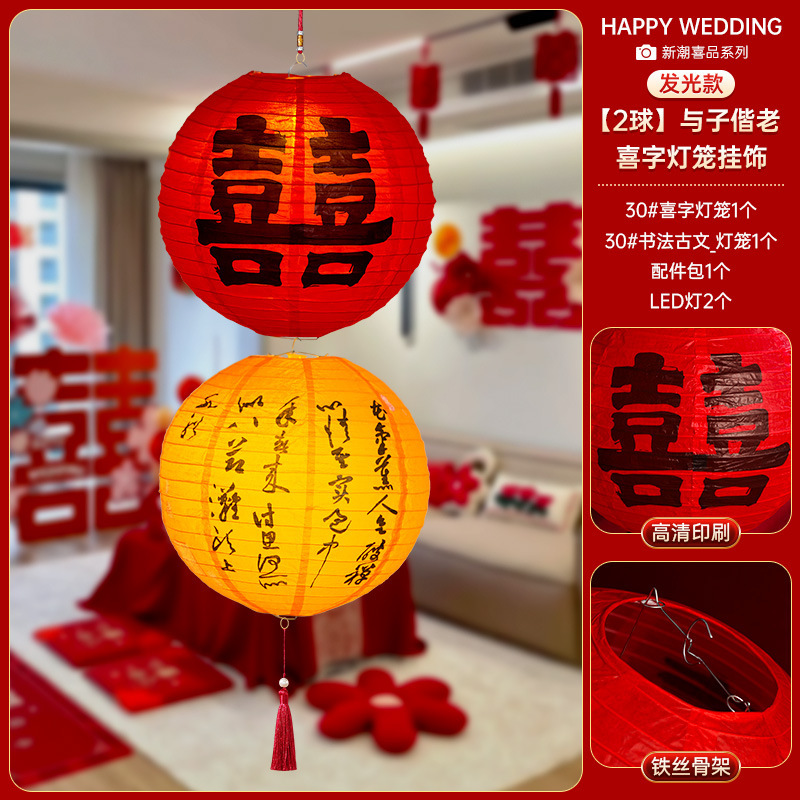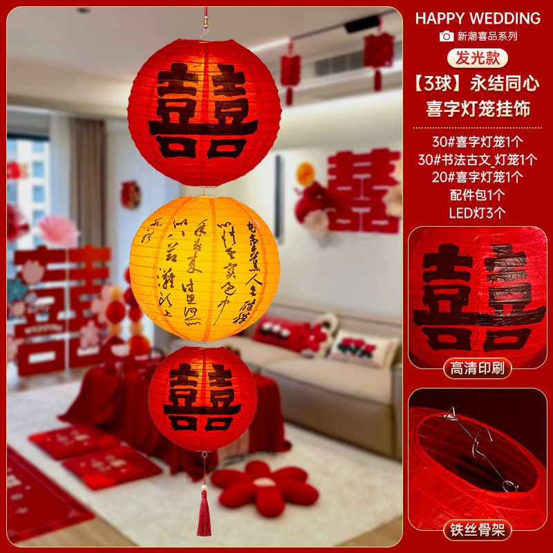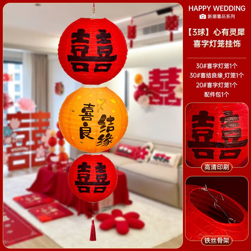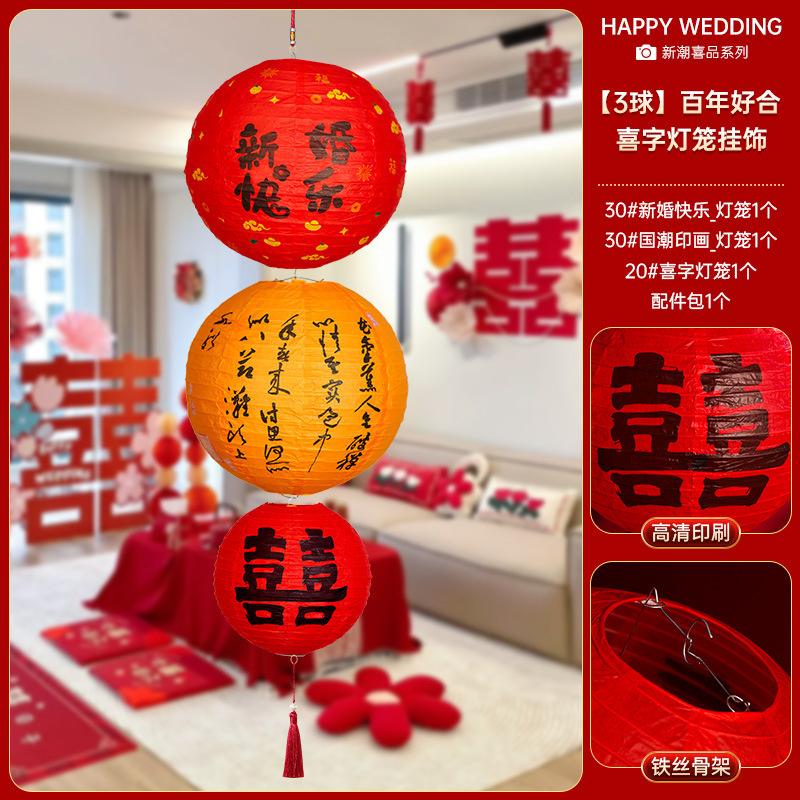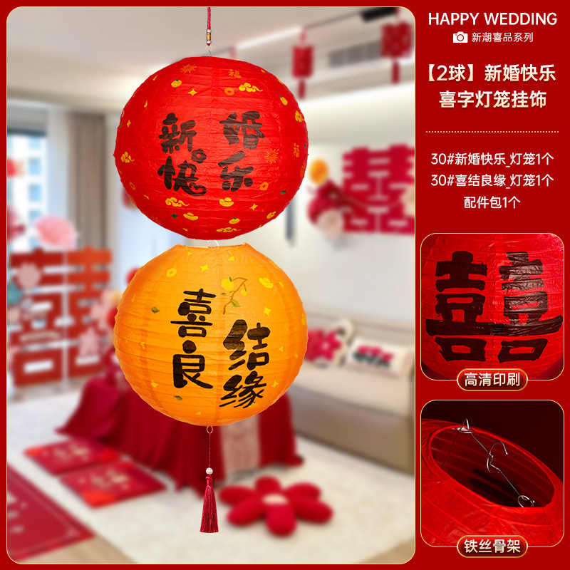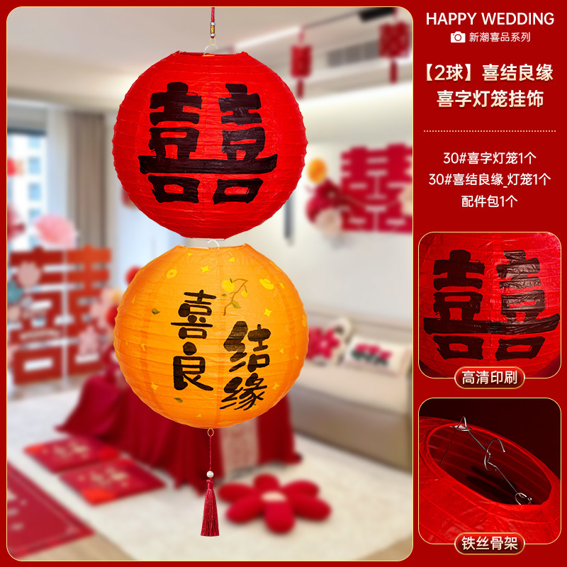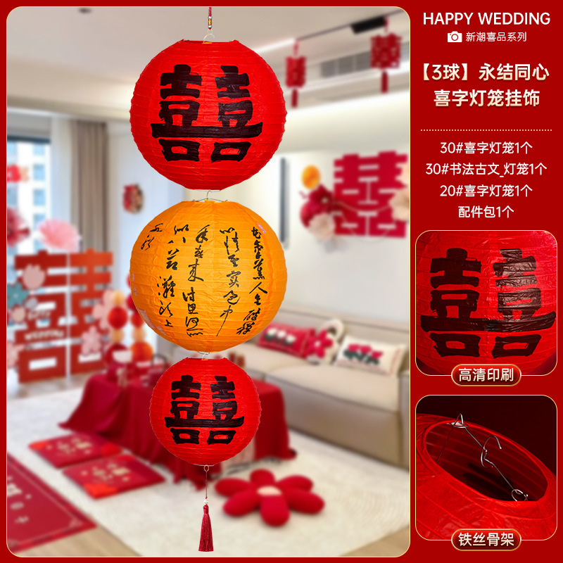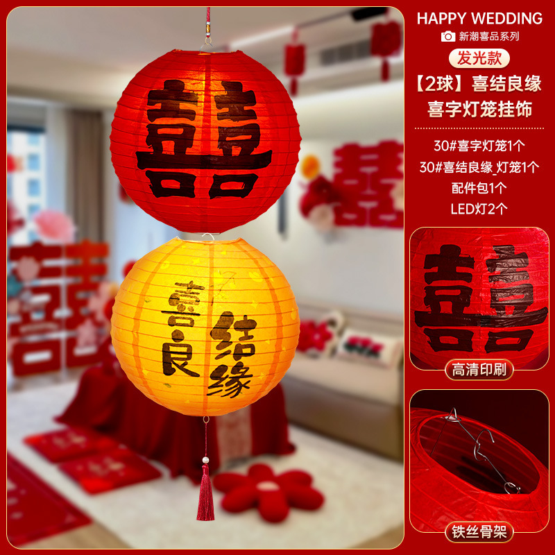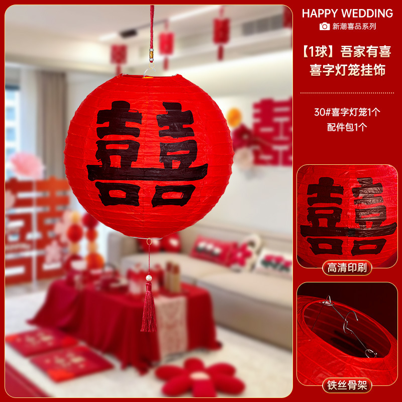 结婚喜字灯笼串新娘新中式装饰拍照卧室客厅背景布置婚房装饰套装