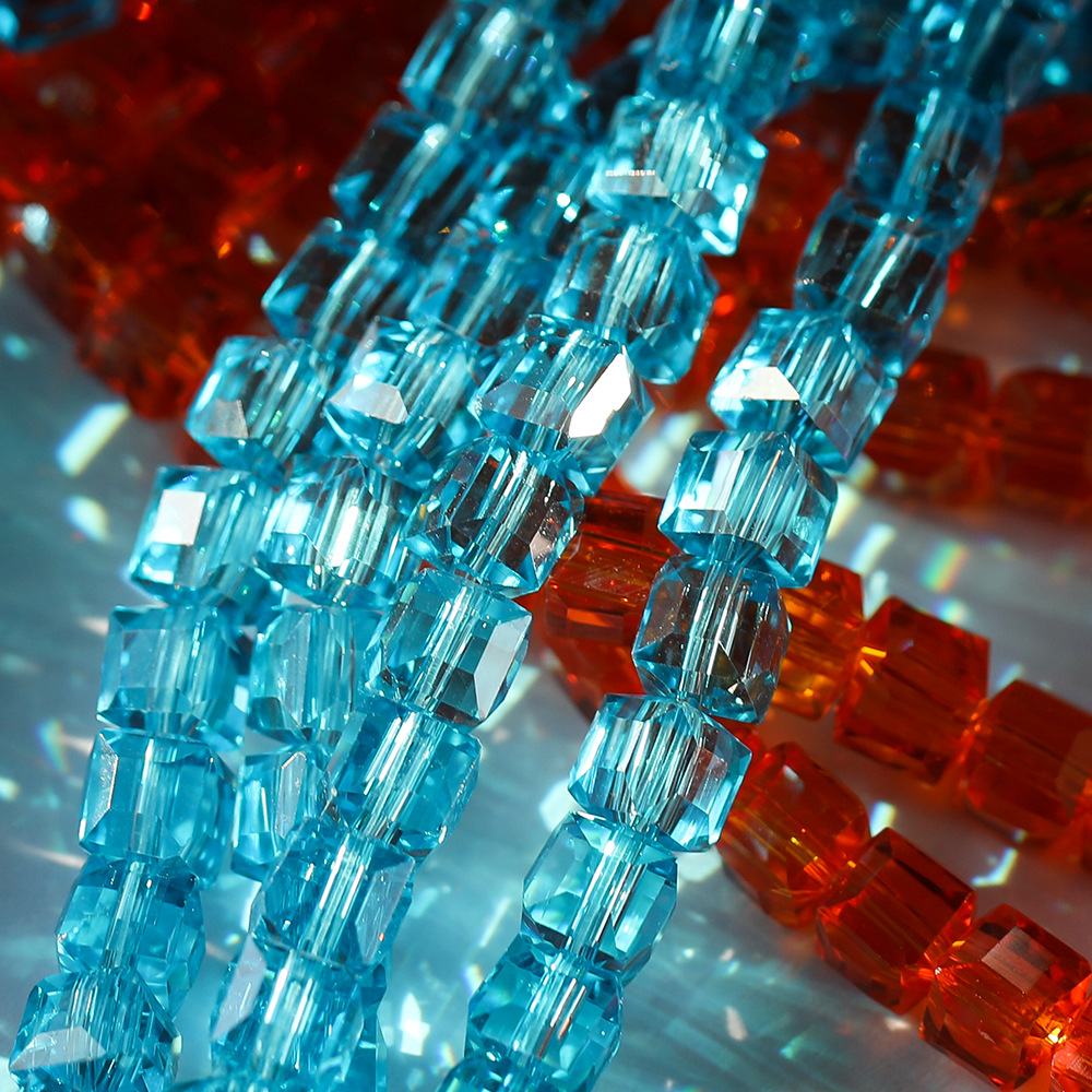 8mm多切面高透水晶方块珠幻彩琉璃珠方糖散珠diy手工串珠饰品配件
