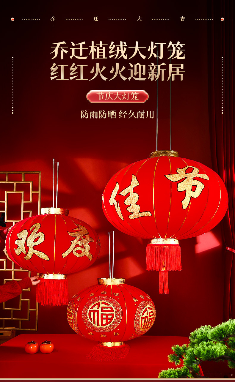 新年元旦大红灯笼2025新款过年春节户外阳台装饰品一对大门口挂饰