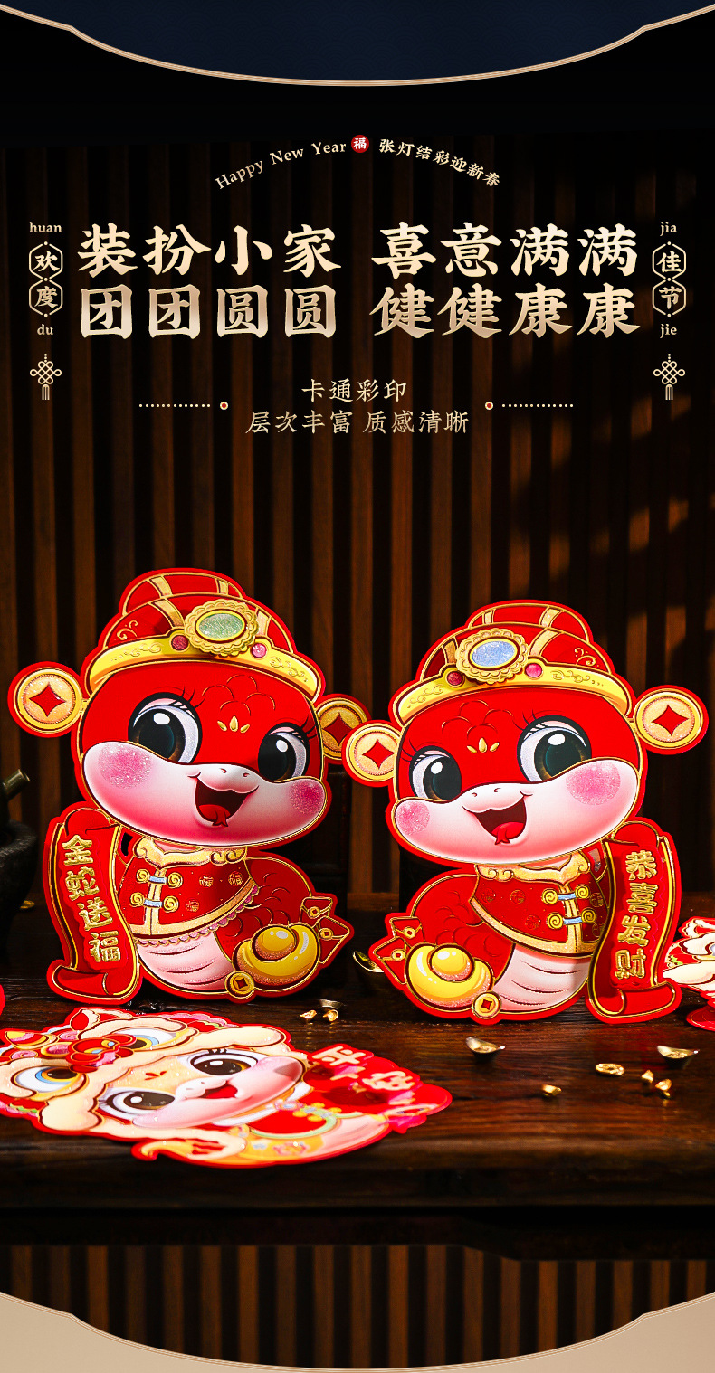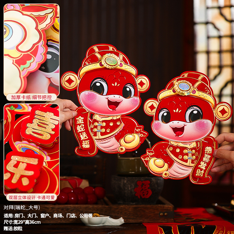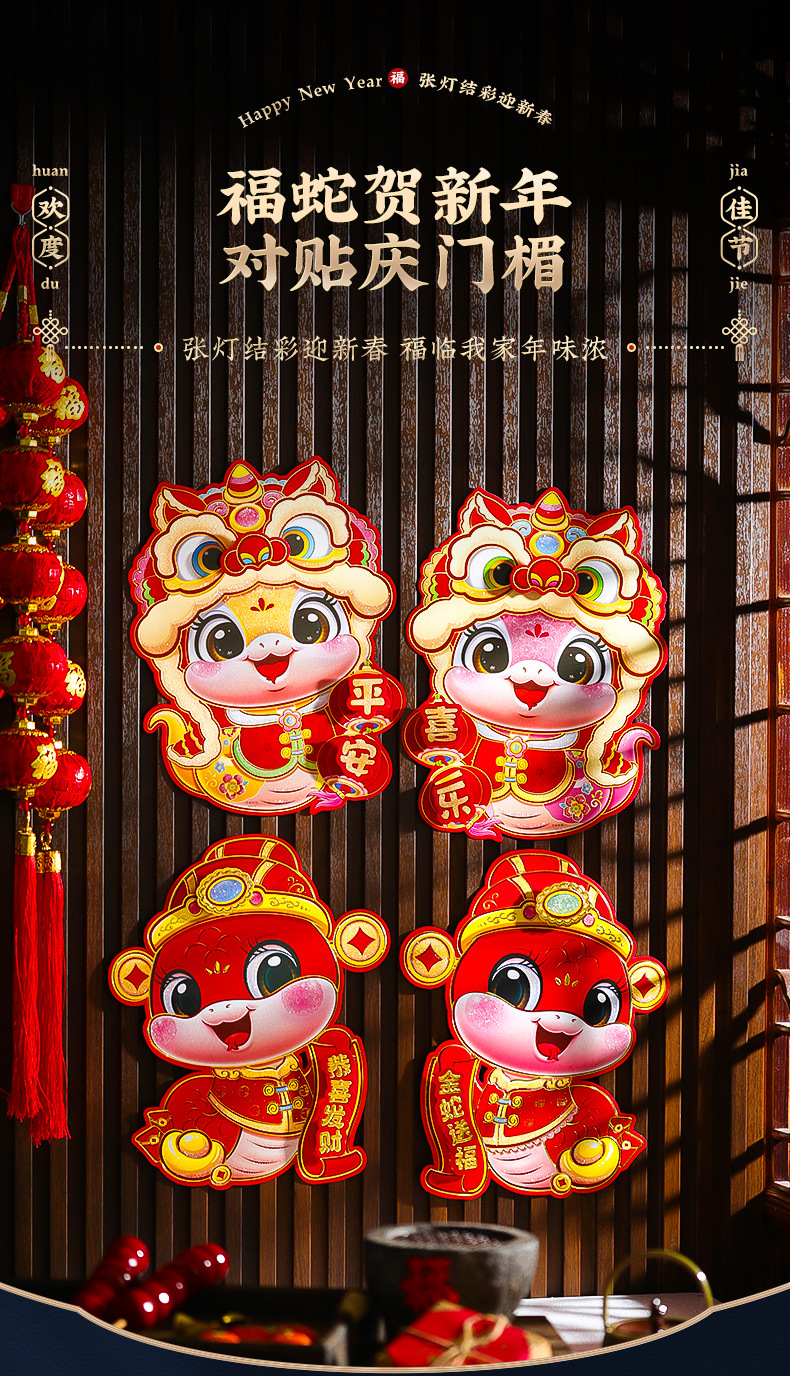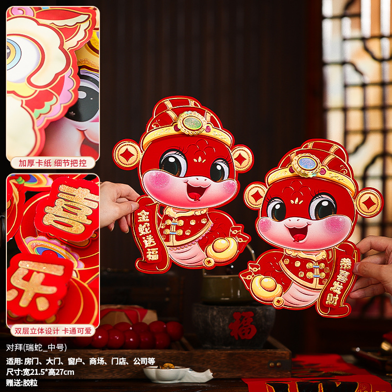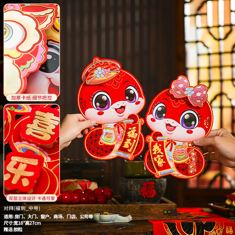 2025新款蛇年门贴对贴卡通生肖新年装饰福字过年春节年画贴纸批发