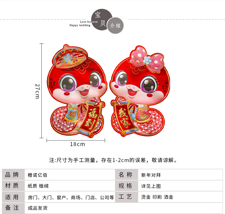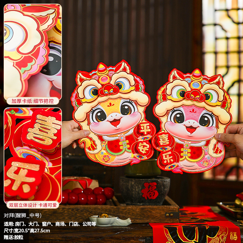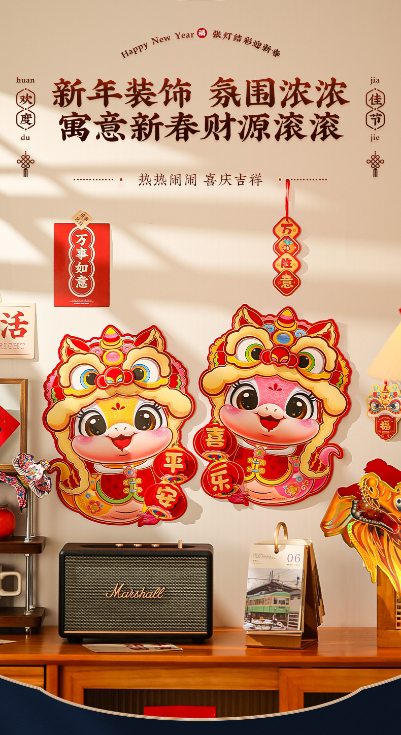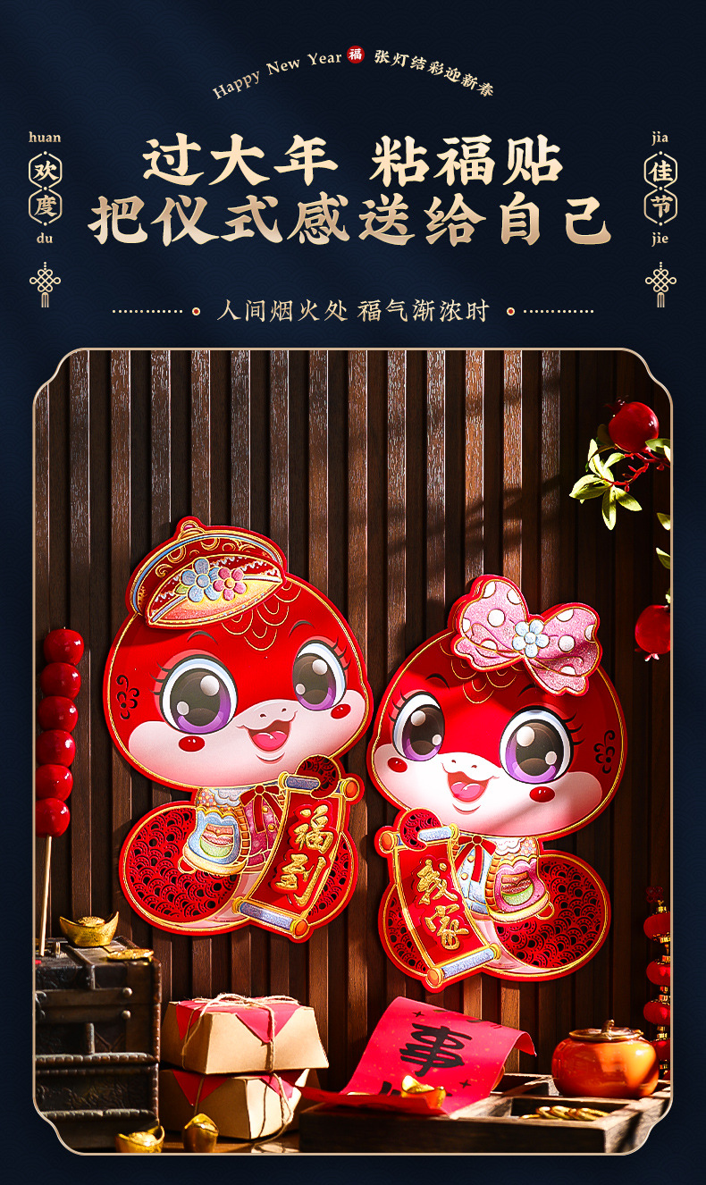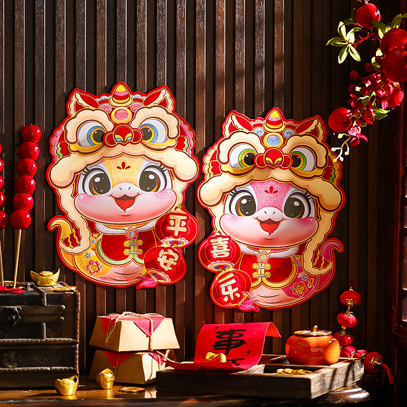 2025新款蛇年门贴对贴卡通生肖新年装饰福字过年春节年画贴纸批发
